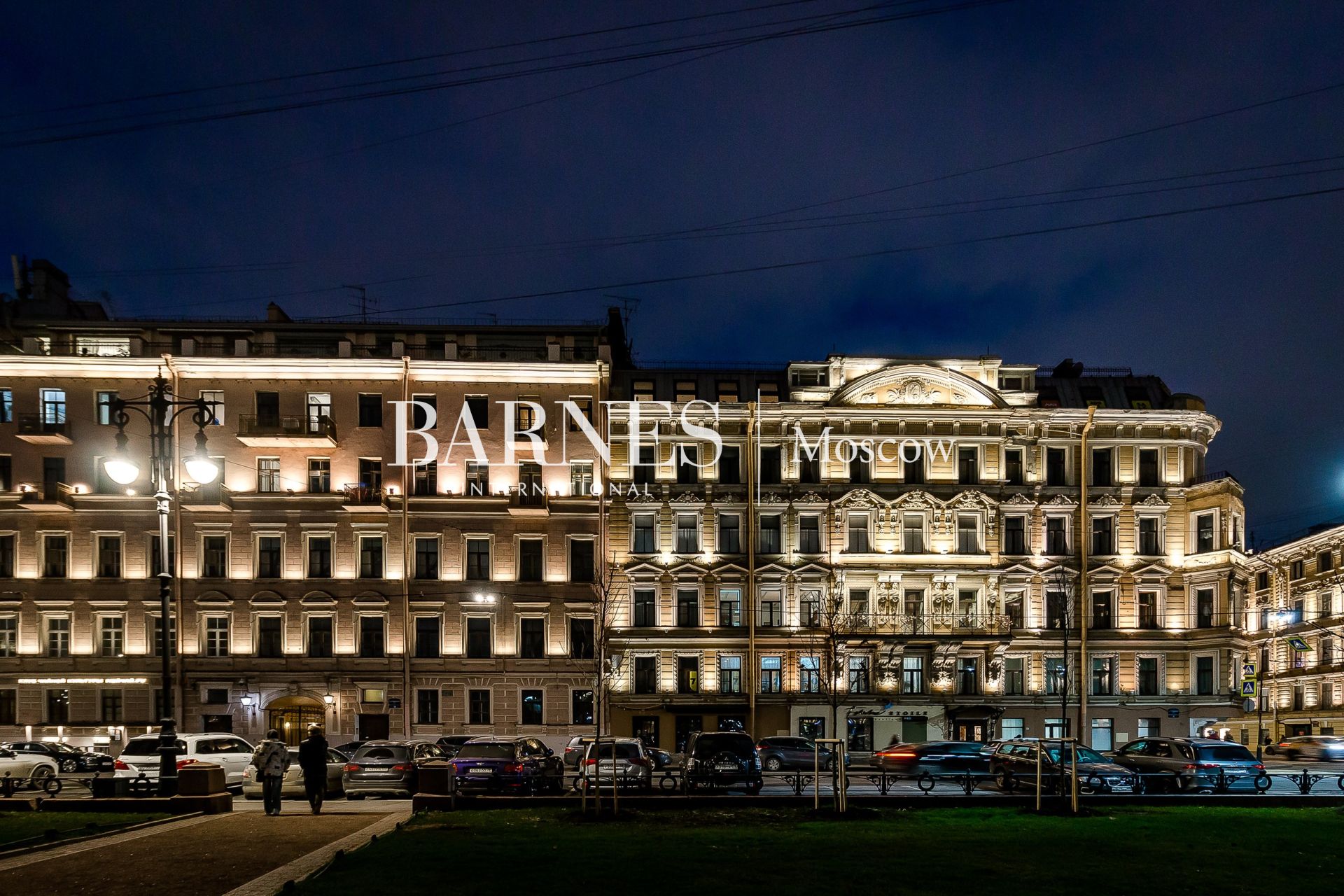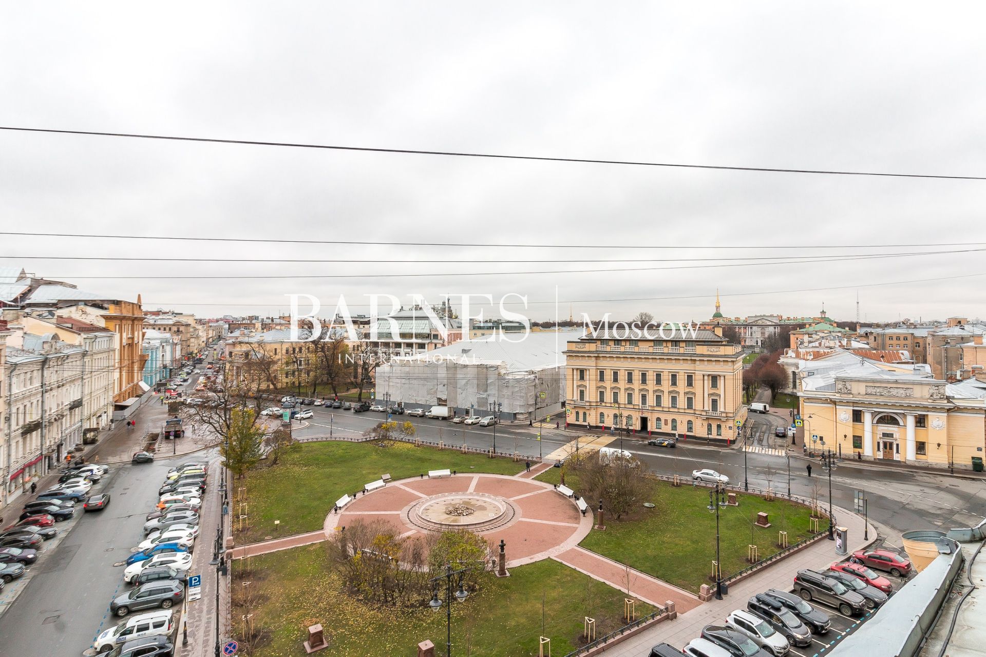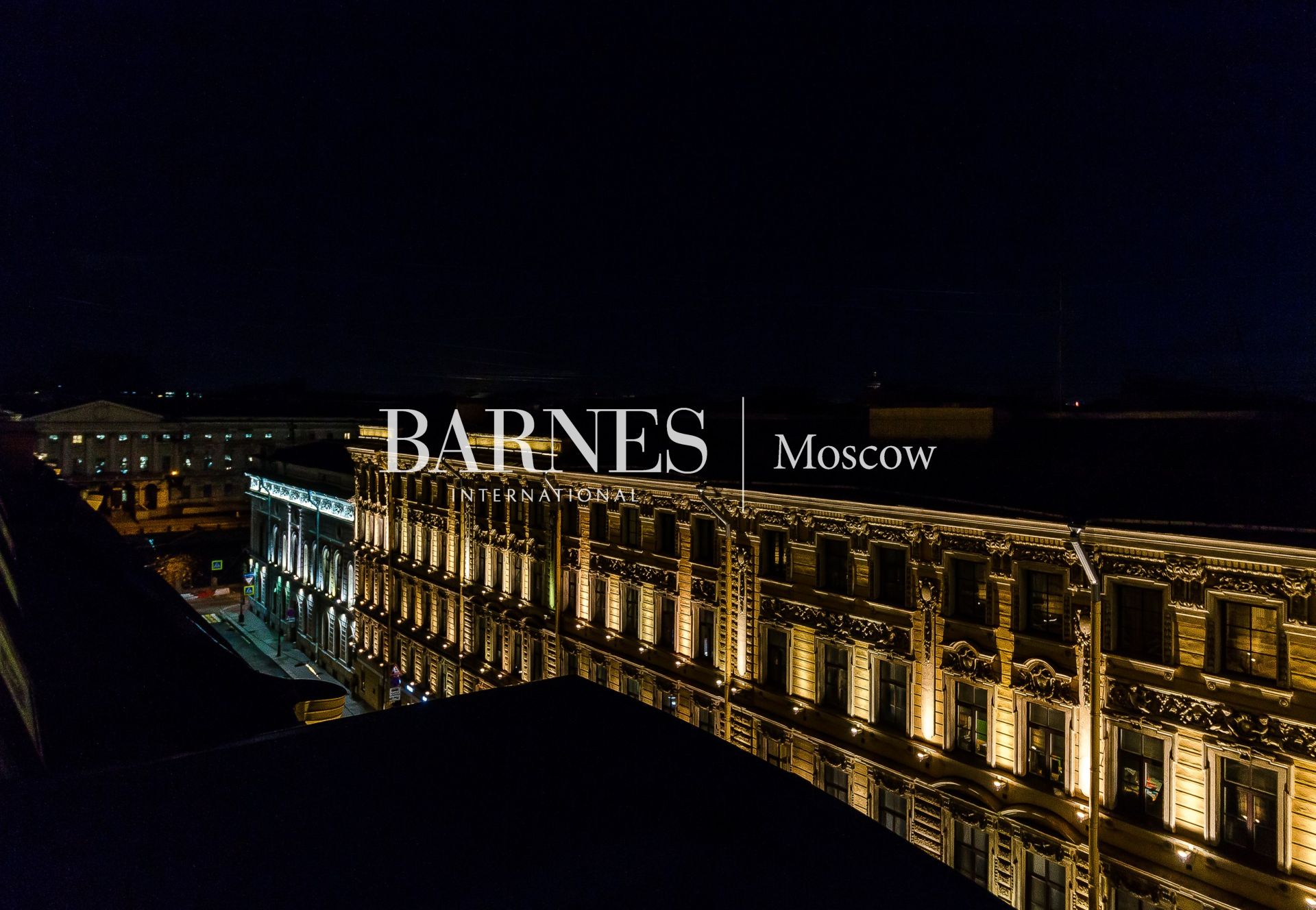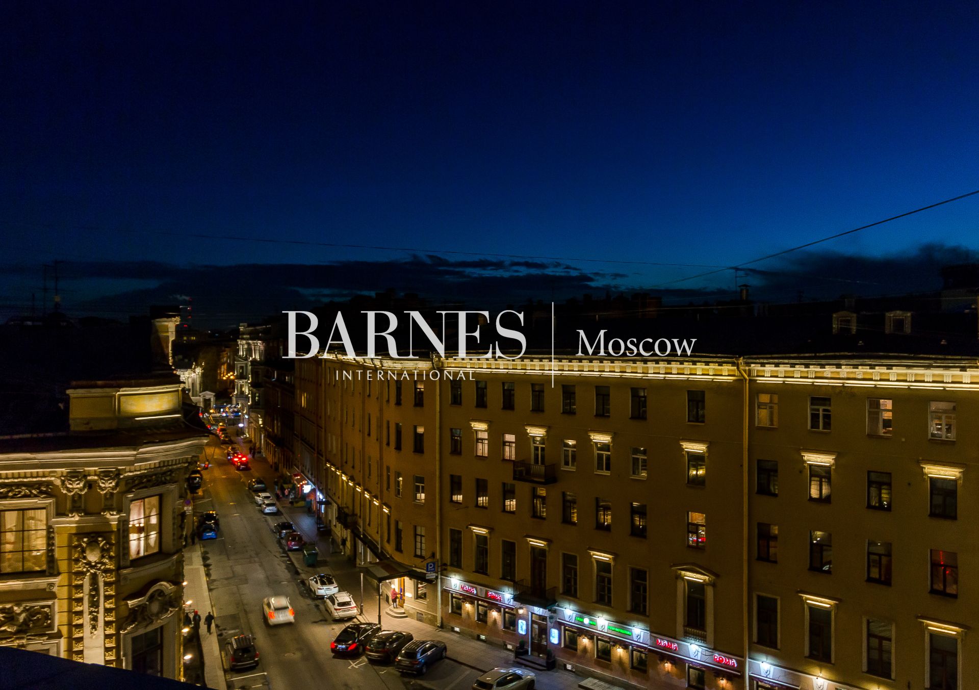 Именно так ощущается эта двухуровневая квартира под самой крышей исторического дома на углу Итальянской и Караванной и безусловно с неповторимым видом с лоджии на Манежную площадь.Тут нет суеты.Тут город звучит тише, а горизонт — ближе.