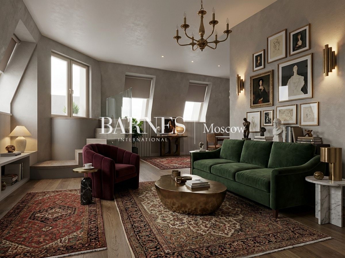 ID 586215 Она не пытается понравиться. Не делает реверансов. Не просит внимания. Эта квартира просто существует - уверенно, спокойно, уникально. Именно так ощущается эта двухуровневая квартира под самой крышей исторического дома на углу Итальянской и Караванной и безусловно с неповторимым видом с лоджии на Манежную площадь.Тут нет суеты.Тут город звучит тише, а горизонт — ближе. Мансардный этаж — отдельная вселенная.Свет падает сверху — мягко, будто в мастерской художника.Два окна режут небо на аккуратные полосы,и в них почему-то всегда чище дышится. Сейчас квартира — в состоянии подготовка под отделку. Это не минус — это старт. Редкая возможность создать свой собственный почерк в историческом доме, не споря с чужими решениями. Уже подготовленная дизайн-визуализация подсвечивает потенциал.