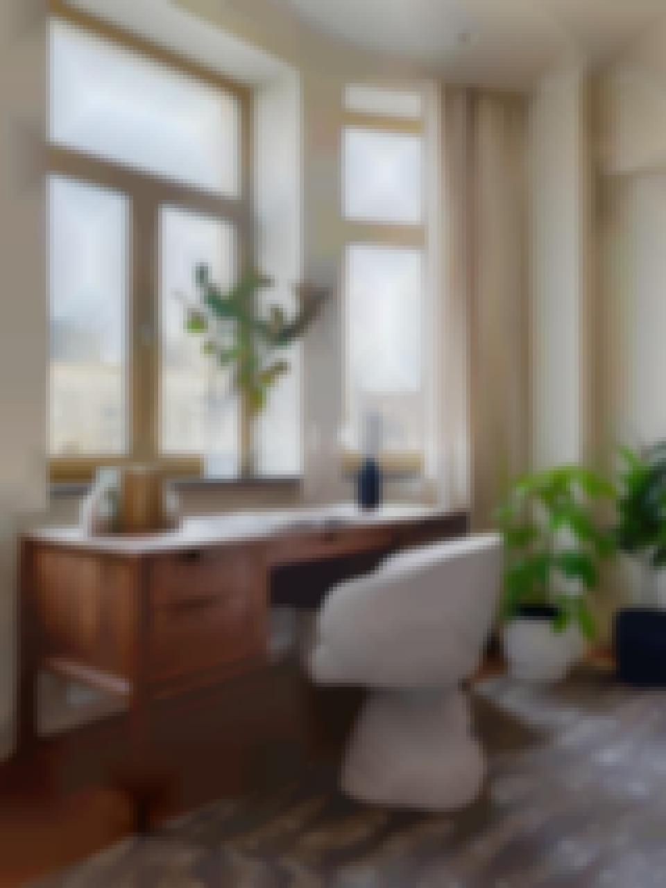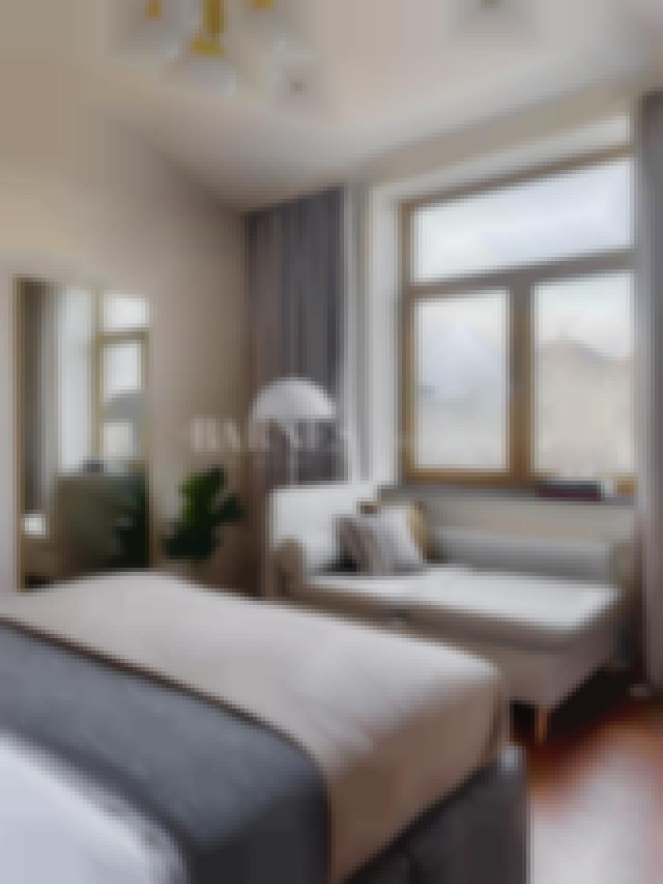 В квартире выполнена авторская отделка в современном стиле. Планировочным решением предусмотрены: просторная гостиная с эркером, кухня, спальня с большой гардеробной зоной, санузел, прихожая с гардеробом.