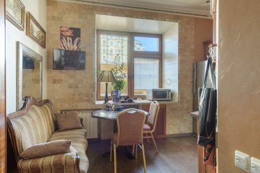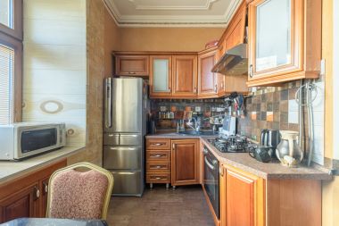 Кухня оборудована всей необходимой бытовой техникой и мебелью. Установлены система кондиционирования и подогрева полов. Окна выходят во двор. высокие потолки 3.2 м.