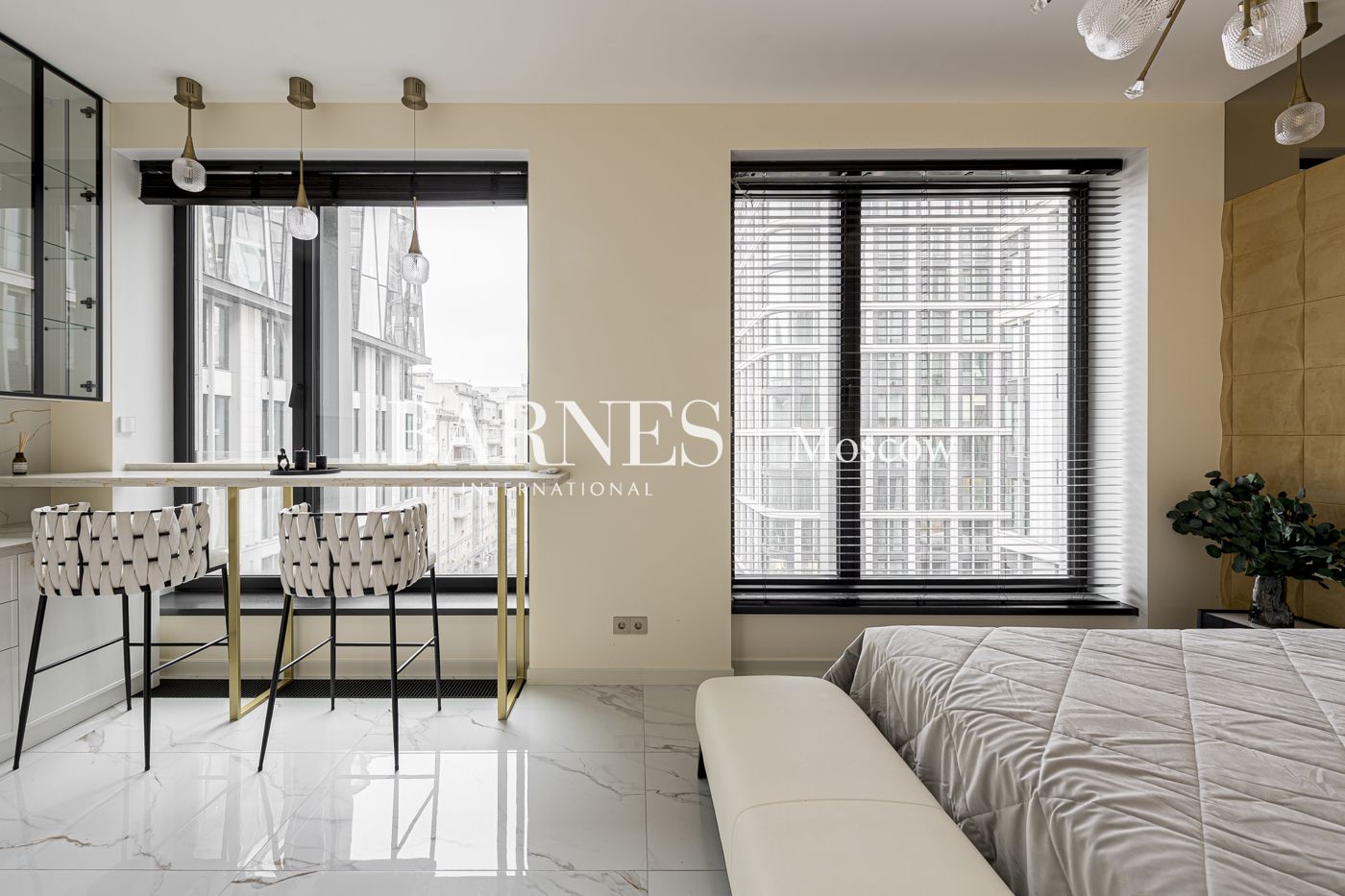 ID: 586826Стильный 1-комнатный апартамент площадью 34 кв.м в новом жилом комплексе премиум-класса SLAVA. Апартамент с авторской отделкой безупречного качества, полностью меблирован и укомплектован всей необходимой техникой для комфортного проживания. Зона спальни оборудована удобной и вместительной системой хранения.Панорамные окна наполняют апартамент естественным светом, а высокие потолки создают ощущение простора. Комплекс идеально подойдет для активных людей, которым важна развитая инфраструктура, шикарный двор, где можно проводить время с друзьями на верандах, и кто ценит эстетику общественных зон, лобби и лифтовых групп. В лобби предусмотрены 2 переговорные комнаты, которые доступны по бронированию, а также колясочные и лапомойки. Здесь все под рукой - химчистки, рестораны, кофейни, модные магазины, ателье. В 10 минутах от комплекса находятся популярный и модный фудмолл «Депо» и бизнес-центр категории «А» White Gardens. Отличная транспортная доступность: 5 минут до ТТК; 30 минут на аэроэкспрессе до аэропорта Шереметьево; 5 минут до Белорусского вокзала и станции метро Белорусская.Участник ассоциации AREA.