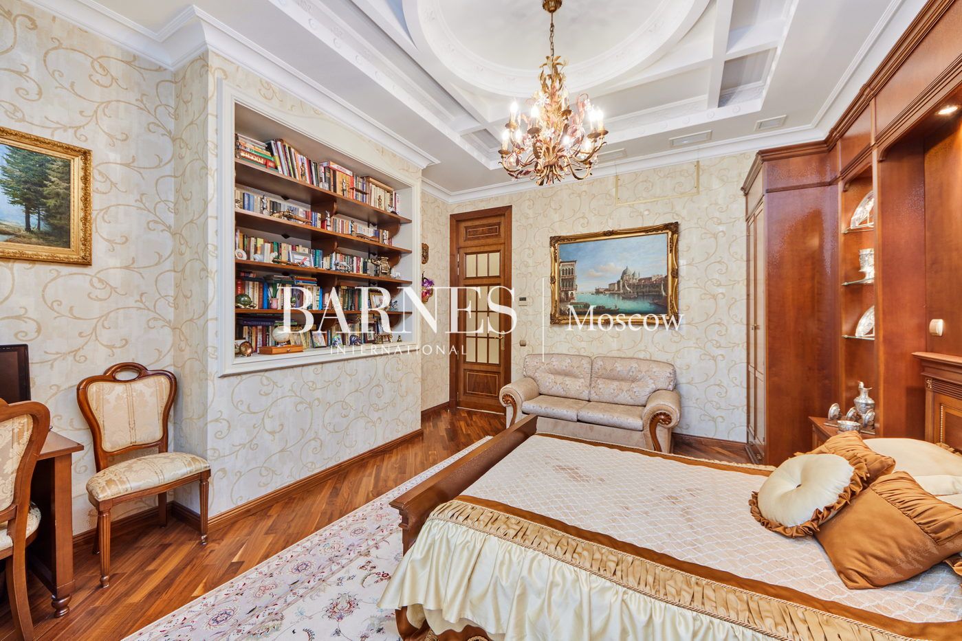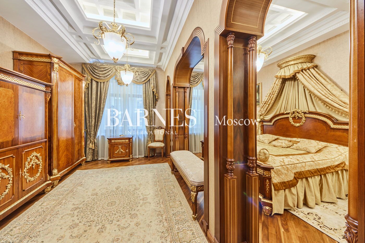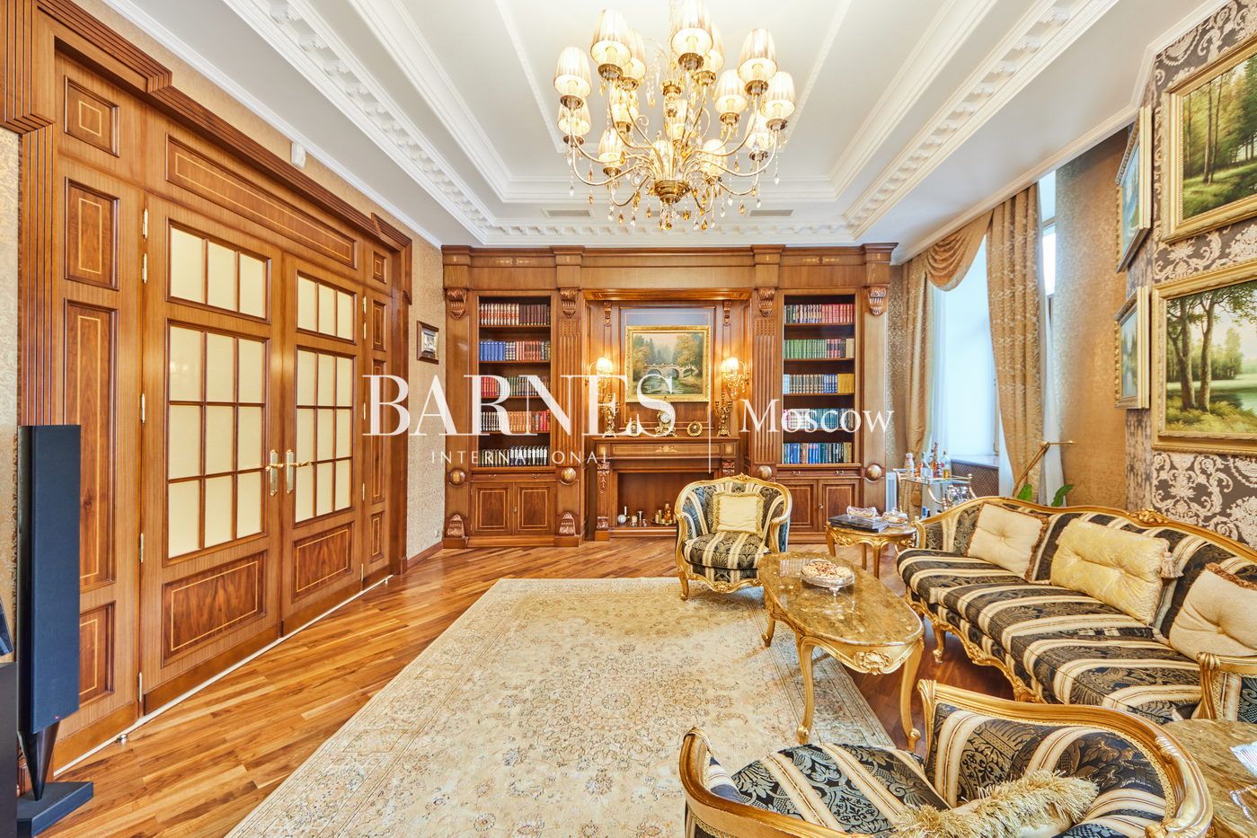 Уникальное предложение в историческом особняке в 300 метрах от Кремля. Интерьер в стиле Людовика XIV с версальской лепниной, золочёным декором, витражами и мебелью — всё остаётся. Высокие потолки 4 м, парадный холл с галереей, вид на Кремль с балкона. Готовая статусная квартира в самом сердце Москвы с охраняемым двором и паркингом.