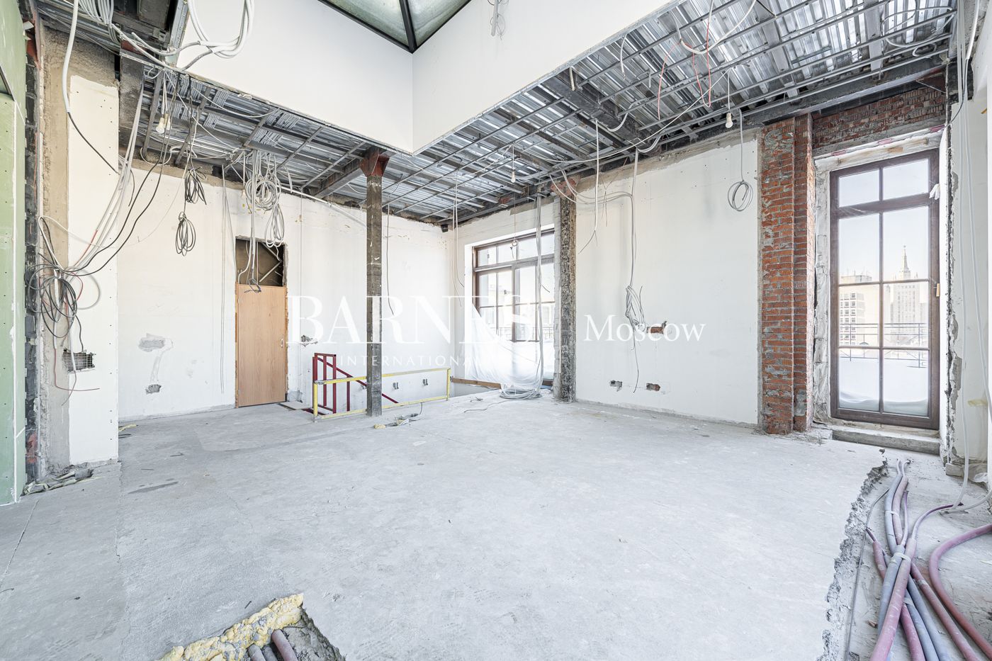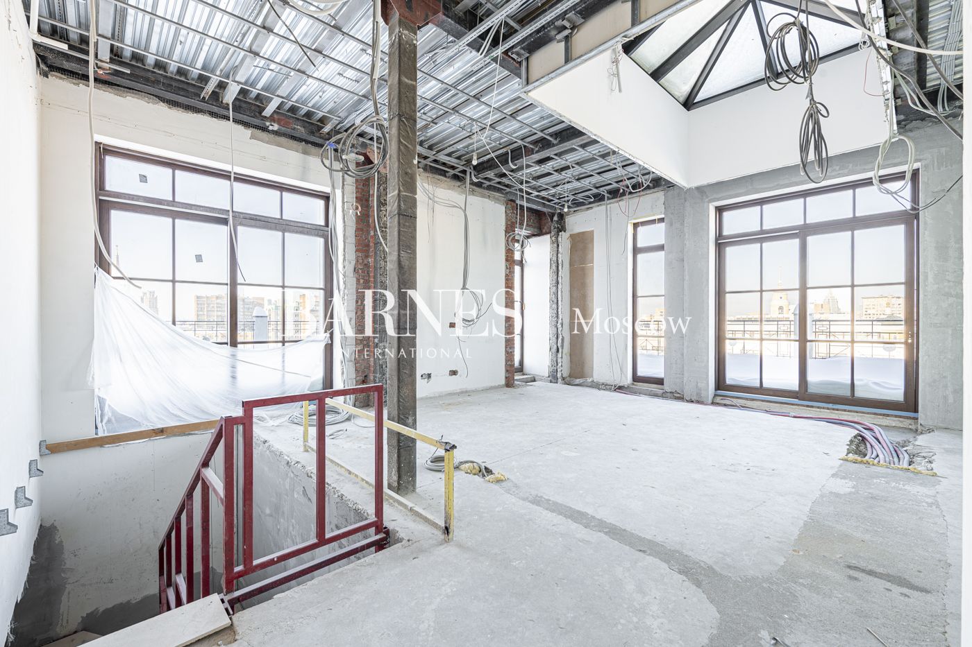 Панорамные окна с великолепными видами на центр Москвы. Высота потолков: 3.78 м на первом уровне, 3.97м на втором уровне.