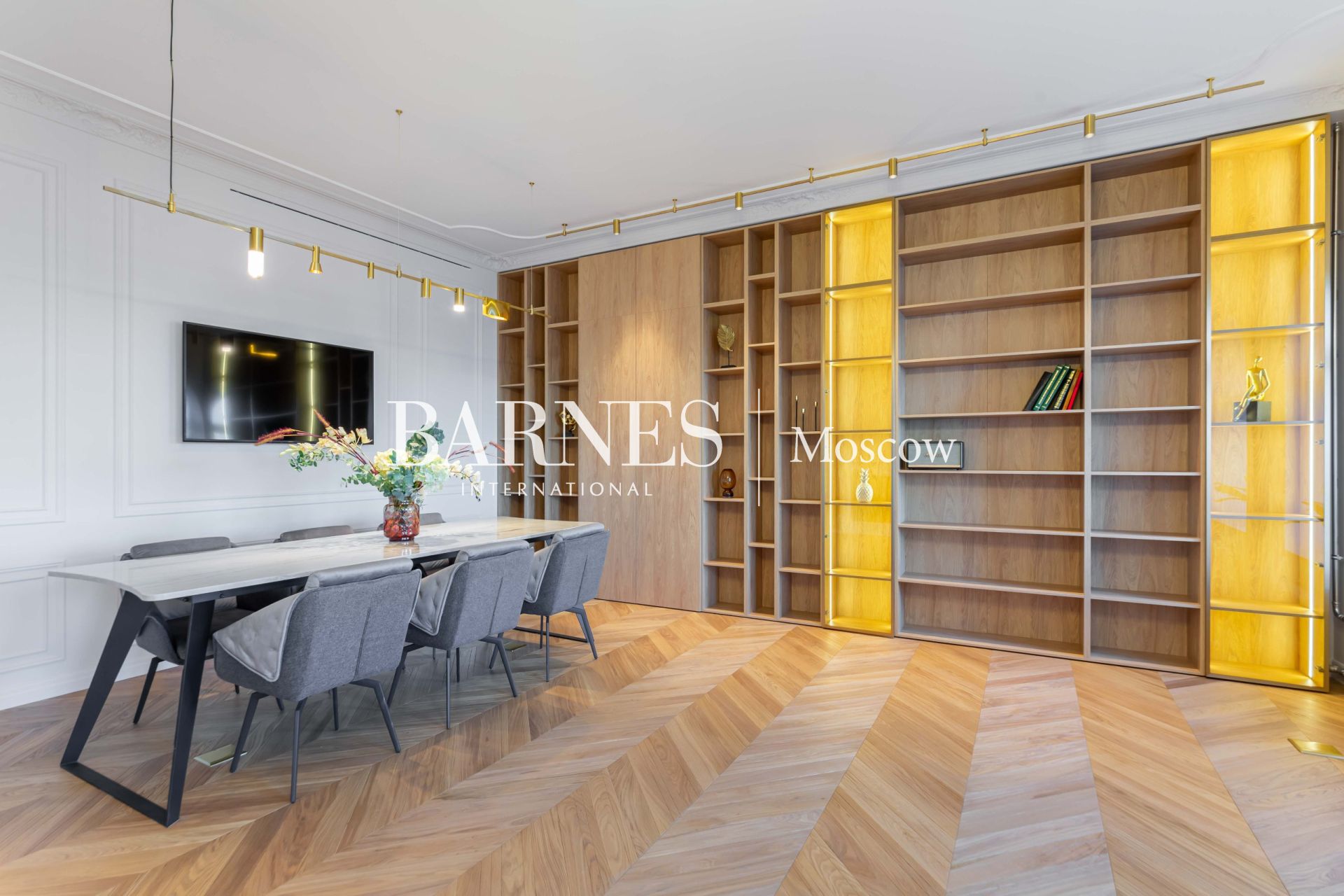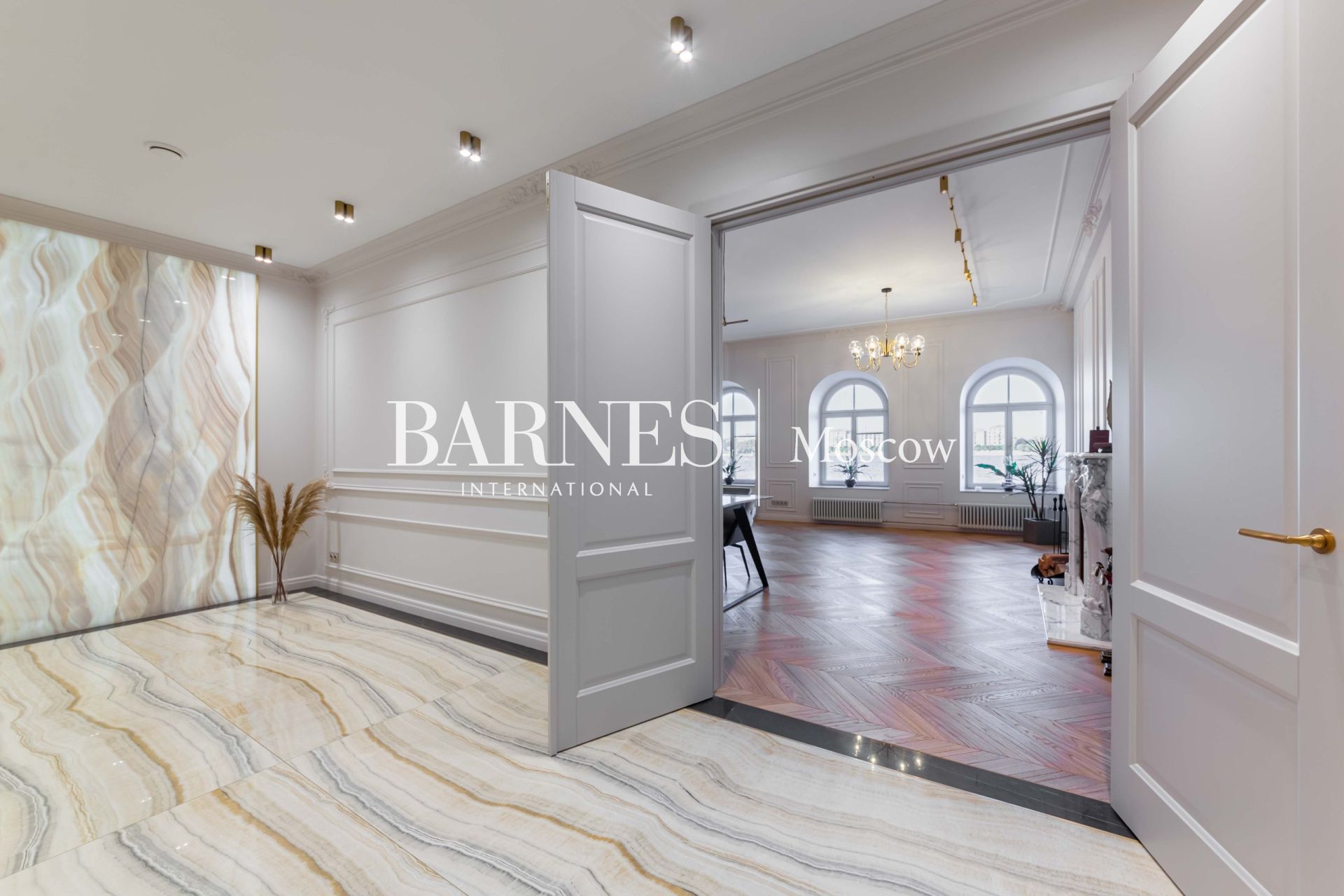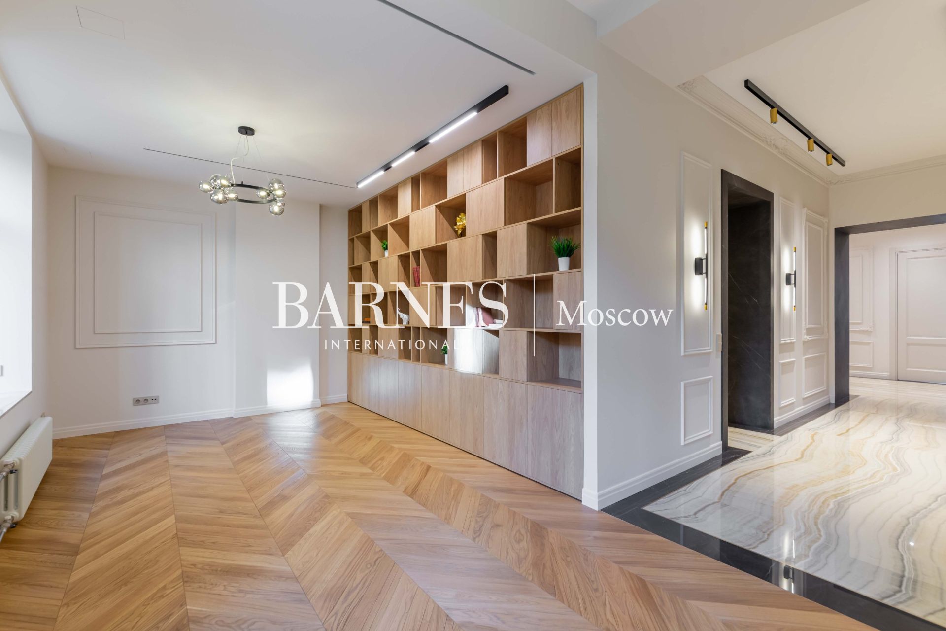 ◦ Паркет: Французская ёлка и медовый светлый дуб (Германия) создают тёплую атмосферу.