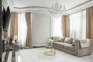 Планировочным решением предусмотрены: просторная гостиная с зоной кухни-столовой, 3 спальни, одна из которых с лоджией, кабинет, ванная комната с окном, гостевой санузел, прихожая. Пространство оформлено в стиле «парижской» классики с историей, наполнено антиквариатом, искусством и современными предметами.