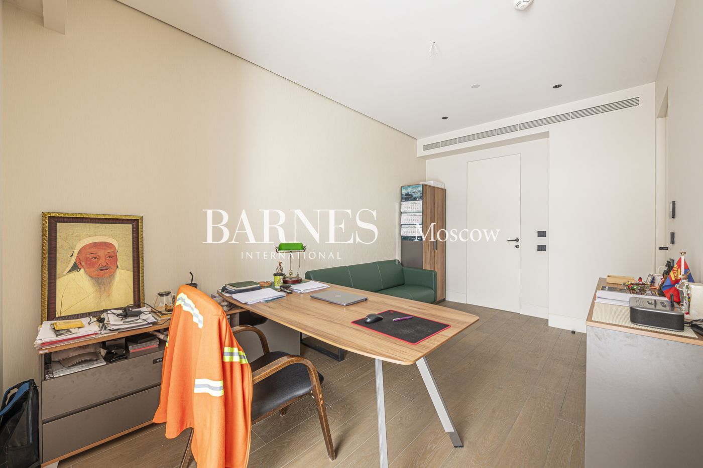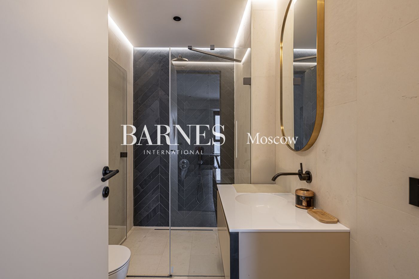 Апартамент с отделкой в стиле «Модерн» с использованием натуральных материалов в приятных пастельных тонах. В отделке ванных комнат использован мрамор. На полу - инженерная двухслойная дубовая доска. Сантехника итальянских марок Salini, Tece, Catalano.