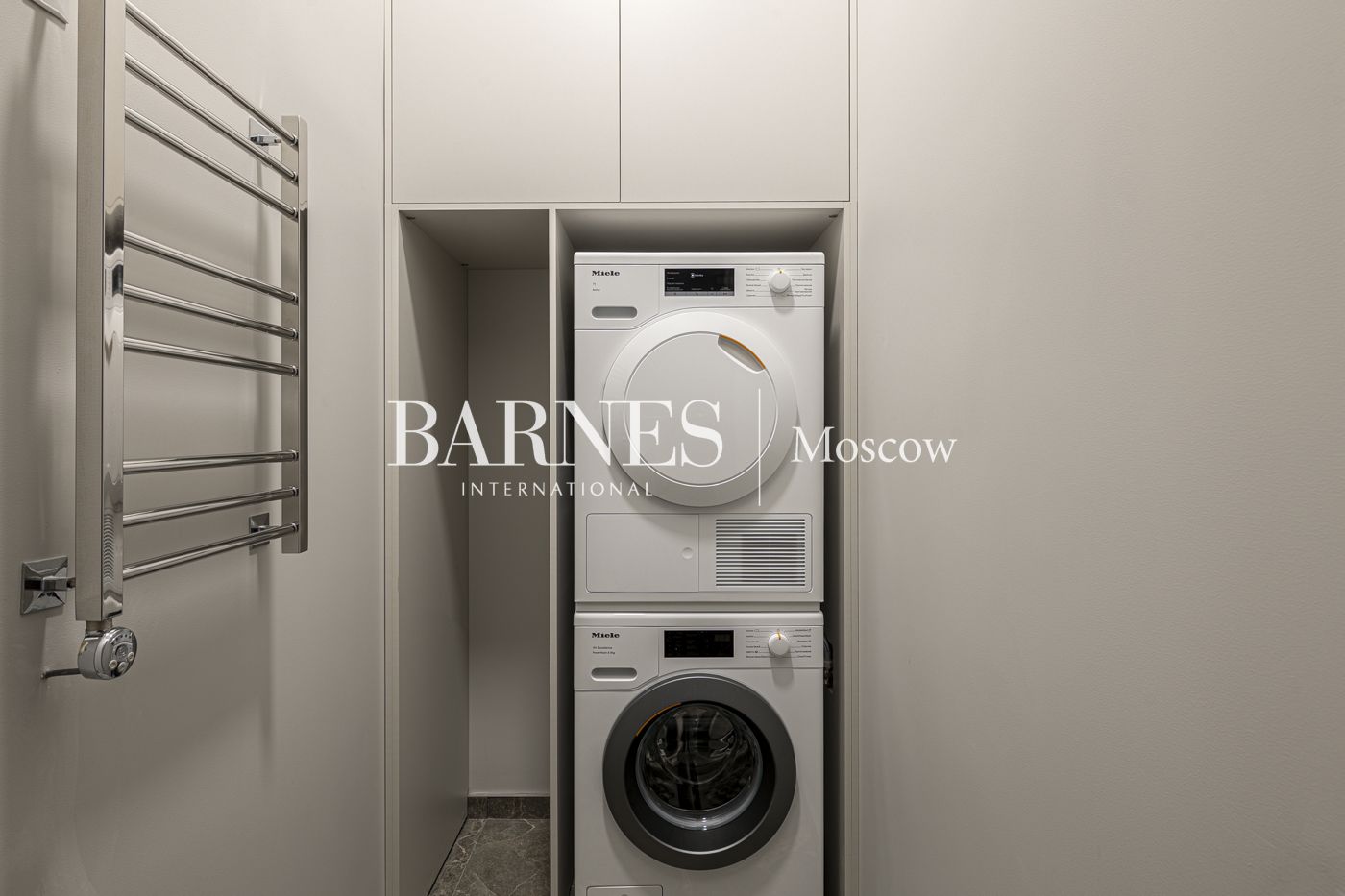 Планировочное решение: • просторная гостиная с зоной кухни, оснащенной техникой Miele • 2 спальни, включая мастер-спальню с собственным санузлом и просторной гардеробной • 2 санузла для максимального комфорта • постирочная для удобства