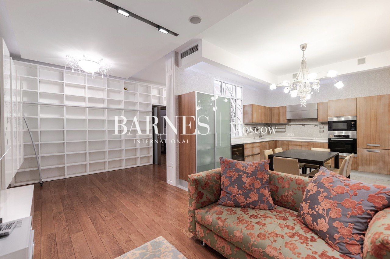 ID: 587982Уютная 3-комнатная квартира в клубном ЖК «Дом на Смоленской набережной». Квартира площадью 125 кв.м включает:- гостиную и кухню- две спальни или кабинет- две гардеробные- два санузла- хозяйственную комнату Квартира оборудована мебелью и техникой Miele, украшена витражами ручной работы. Высота потолков 3,2 метра.В наличии машино-место в подземном паркинге и кладовая на этаже. В комплексе всего 94 квартиры и многоуровневый подземный паркинг. В лобби дома отделка ониксом и натуральным камнем, зона для встреч и ожидания. Лифты увеличенных размеров, круглосуточная охрана, консьерж и УК всегда к услугам жителей.Участник ассоциации AREA.