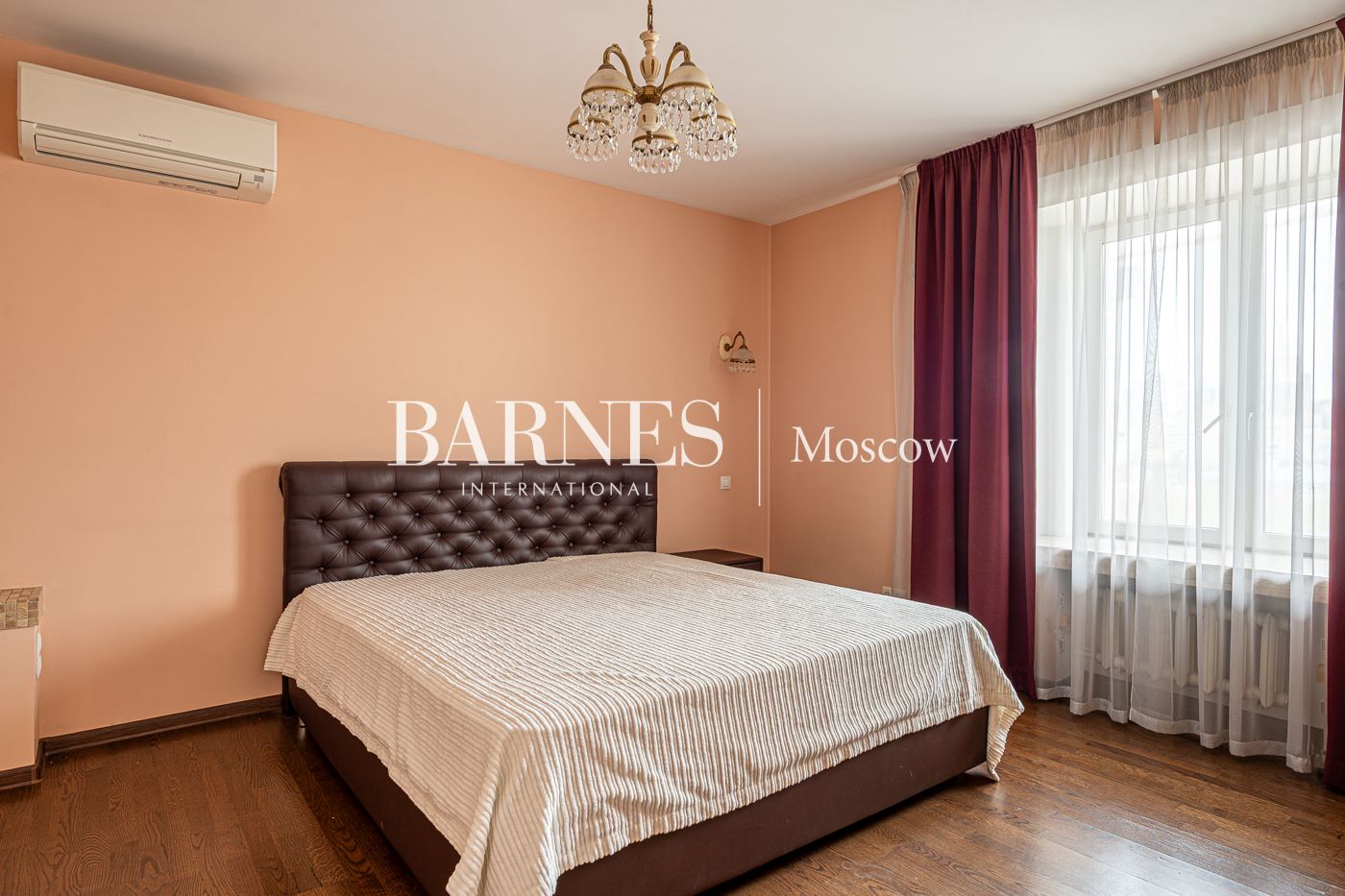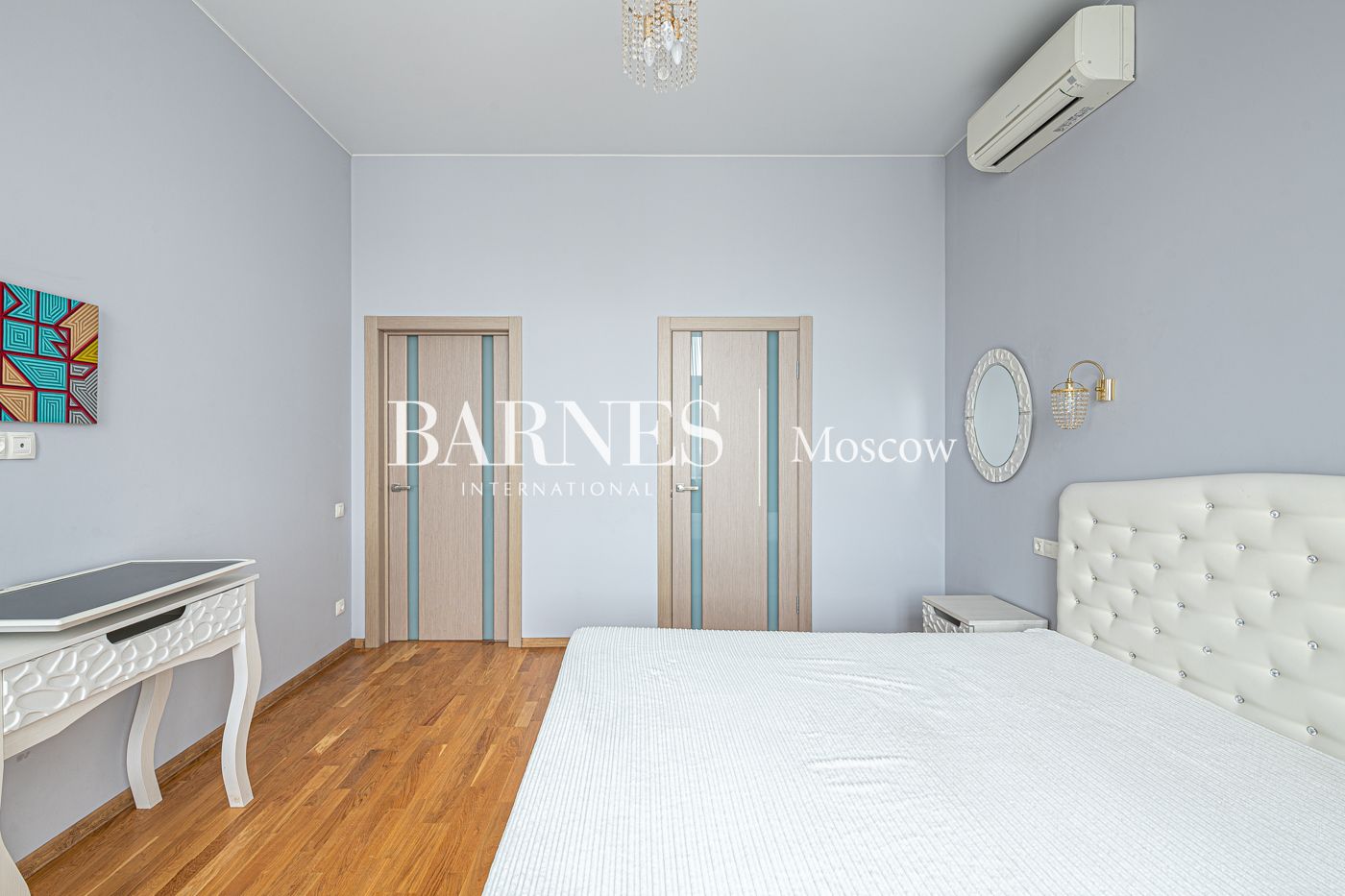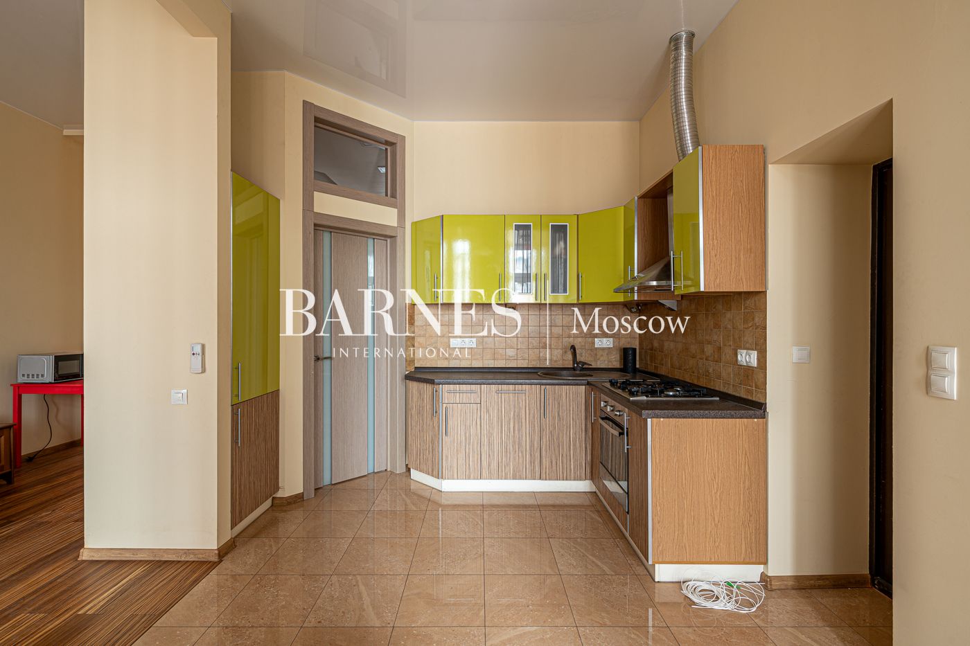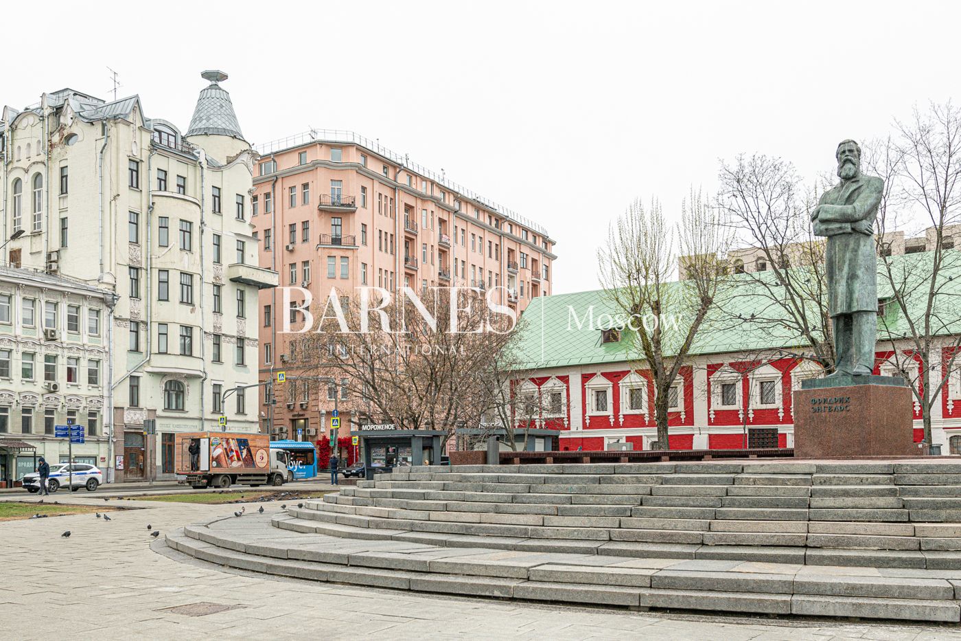 Квартира имеет два уровня и мансарду, а также второй свет высотой более 8 метров, лоджию и французские балконы, с которых открываются виды на историческую часть Москвы.