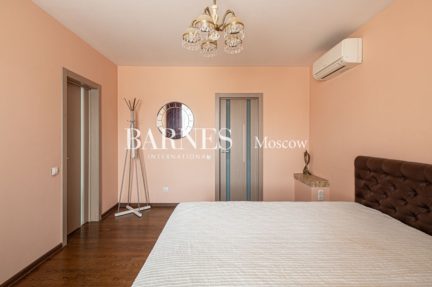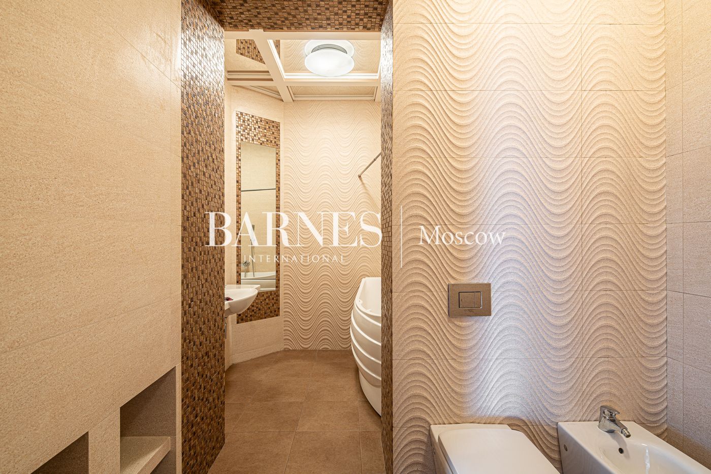 Квартира функционально делится на две с независимыми друг от друга входами: две гостиные, две кухни, три спальни с гардеробными и санузлами, хозяйственная, гостевые санузлы.