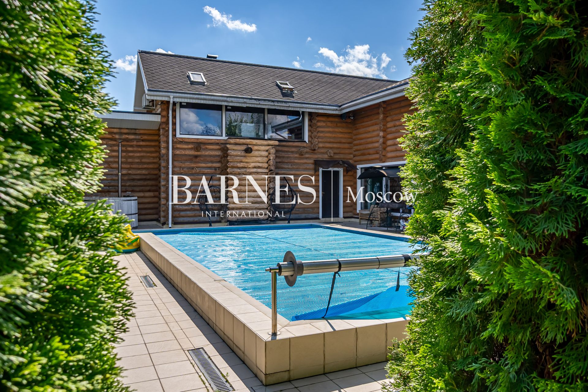 Также на территории расположен банный комплекс с русской кедровой баней, комнатой отдыха на 50 человек, массажным кабинетом, бильярдной, теннисным столом, тренажерным залом и спальнями. Гараж на 2 автомобиля с блоком для обслуживающего персонала также является частью комплекса.