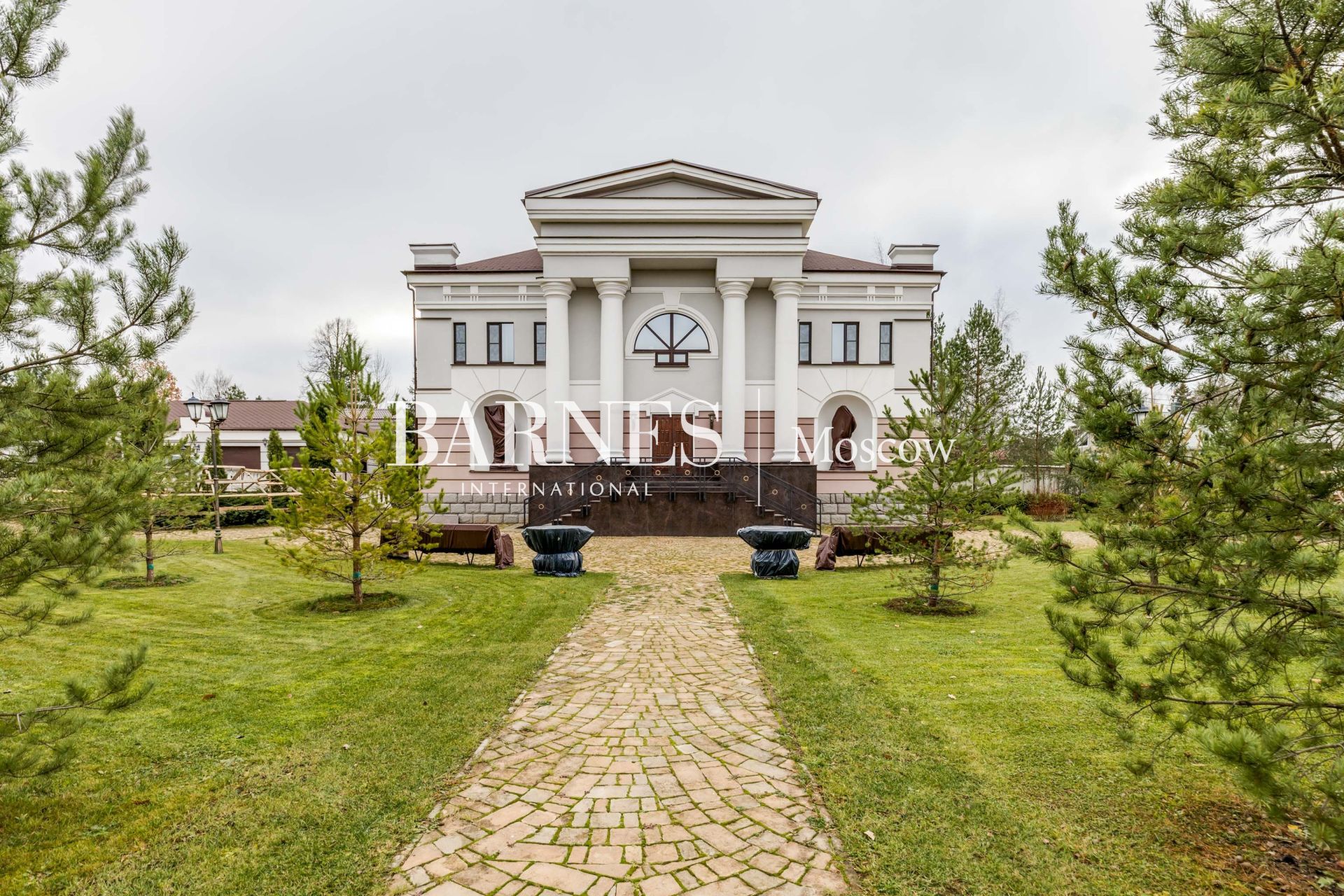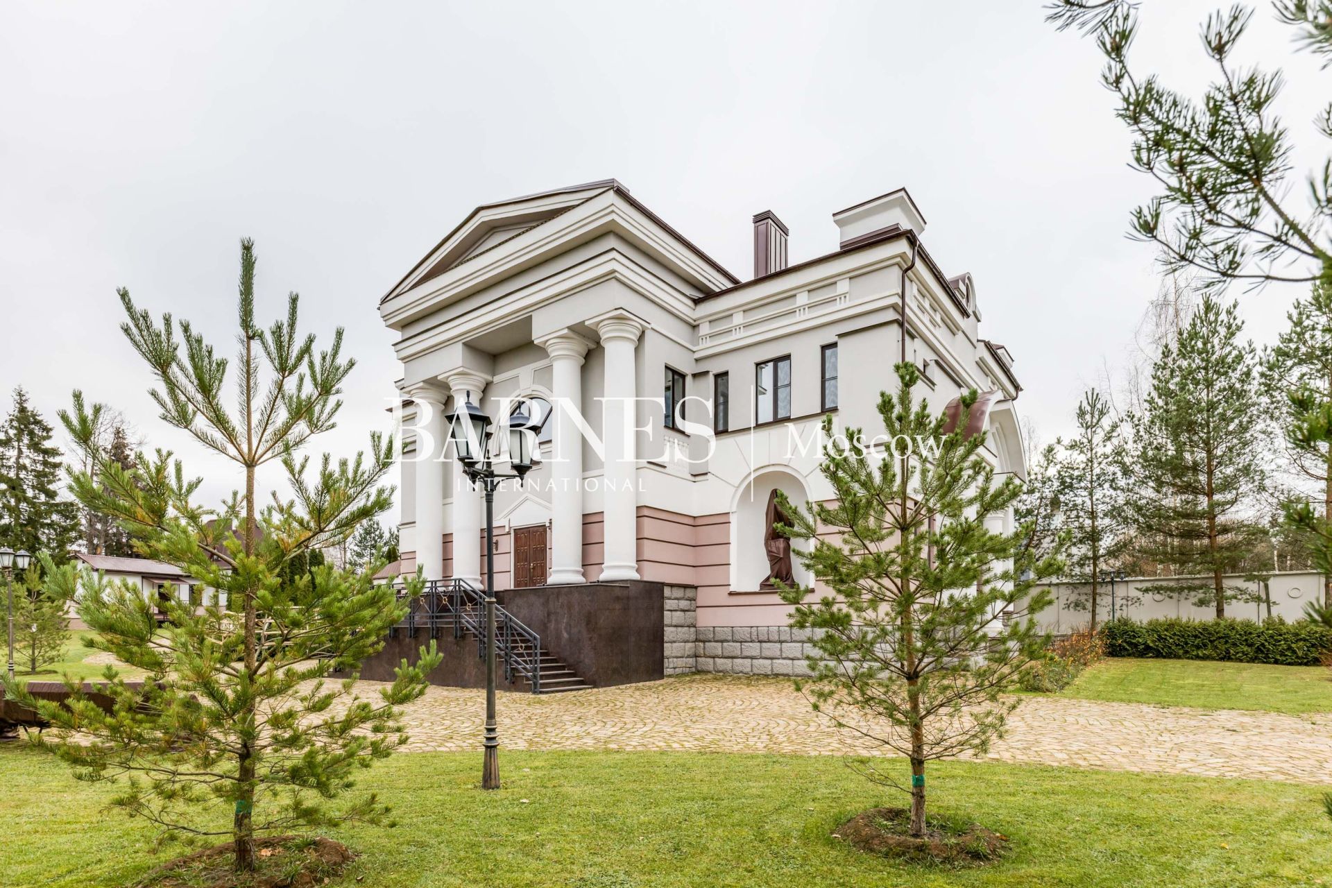 Участок земли площадью 60 соток оформлен в изысканном ландшафтном дизайне, с мягким газоном, прогулочными дорожками и взрослыми деревьями. Внутри дома есть всё, что нужно для комфортной жизни: спортзал, гардеробная, винный погреб, сауна, бассейн, комната отдыха, кладовые, комната для персонала, котельная, электрощитовая и многое другое.