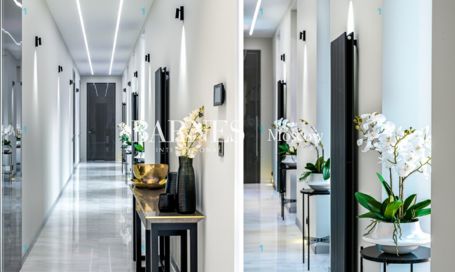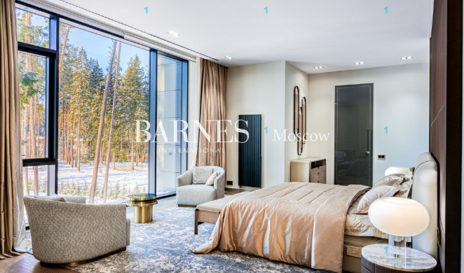 2-й этаж: просторная мастер-спальня с зонами гостиной и библиотеки, ванная комната с панорамными окнами и вместительная гардеробная, 2 спальни с гардеробными ванными комнатами и просторными террасами с потрясающим видом, сервисная комната с постирочной;