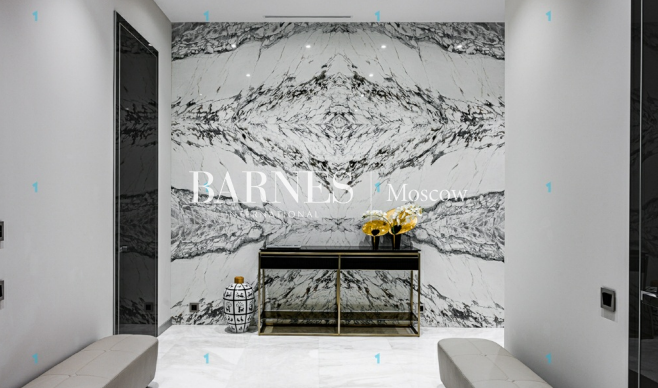 В отделке использованы самые лучшие материалы: натуральный мрамор, керамогранит GRANITI FIANDRE, дубовый паркет, оконные системы SCHUCCO, двери RIMADESIO. Фасад облицован клинкером от JANINHOFF.