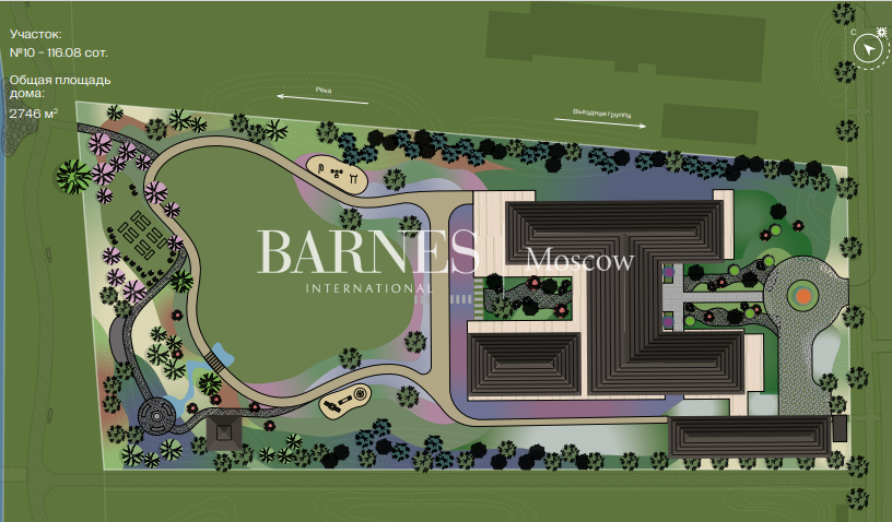 и многолетних растений. Мягкие и твердые покрытия. Устройство холмов и ограждения. Открытый паркинг на 3 м/м. Устройство дренажной системы и системы автополива. Дизайнерское освещение ландшафта.