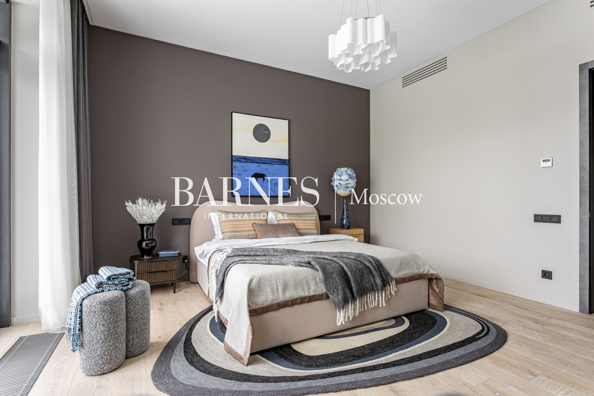КП Заря. Новый современный дом «под ключ», частично с мебелью. Панорамное остекление, натуральные отделочные материалы, высокое качество строительства. Фасад вентилируемый, отделка с применением современных экологичных материалов. Система приточной вентиляции, канальное кондиционирование. Участок благоустроен, высажены крупномеры, вымощены дорожки, проведено освещение.