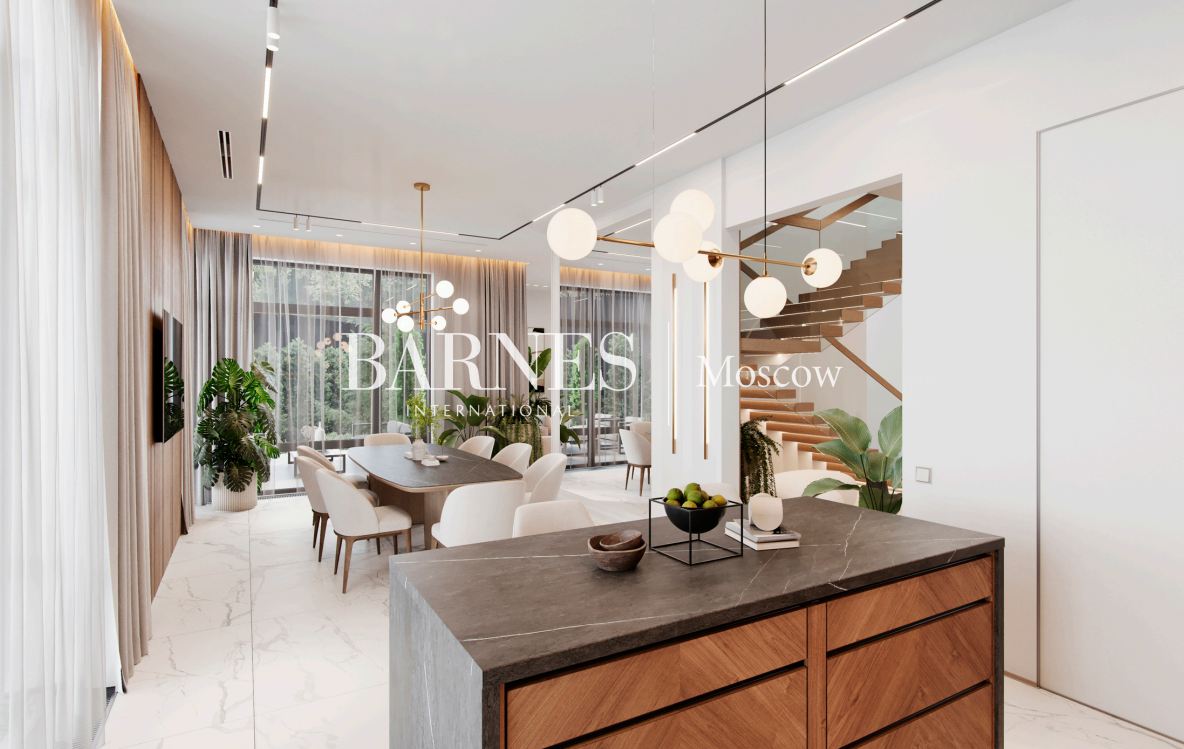 Конструктив дома: монолит/кирпич, фундамент - УШП, фасадная отделка - натуральный камень, мультифункциональное панорамное остекление без запотевания и обмерзания, второй свет 7 метров в зоне гостиной, высота потолков на 1 и 2 этажах - 3,6 м., фасадное освещение, отапливаемый гараж с остекленной въездной группой, подогреваемое напольное покрытие из керамогранита на уличных террасах, умная котельная с индивидуальной корректировкой температуры в каждом из помещений дома