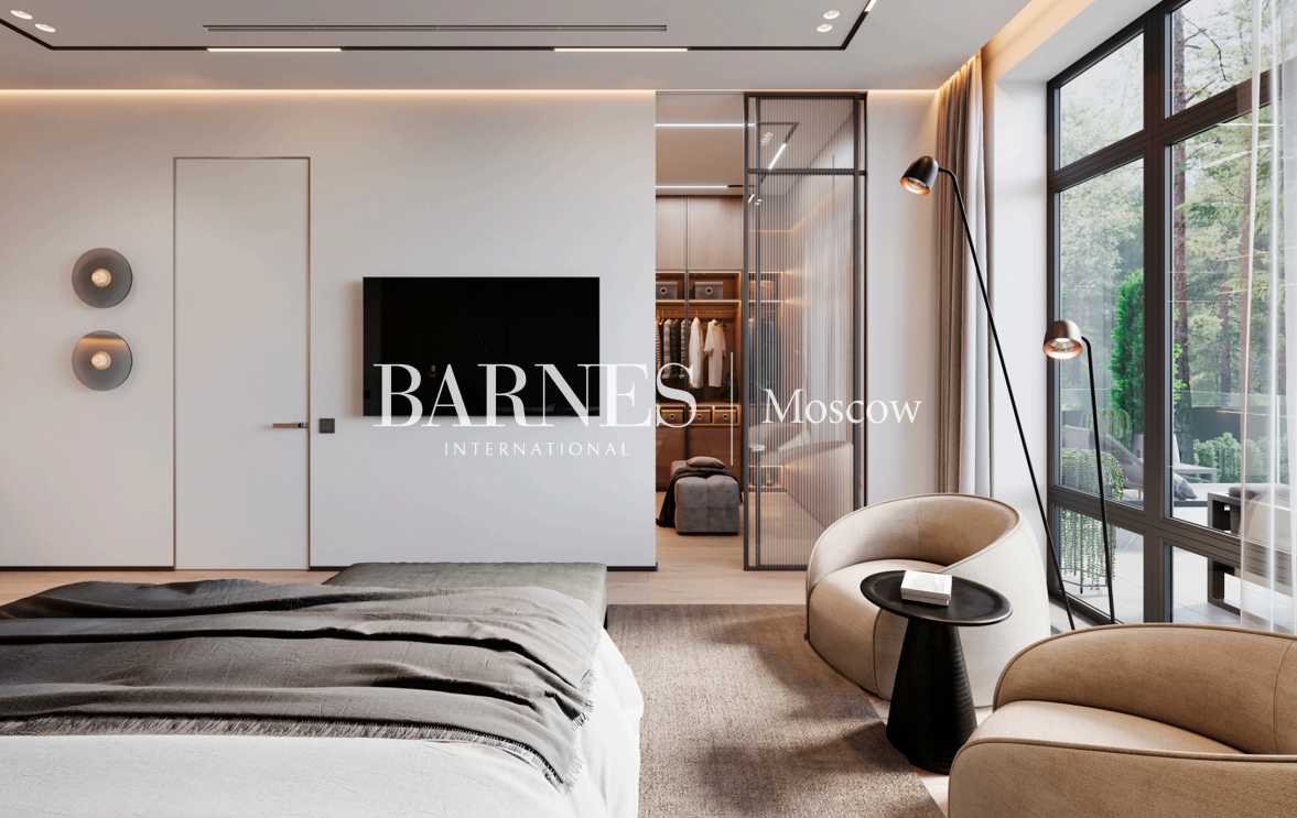 2 этаж: мастер-спальня с гардеробной, с/у и балконом, спальня с с/у, спальня с гардеробной и с/у, балкон.
