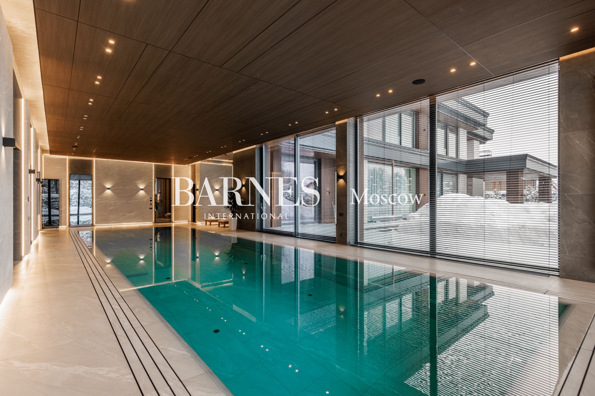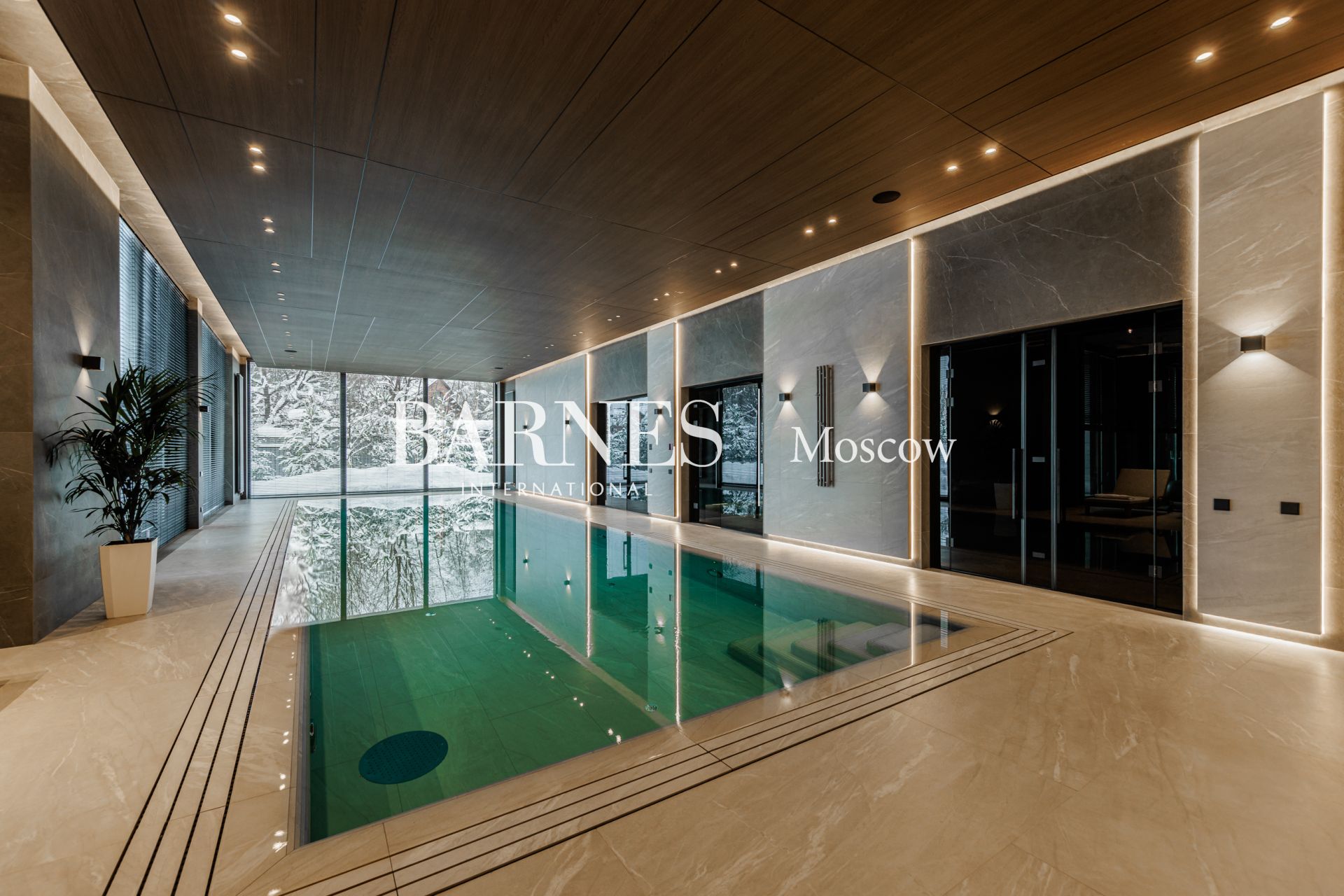 Предлагается новая загородная резиденция 1 731,4 кв.м. с бассейном и лифтом на участке 38,2 сотки в КП Барвиха-21. 9 км. от МКАД по Рублево-Успенскому или Можайскому шоссе. Есть выезд на платную скоростную дорогу.