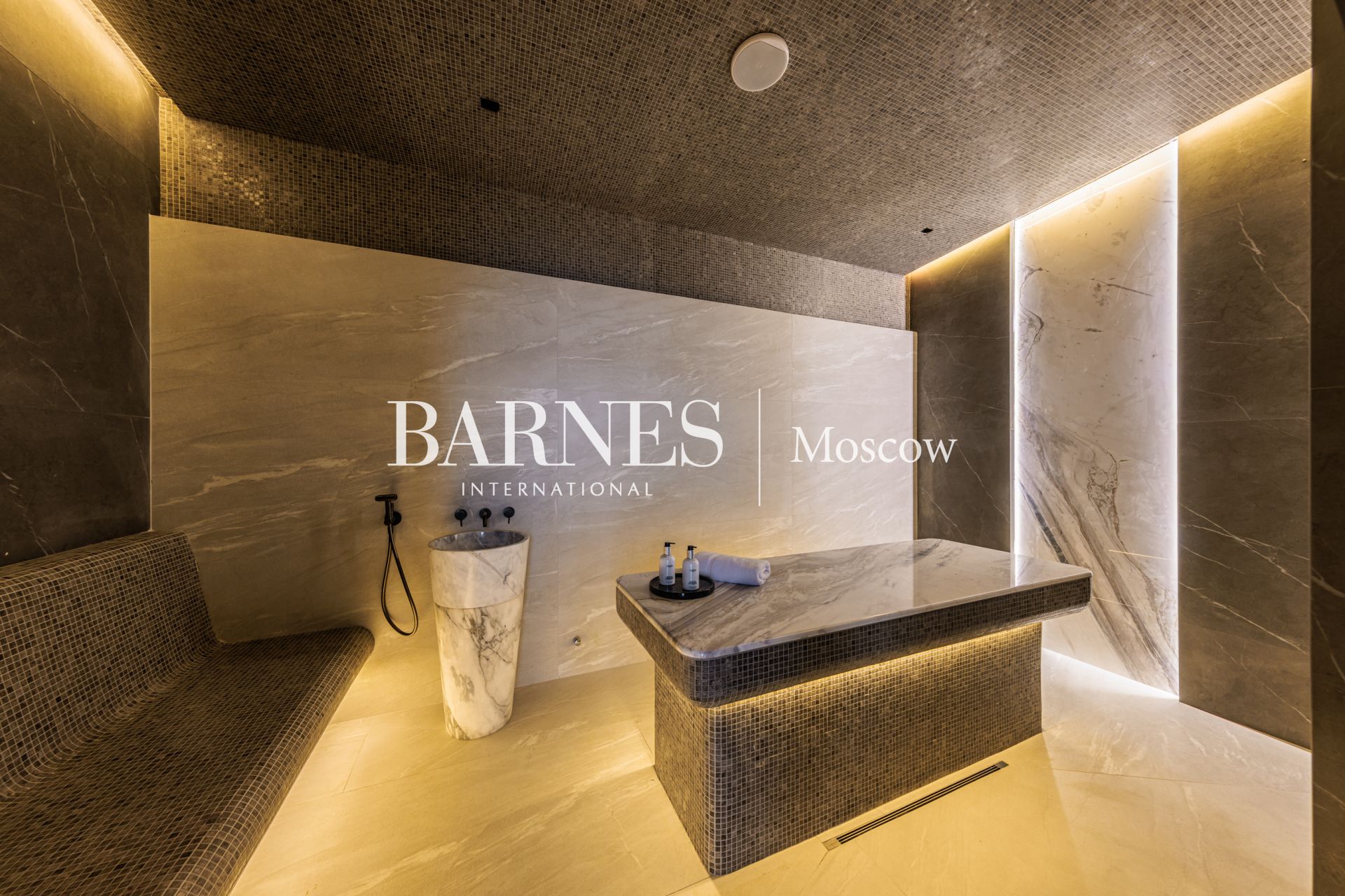 1 этаж: холл, гардеробная, гостиная с выходом на летнюю террасу с зоной барбекю, кухня-столовая, рабочая кухня, кладовая кухни, СПА: бассейн с выходом на летнюю террасу, сауна, хамам, санузел, массажный кабинет, тренажерный зал, раздевалка; гостевая спальня, кабинет, 3 санузла, 2 кладовые, топочная, комната водителей, гараж на 4 м/м;