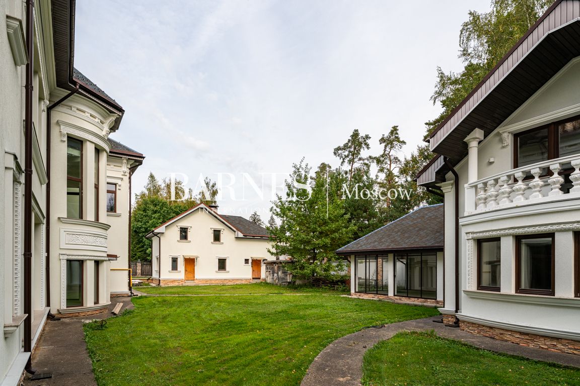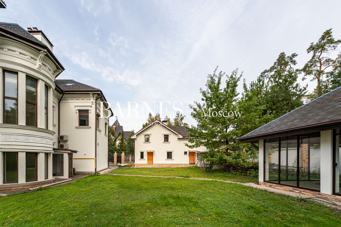 На участке: гостевой дом с остекленной террасой, оборудованной мангалом и сауной, а также дом для персонала. Два удобных въезда.