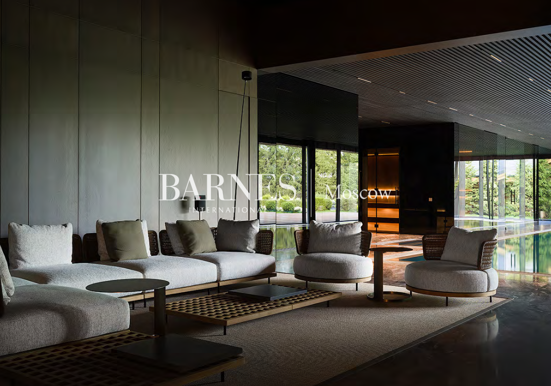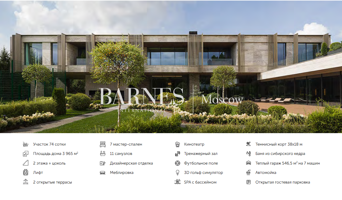 На участке: теннисный корт 38*18м, баня из сибирского кедра, гараж на 6 м/м, автомойка, открытая гостевая парковка.