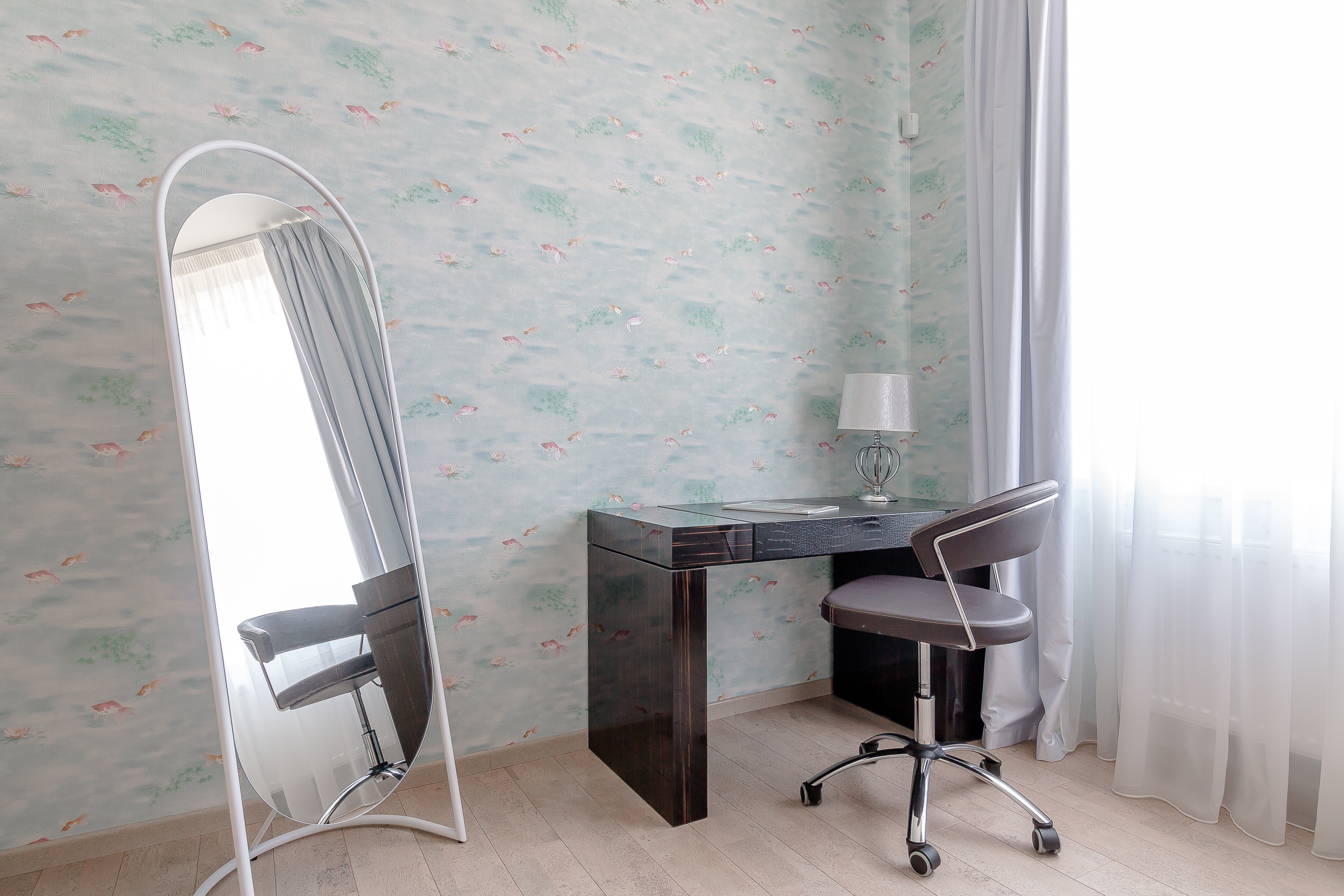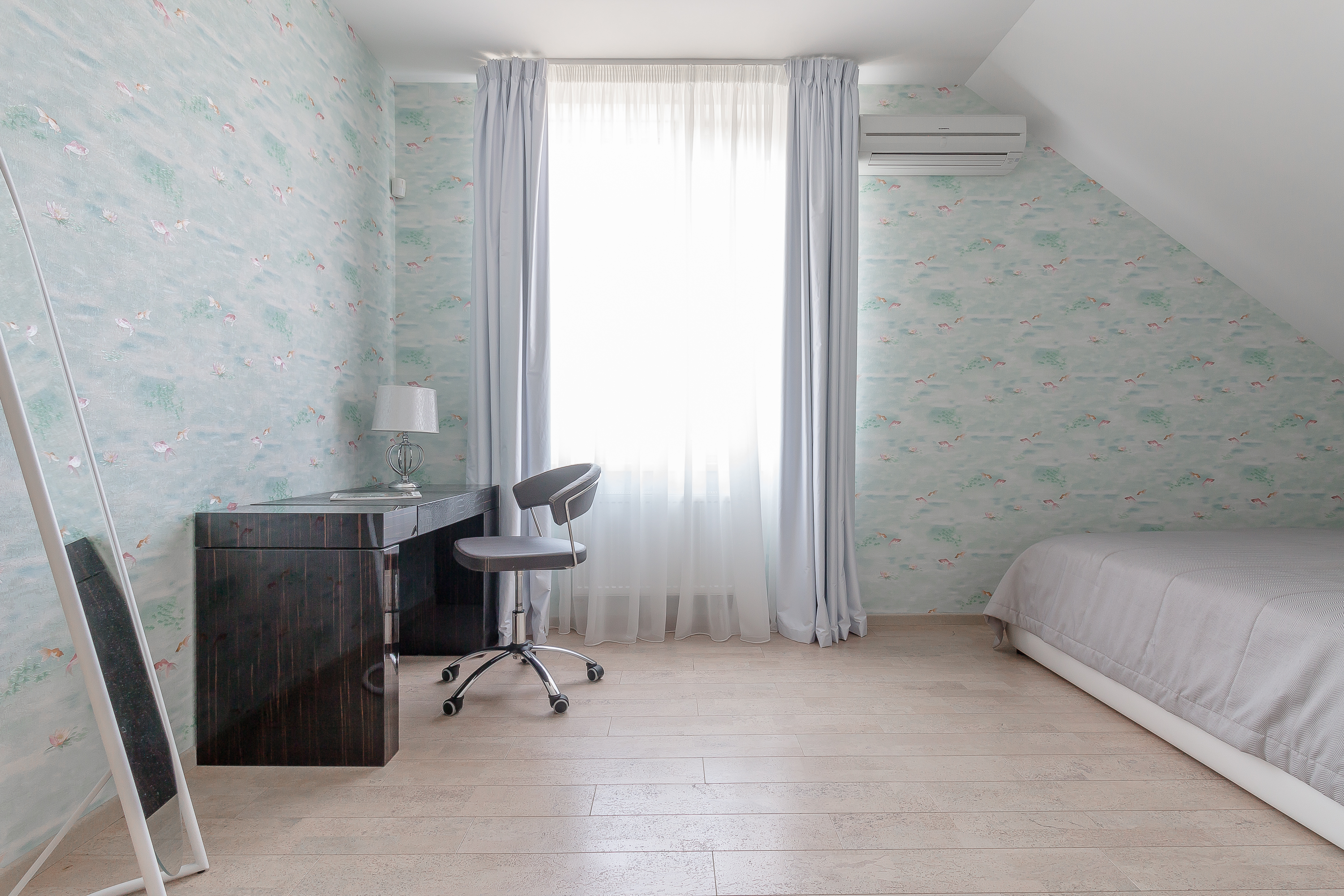 О коттедже: • Первый этаж: просторная кухня, светлая гостиная с обеденной зоной и зоной отдыха, выход на террасу с панорамным остеклением и прекрасным видом на природу участка. Также есть кабинет/гостевая комната, большой санузел/прачечная и профессионально оборудованная котельная. • Второй этаж: функциональная мастер-спальня с личным санузлом, гардеробной комнатой и выходом на балкон, детская комната, гостевая, санузел. • Третий мансардный этаж: возможность использования под любые цели.