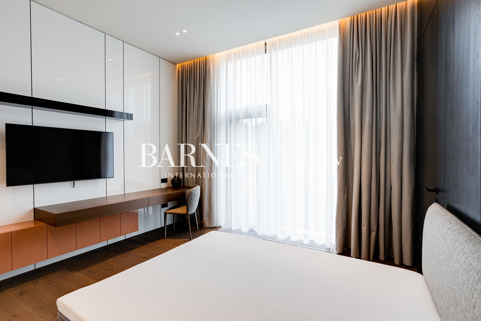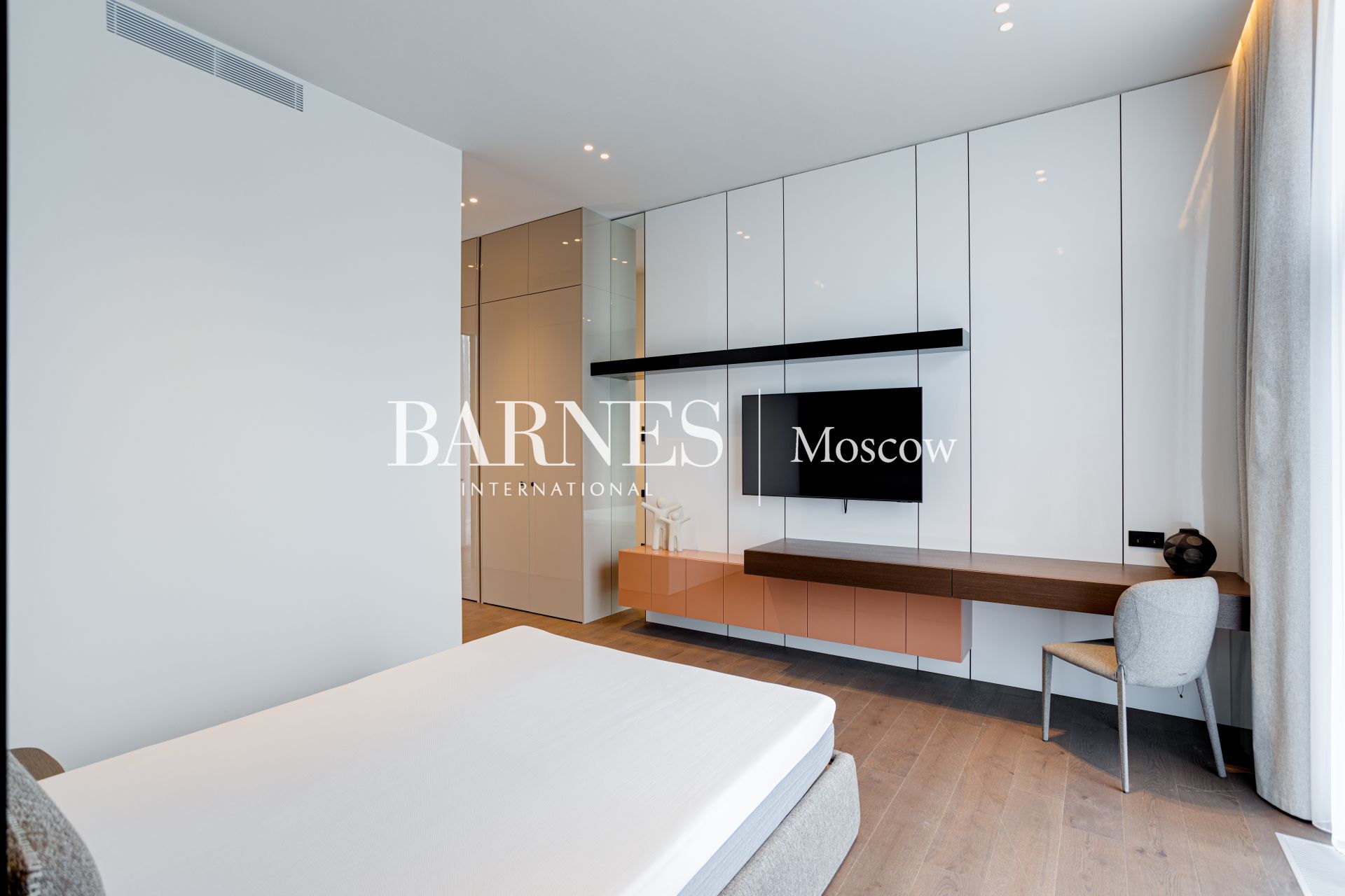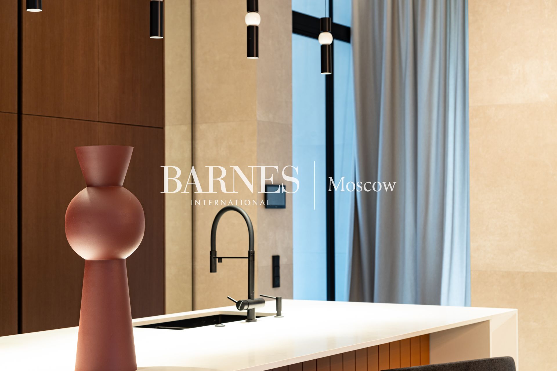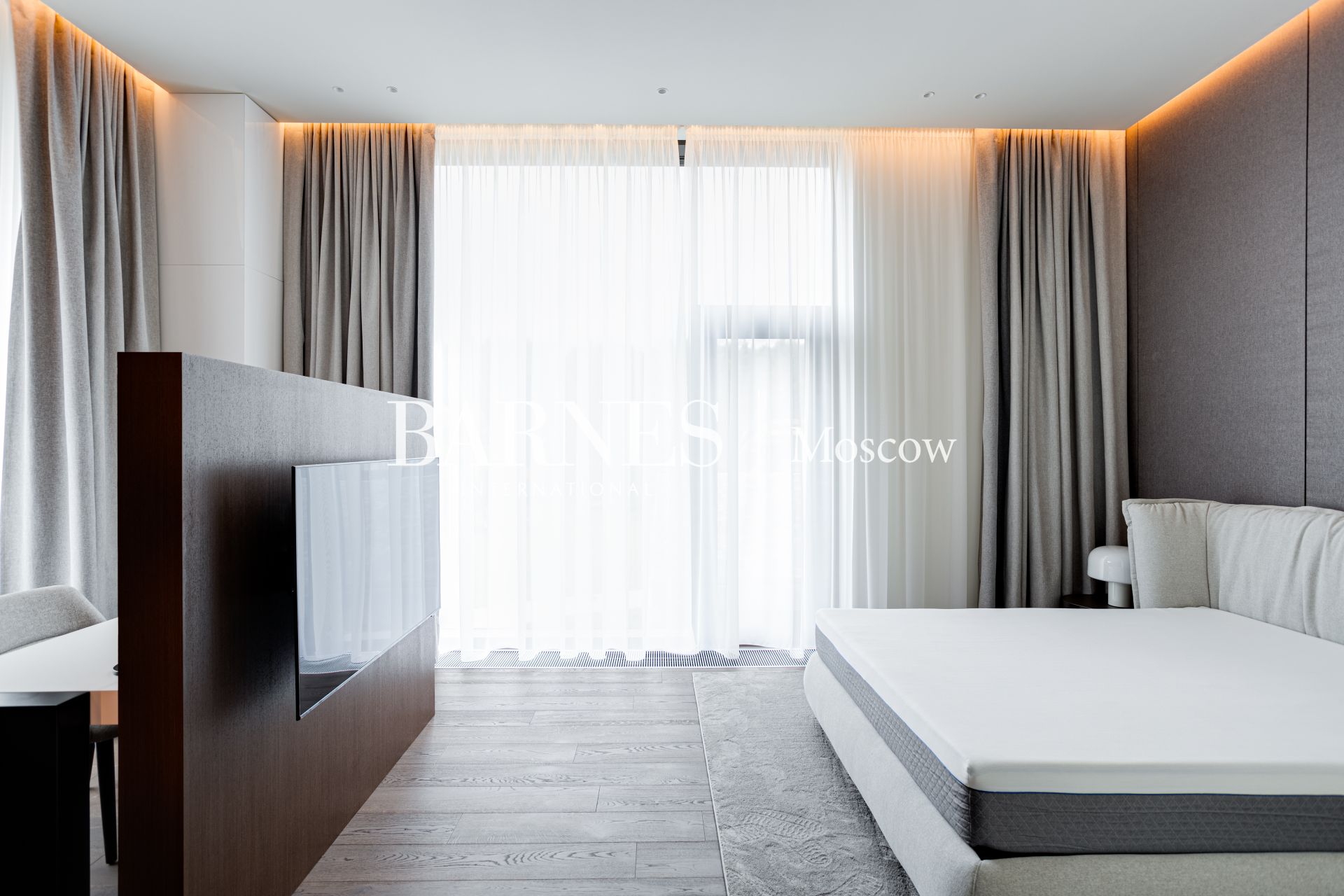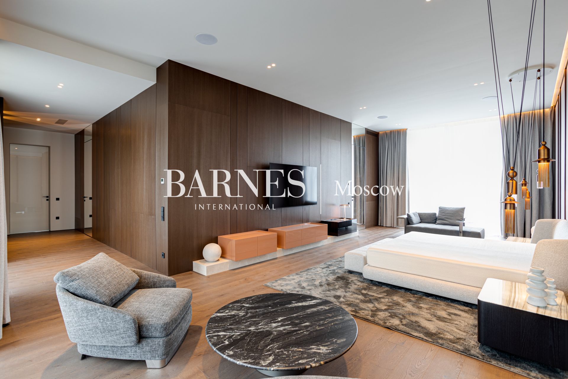 В отделке фасадов применена крупноформатная керамика LAMINAM контрастных цветов и разноширокий термированный планкен. Большие площади остекления визуально связывают внутреннее пространство дома с улицей. Во внутренней отделке дома применяются качественные отделочные материалы - инженерная доска FINEX, керамика LAMINAM, натуральный камень, столярные изделия и панели, двери UNION. Дом оборудован приточно-вытяжной системой с канальным кондиционированием воздуха. В котельной установлены котлы Viessman. Мебель - MINOTTI, POLIFORM, MERIDIANI, Cattelan Italia. Освещение - CENTRSVET, Flos, Vibia. Сантехника - HANSGROHE, Villeroy&Boch, Salini. Бытовая техника - Miele, ASKO.