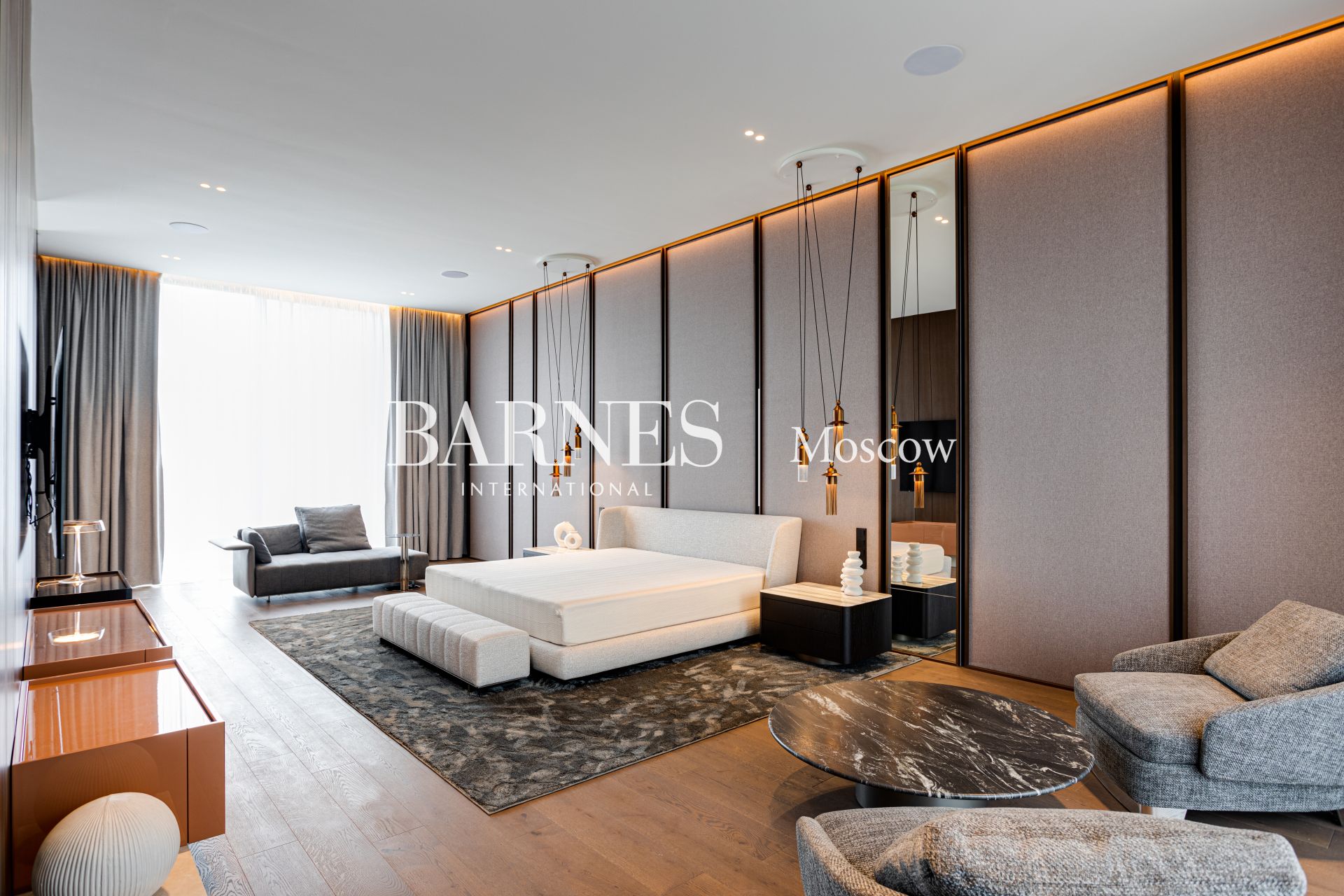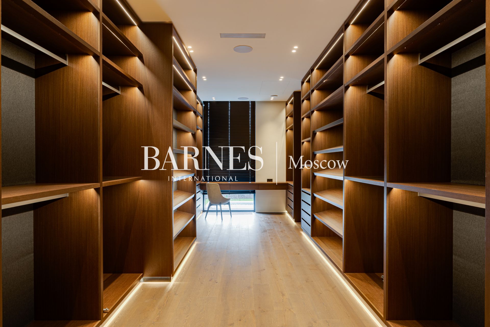 2-й этаж: холл, мастер-спальня с просторными гардеробной, ванной комнатой и выходом на балкон, 2 спальни с гардеробными и с/у, спальня с гардеробной и ванной комнатой.