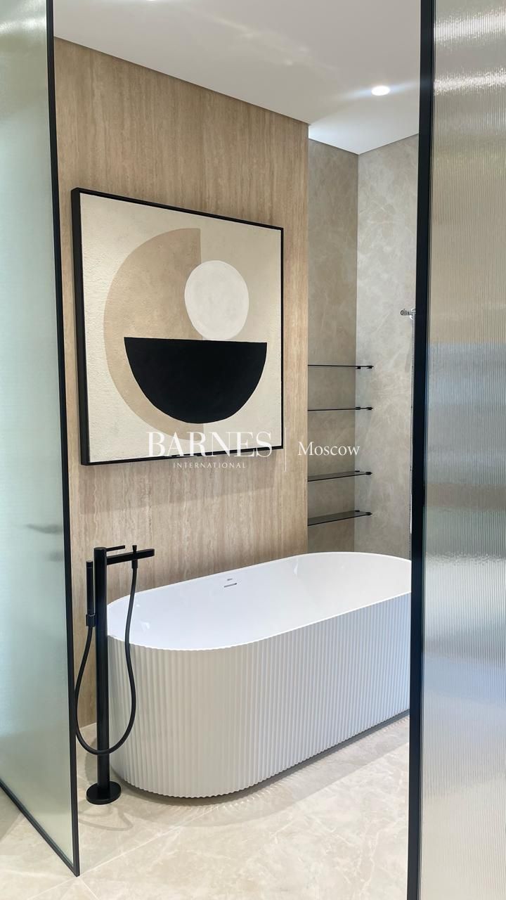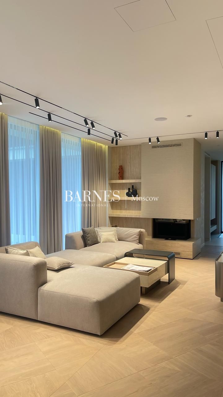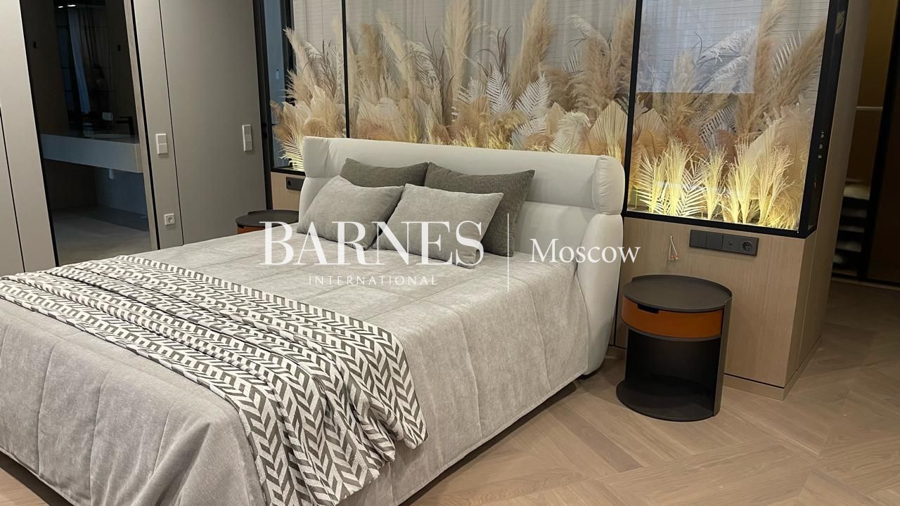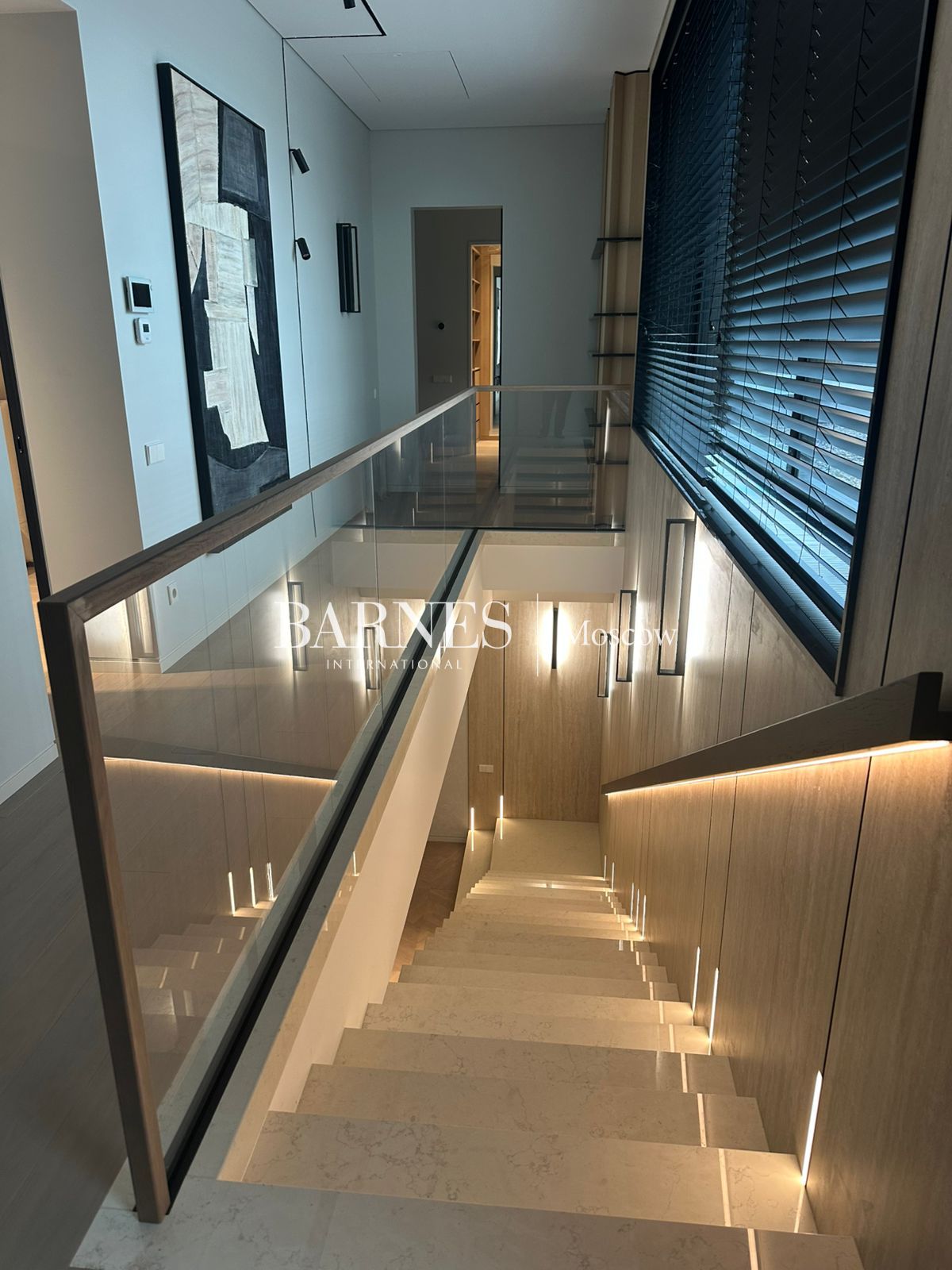 Современный интерьер, панорамные окна, качественная отделка в светлых оттенках, с предметами декора от известных мировых брендов.