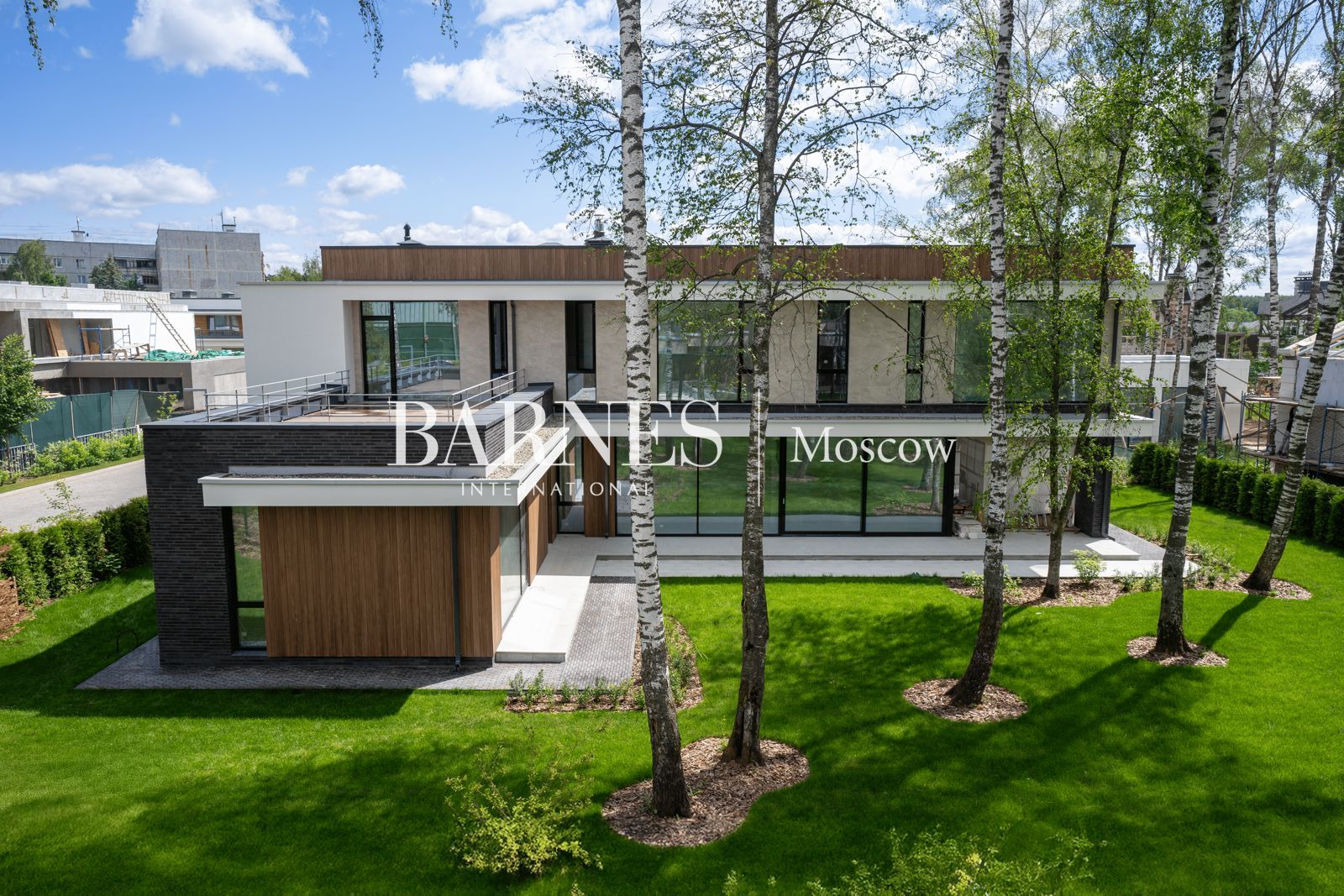 Абсолютно новый современный дом под ключ в КП Тувиль. Площадь дома составляет 400 м.кв. на участоке в 12 соток. Элементы ландшафта гармонично дополняют образ дома.