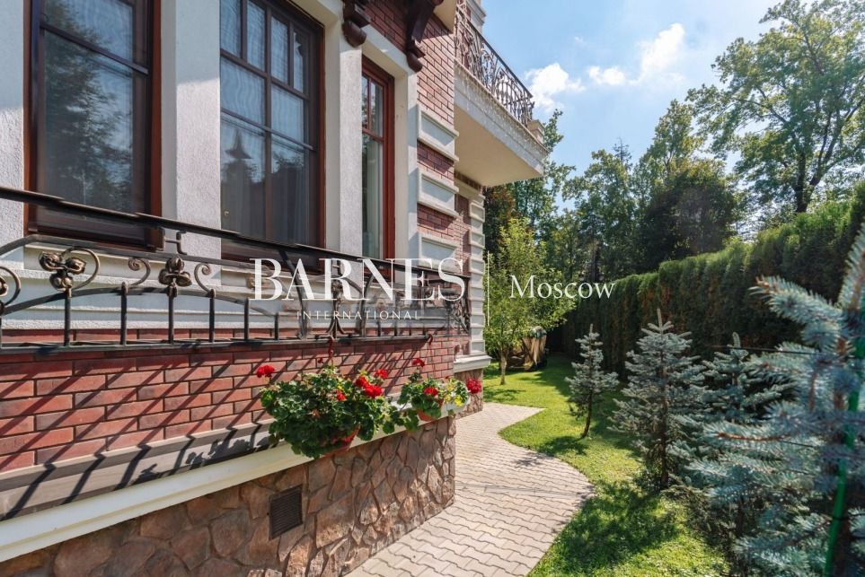 На участке проведены ландшафтные работы: мощение, дренаж, освещение и озеленение, газонная лужайка, живая изгородь из туй, высажены декоративные лиственные и хвойные растения, так же есть плодовый сад. В приватной части участка стоит небольшой дом для проживания персонала и мастерская с зоной хранения.