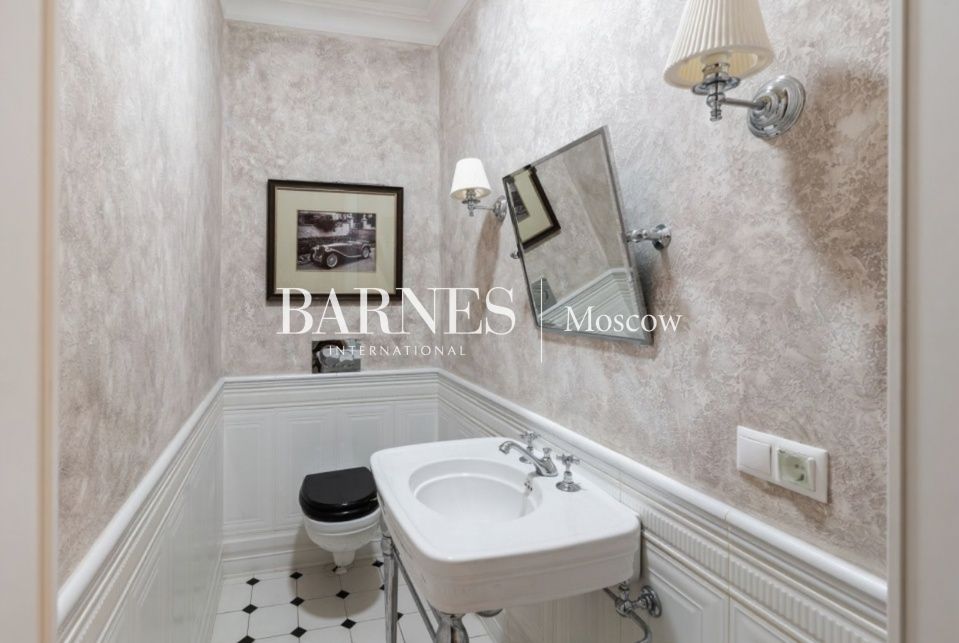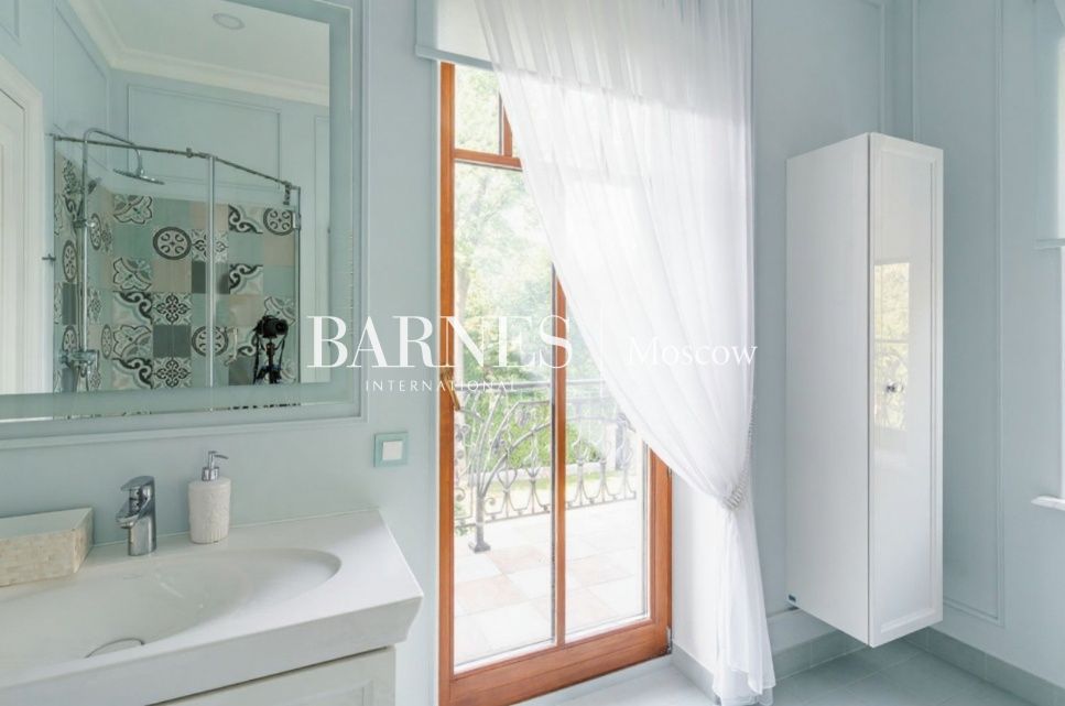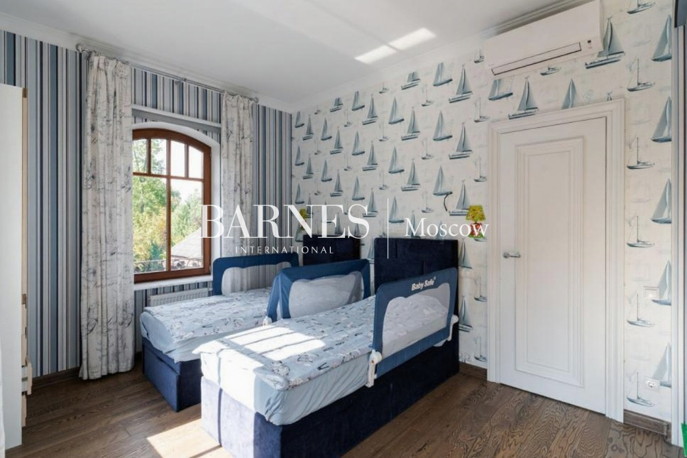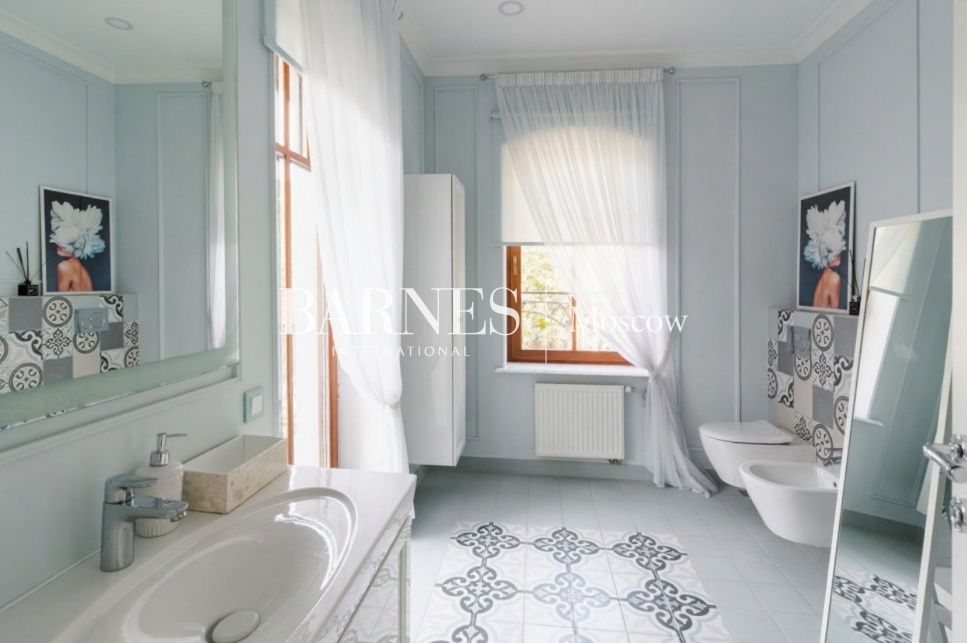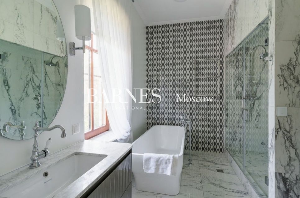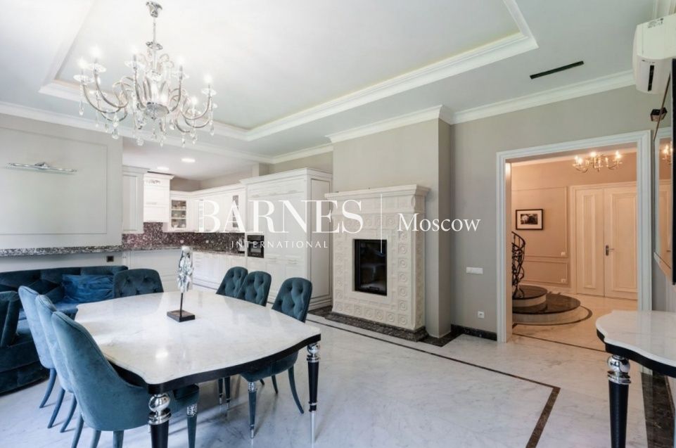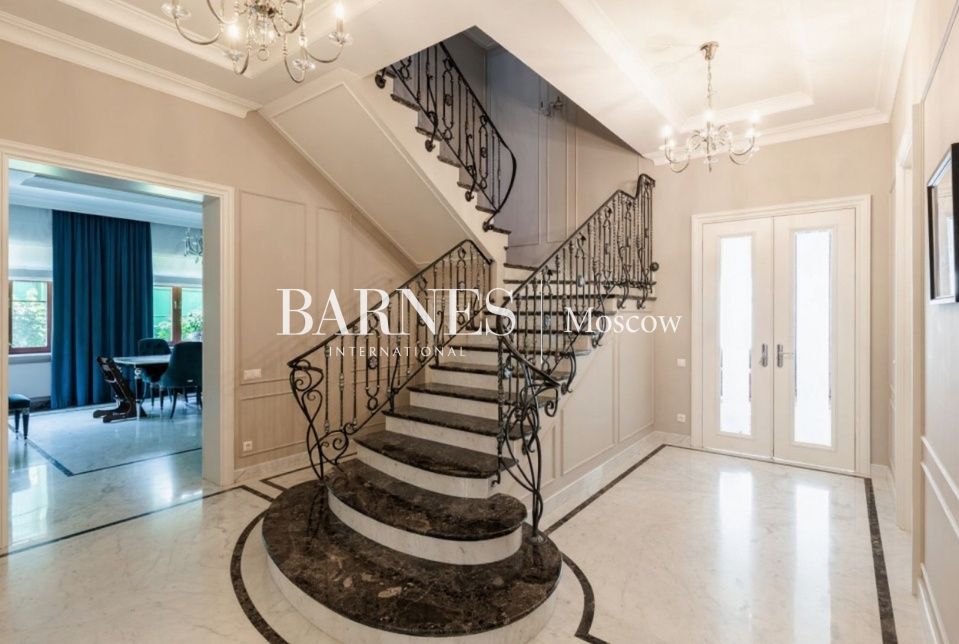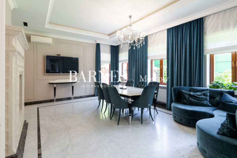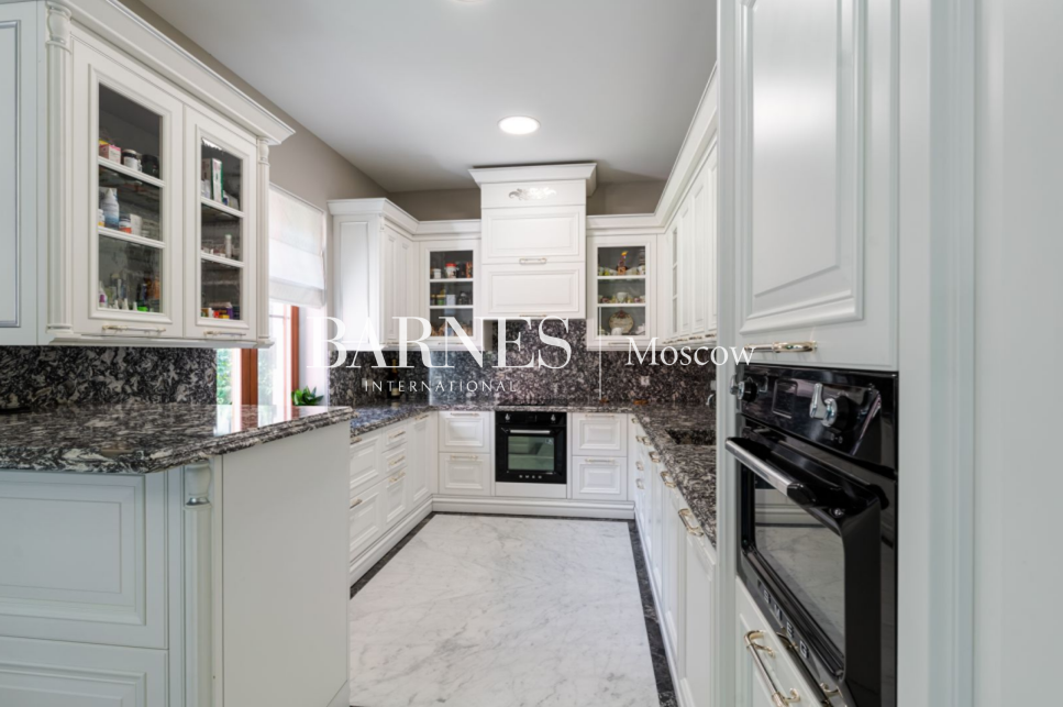 В отделке дома использованы дорогие натуральные материалы: пол, лестница, подоконники -мрамор (Италия), кухня Cesare, техника Smeg, двери, люстры, светильники так же из Италии, дубовый премиальный паркет Coswick, кабинет Bjorkkvist, котельное оборудование Valiant.