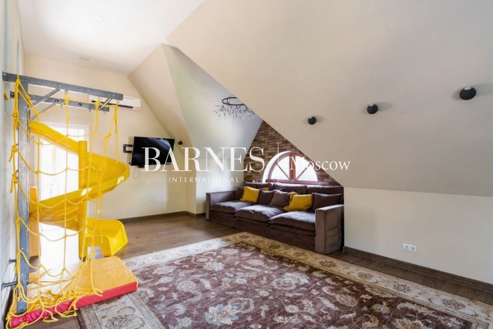 Мансарда: большое пространство с игровым комплексом: горка, шведская стенка; 2 спальни, с/у., комната свободного назначения ( при желании может быть дополнительной спальней).