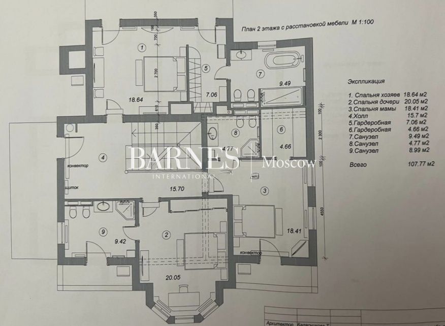 2 этаж: холл с выходом на балкон, мастер спальня с гардеробной и ванной комнатами, спальня с гардеробной и ванной комнатой, спальня с ванной комнатой;