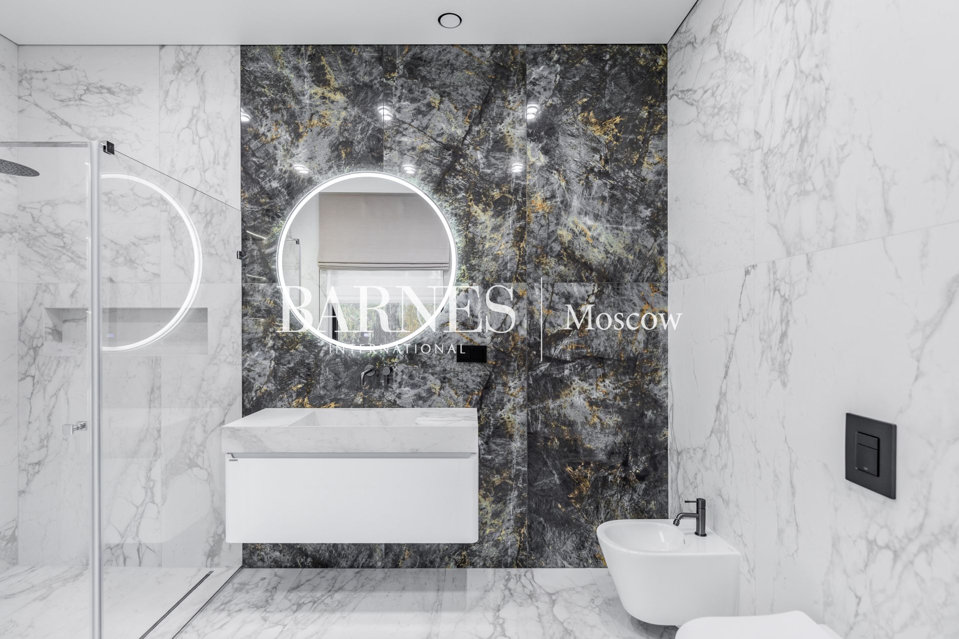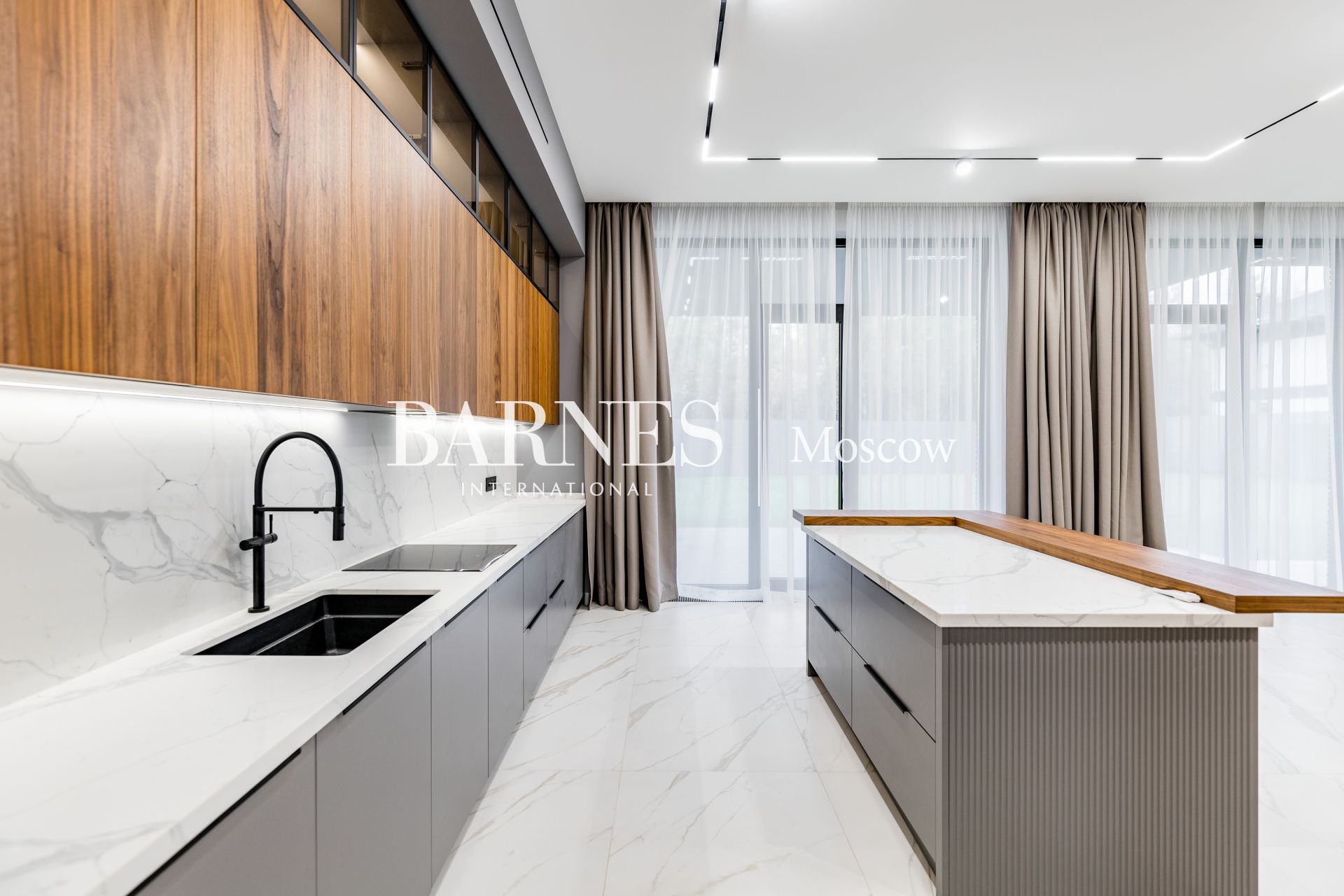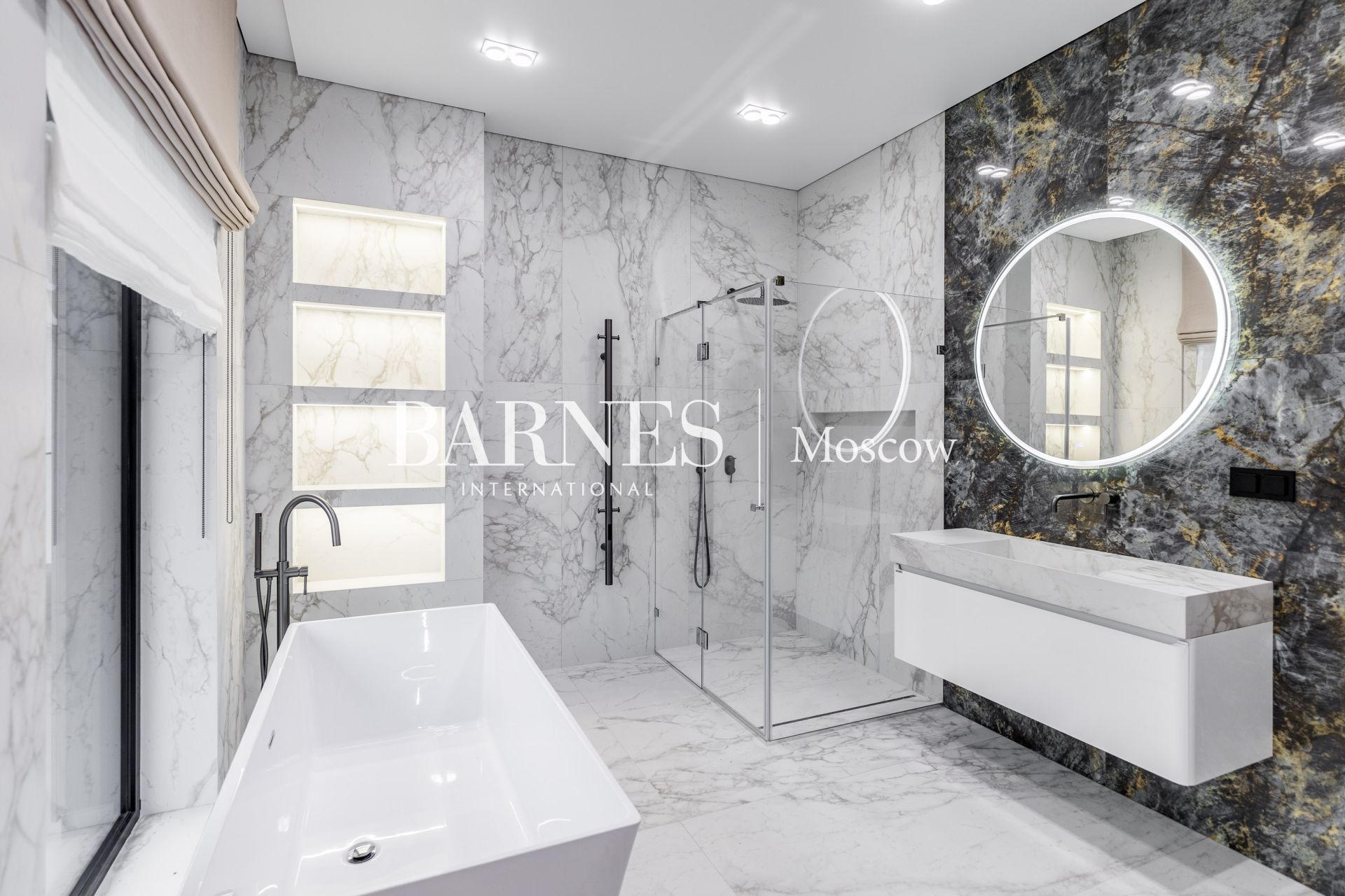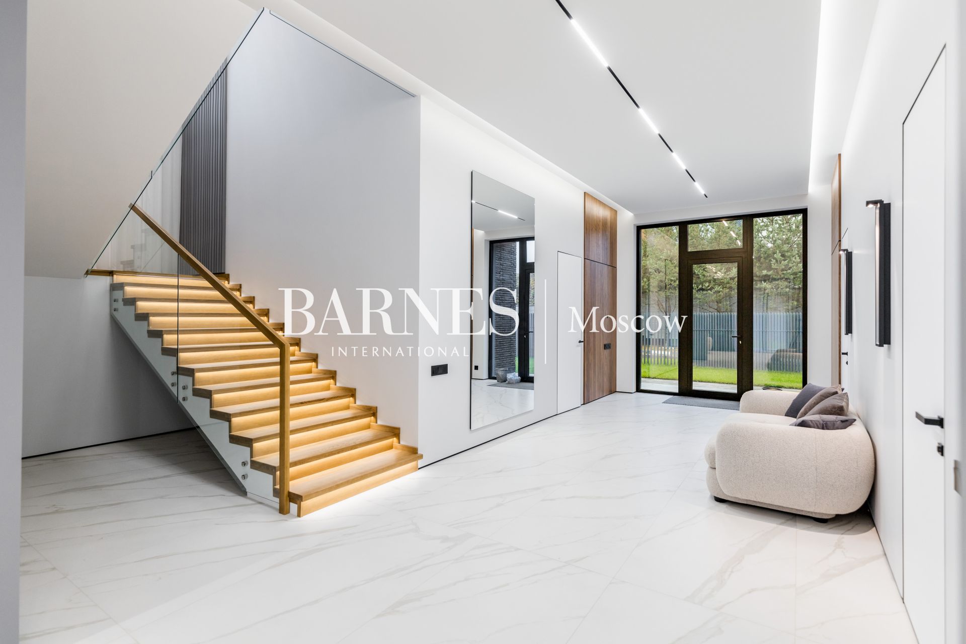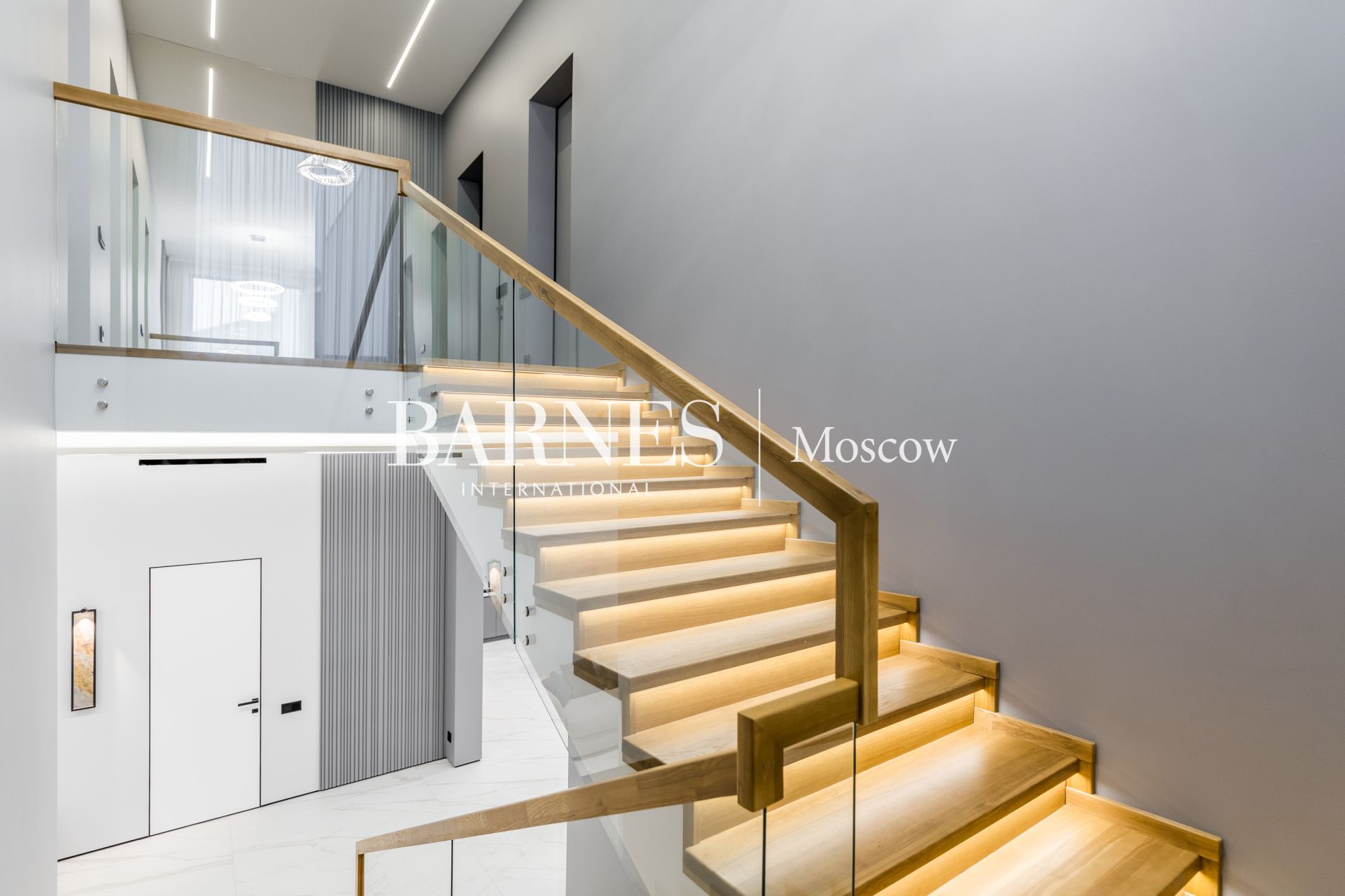 ID: 585646 Продается дом 605 кв.м. на участке 16 соток в КП Заря. 16 км. от МКАД по Рублево-Успенскому или Можайскому шоссе. Есть выезд на платную скоростную дорогу. Планировка дома: 1 этаж: холл, гардеробная, кухня-столовая-гостиная с выходом на террасу, рабочая кухня, СПА-зона с сауной, душевой и санузлом. постирочная, кладовая, блок для персонала, гараж на 2 м/м;2 этаж: холл, мастер-спальня с гардеробной, с/у и выходом на балкон, 2 спальни с гардеробными, с/у и выходом на балкон, спальня с гардеробной и с/у. Коммуникации центральные. Участок ровный, правильной формы, с ландшафтными работами: газон, дорожки, декоративные насаждения.