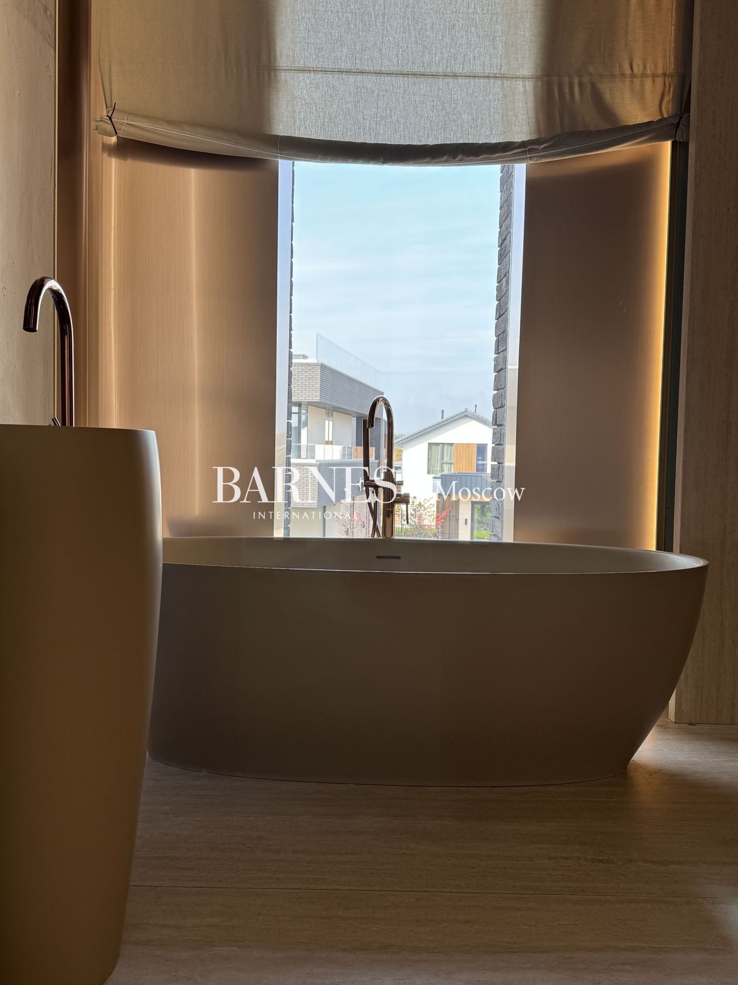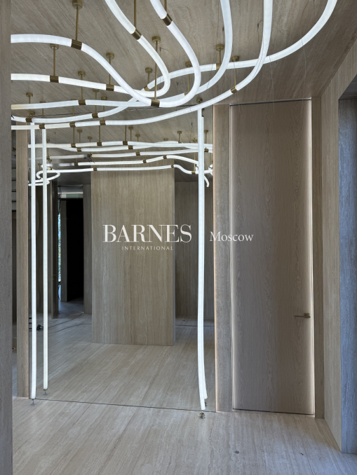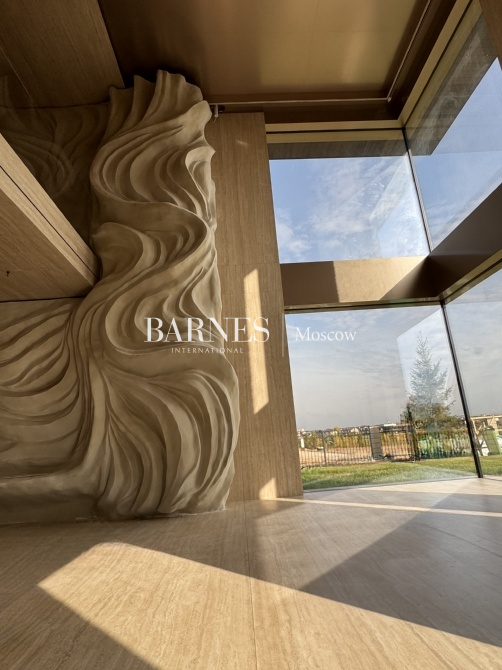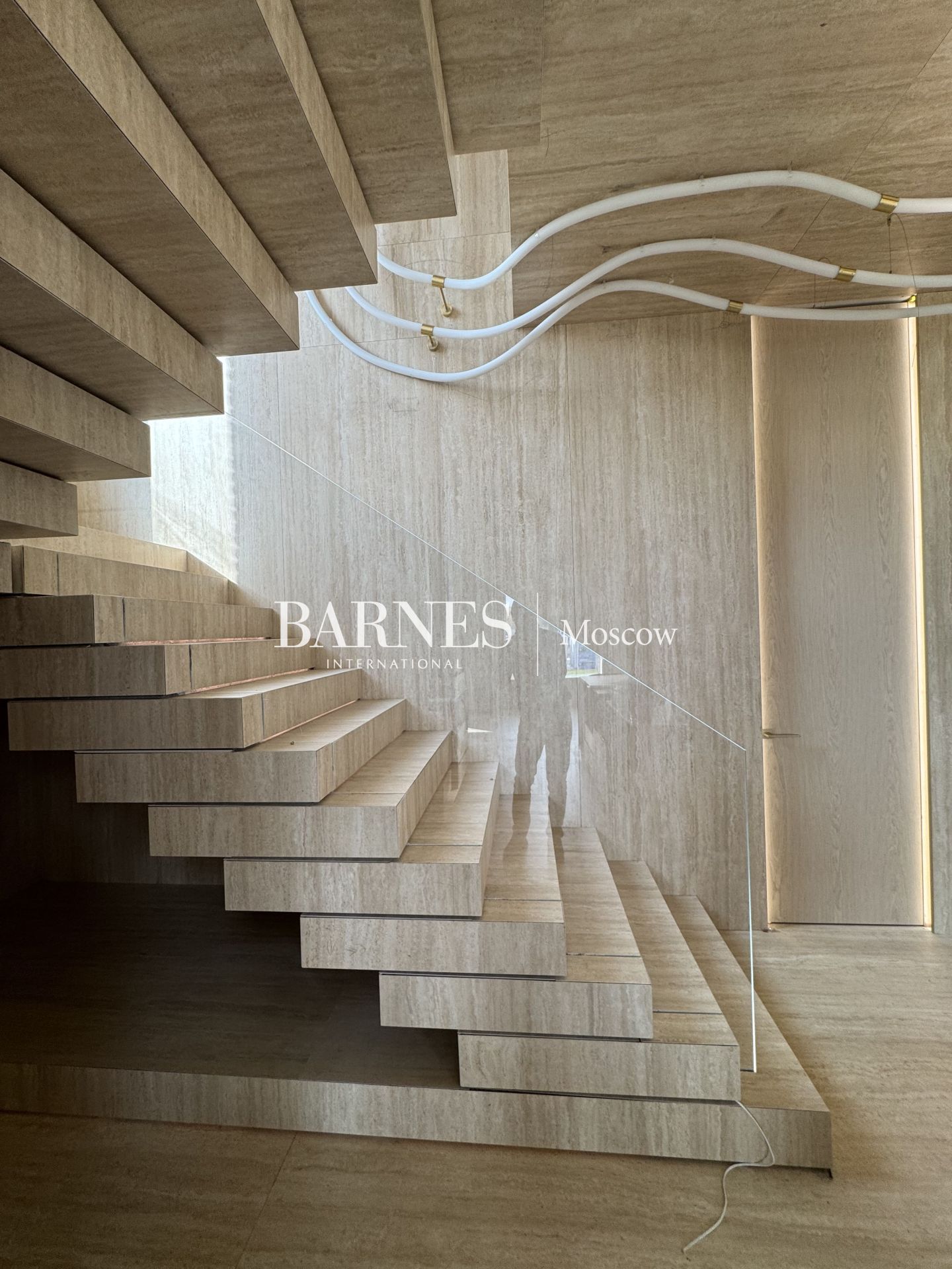Высота потолков — 3,20 м, двери, окна и зеркала — во всю высоту. Монохромные природные оттенки травертина. Арт-стена Dune - это эмоциональный центр дома. Пространство продумано до сантиметра: пропорции, широкие проходы, мебель в реальных размерах. Здесь всё соразмерно — и телу, и душе.