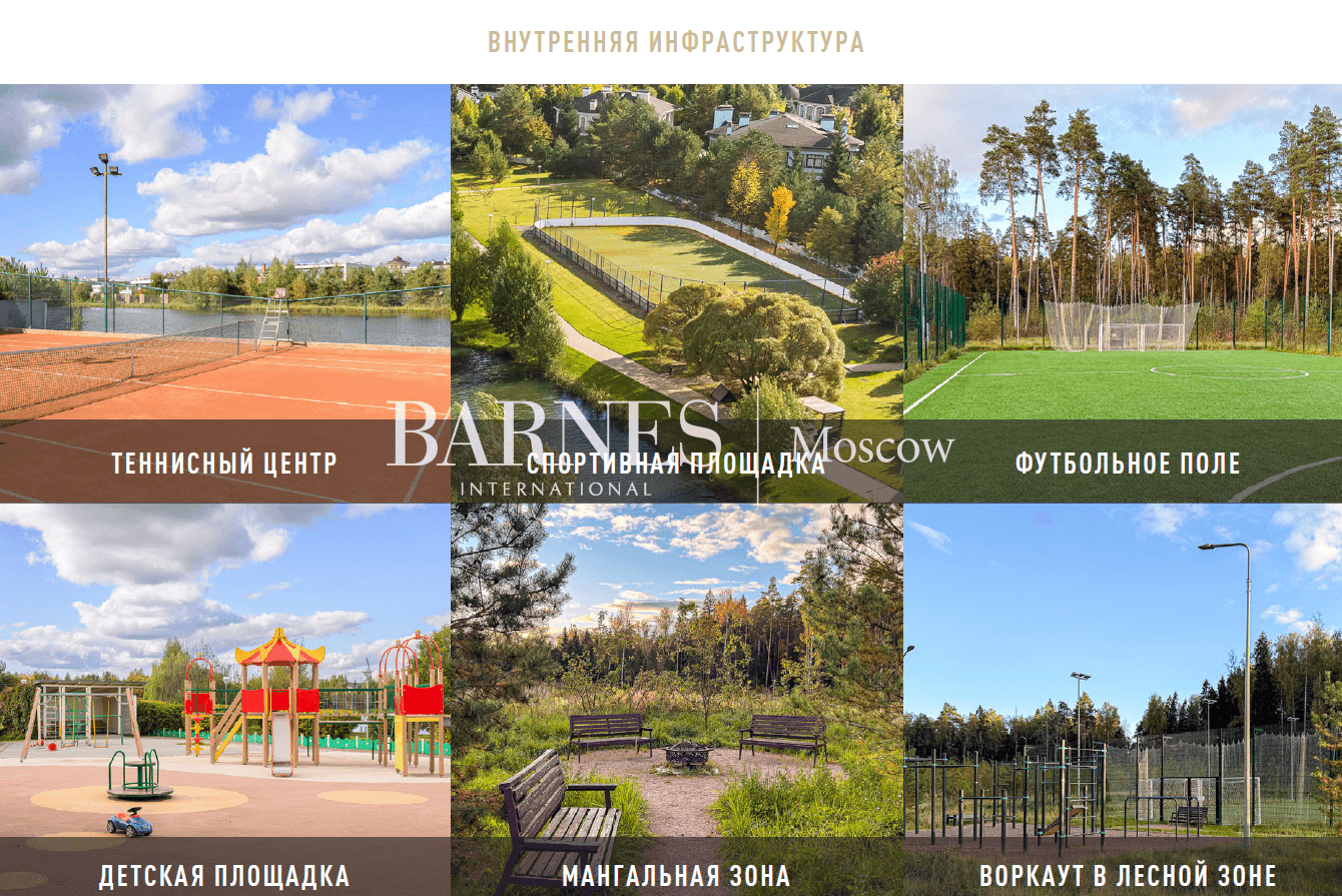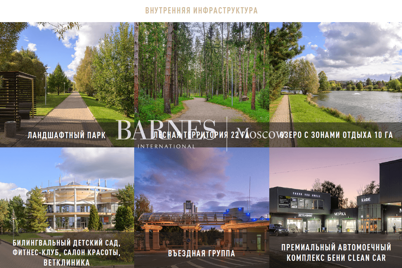 Собственное озеро, детские площадки, воркаут площадка, лесная прогулочная зона 22 га. Зимой в лесу прокладывается лыжня и заливается хоккейная площадка у озера. Непосредственно на территории: Билингвальный Монтессори детский сад, фитнес-центр с бассейном Fitness One, теннисный клуб Tennis Benelux, ветеринарная клиника ВетВилль VetVille, банкомат Россельхозбанка и пункт выдачи Ozon.