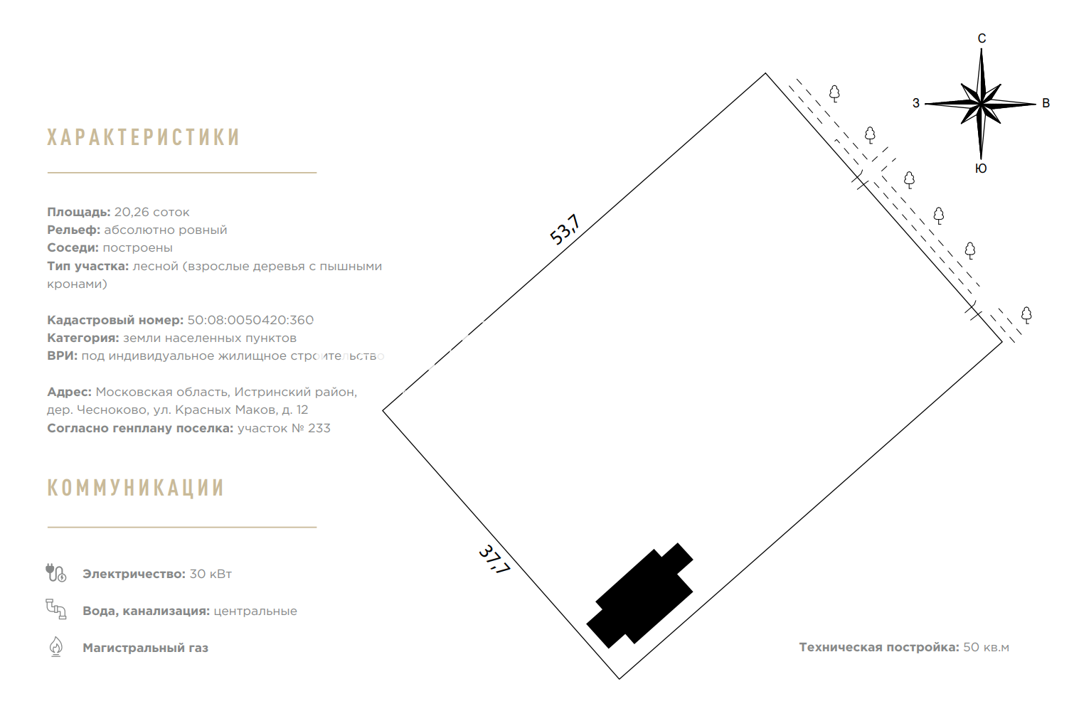 Продается единственный свободный участок с ровным рельефом правильной формы площадью 20,26 соток в элитном поселке в 19 км от МКАД по Новорижскому шоссе.