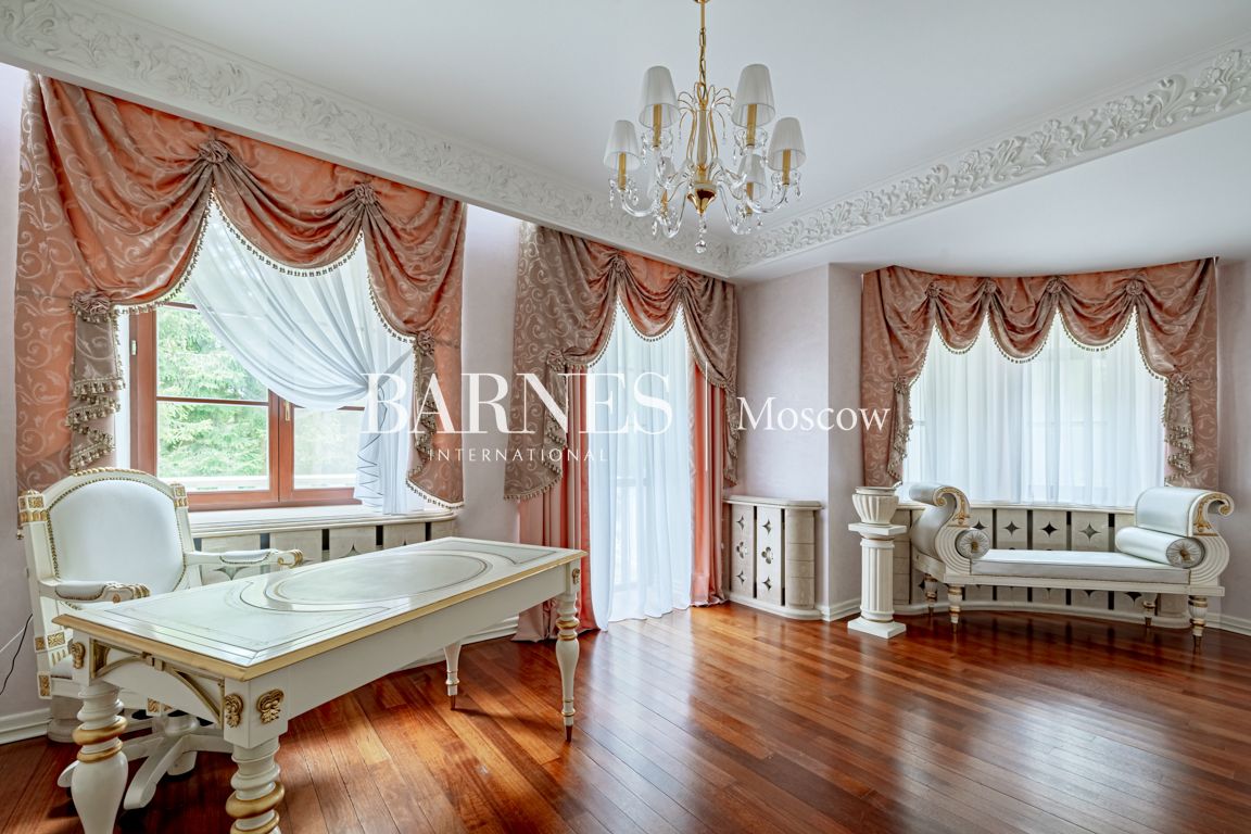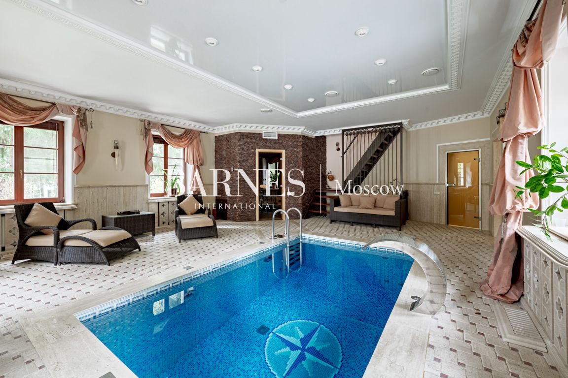 Продается дом 800 кв.м. с бассейном на участке 50 соток в КП Шервуд. 22 км. от МКАД по Новорижскому шоссе.