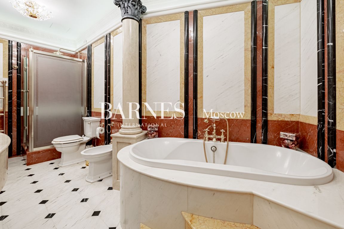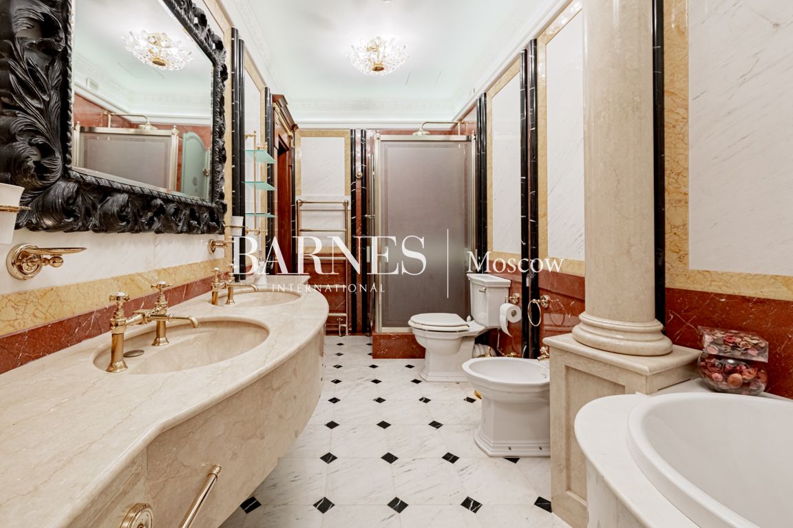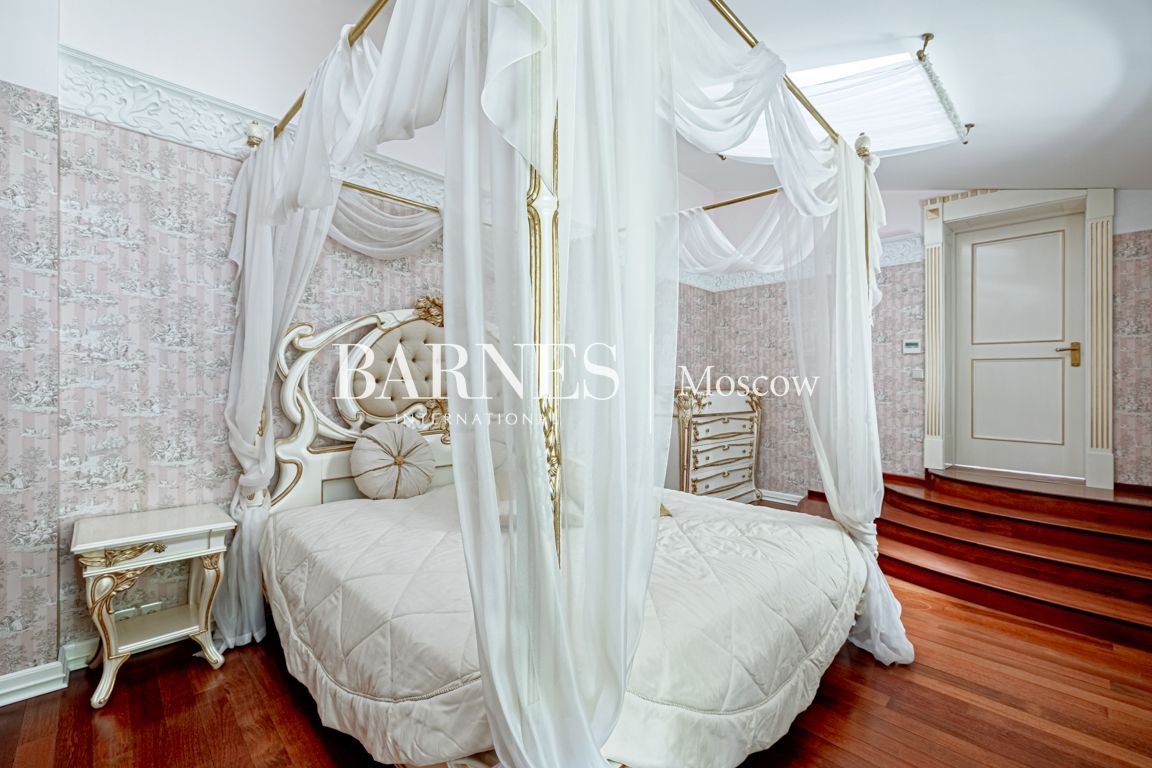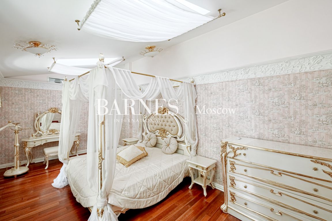 2 этаж: мастер-блок (2 спальни, каждая с гардеробной, ванная комната, терраса), 2 спальни, каждая с гардеробной, ванной комнатой и кабинетом.