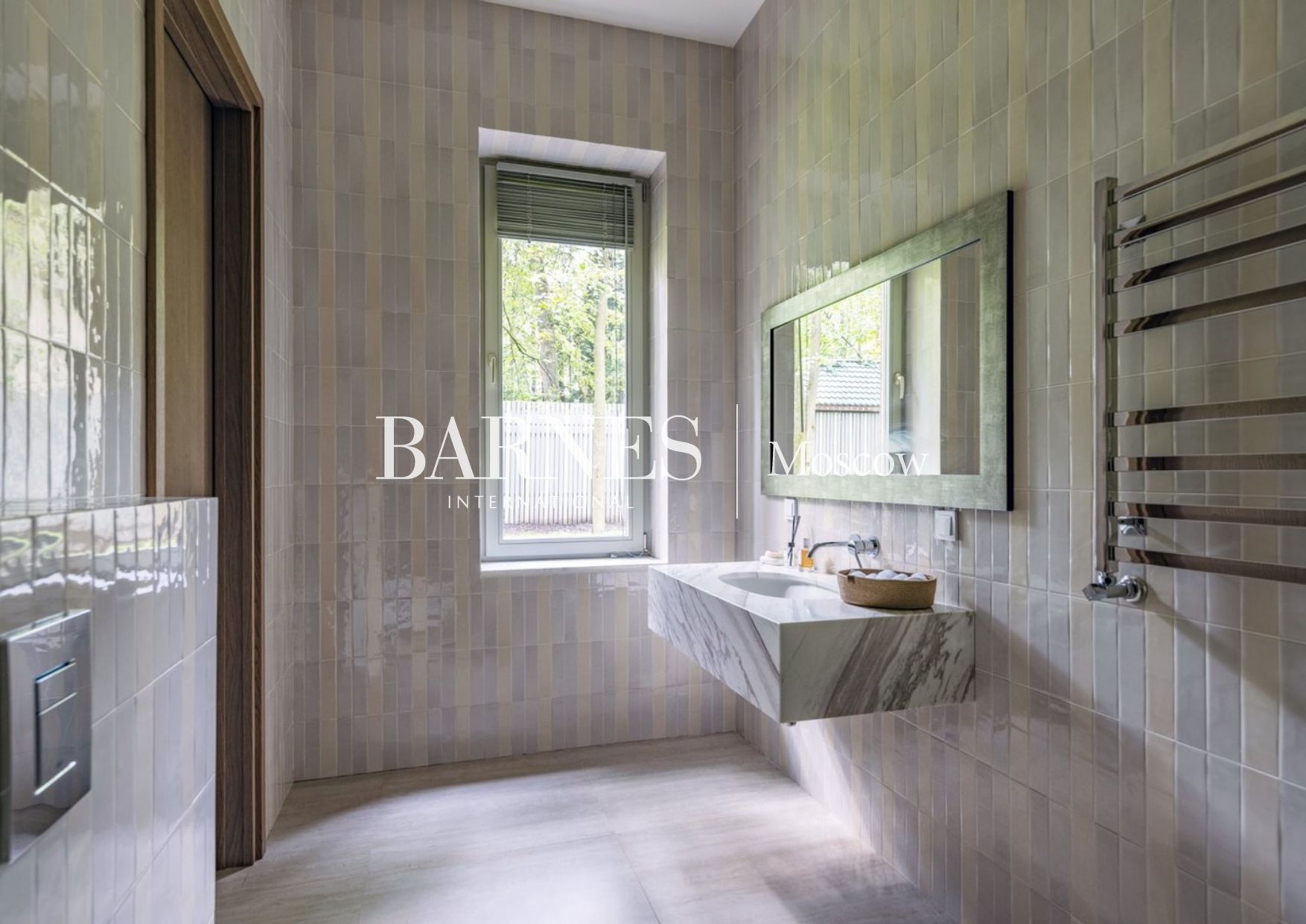 Технологичность не уступает эстетике: приточно-вытяжная вентиляция, кондиционирование, повышенное давление воды, водоочистка, электроприводы штор, датчики протечек, видеонаблюдение, закладные под бассейн на участке,