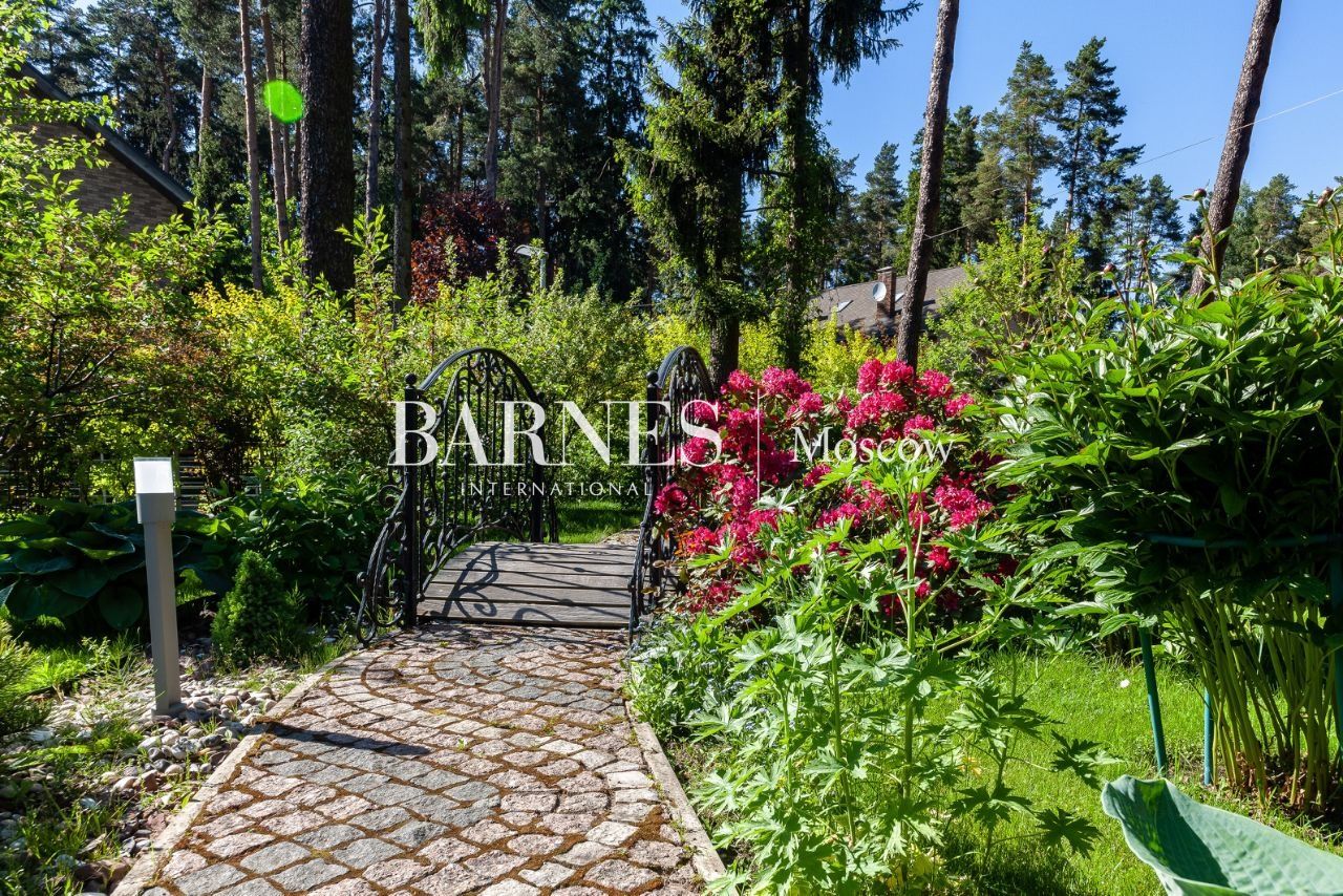 Участок ровный, правильной формы с ландшафтными работами: газон, дорожки, декоративные насаждения.