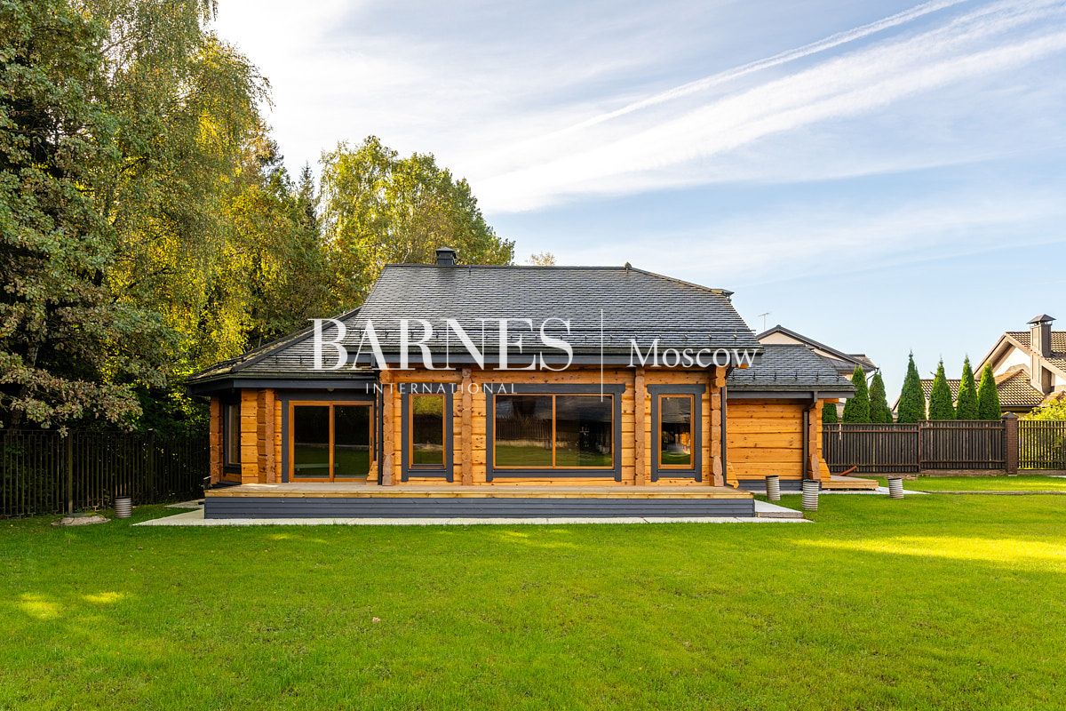 Это уникальный деревянный дом в современном стиле, изготовленный из лафета крупного диаметра кедра. Такой проект представляет собой пример стильной и лаконичной архитектуры, созданной на основе традиционной ручной рубки.
