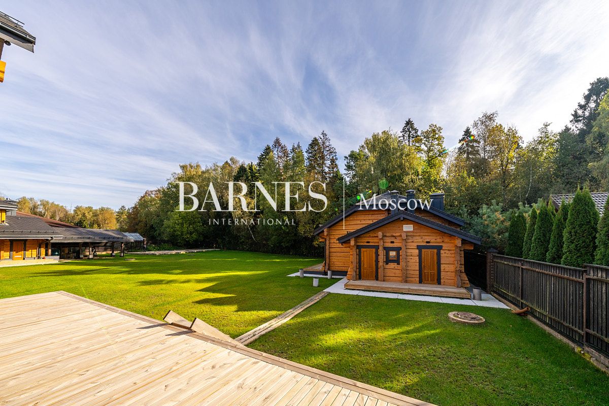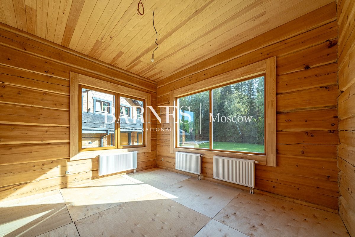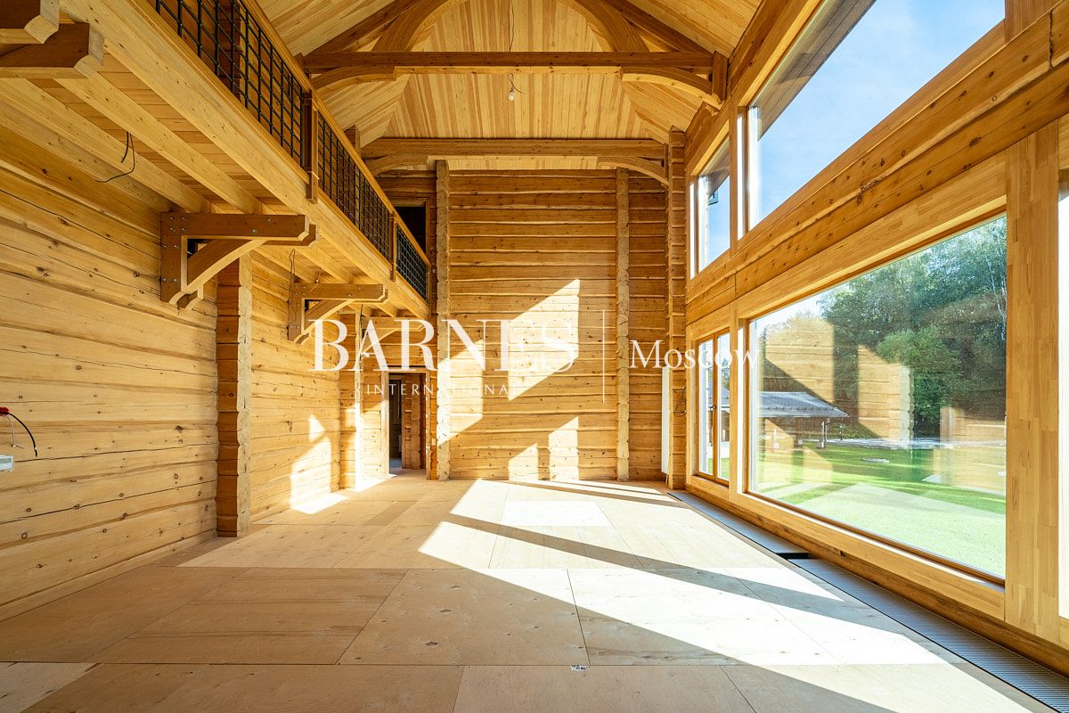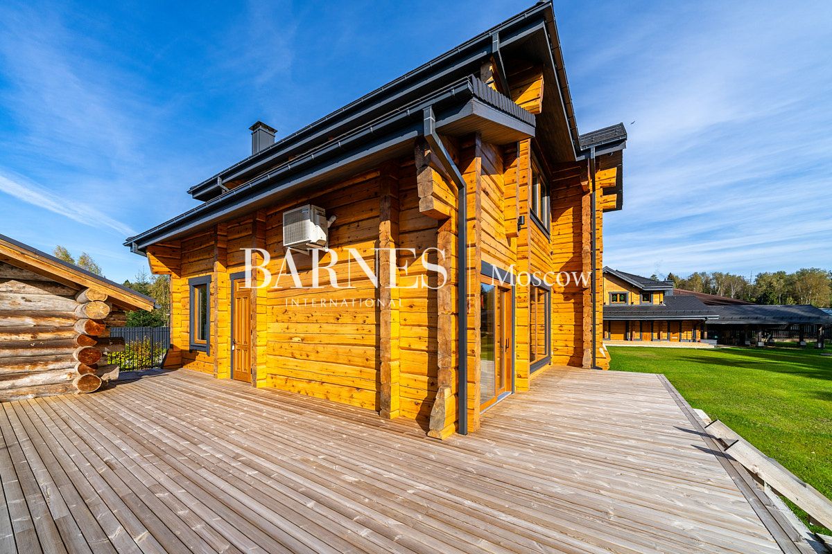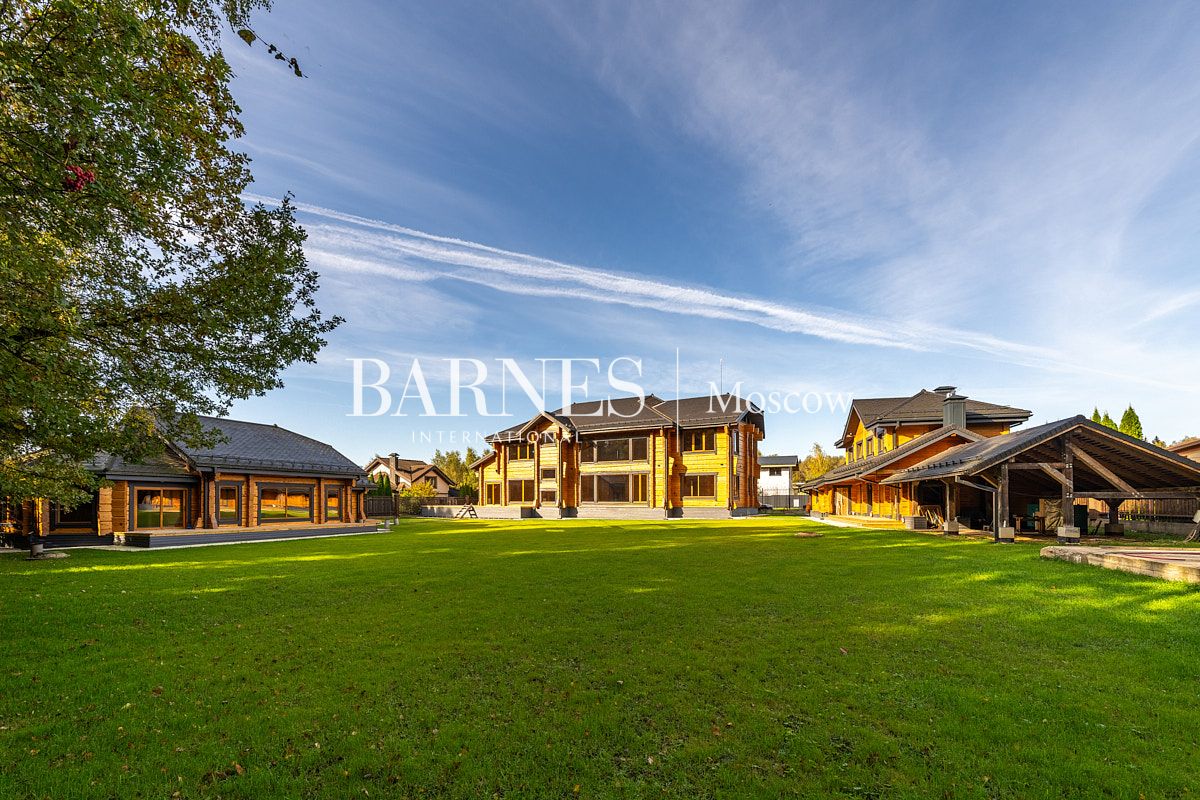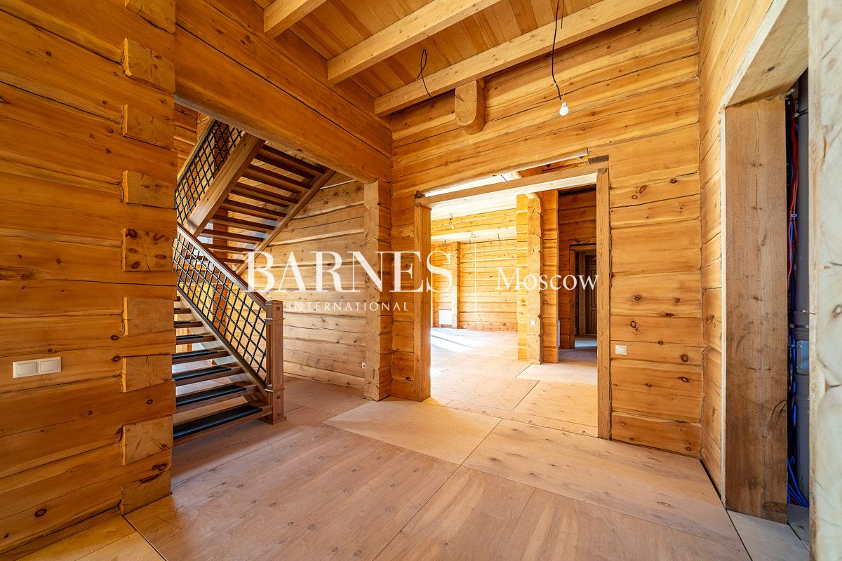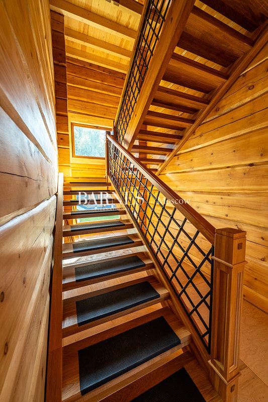 Основной дом: трёхэтажный (включая мансарду) из кедрового лафета, общей площадью 550,7 м².