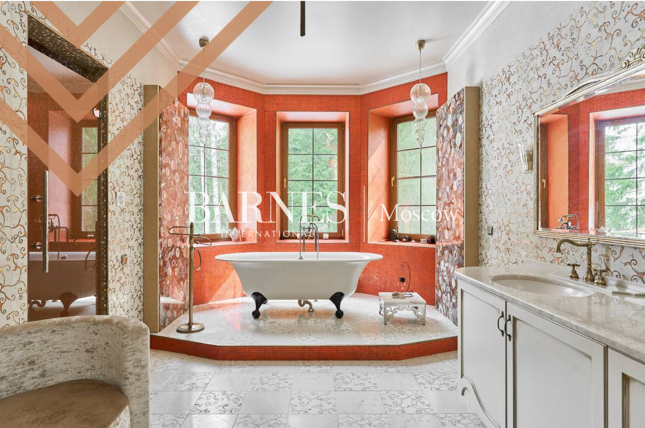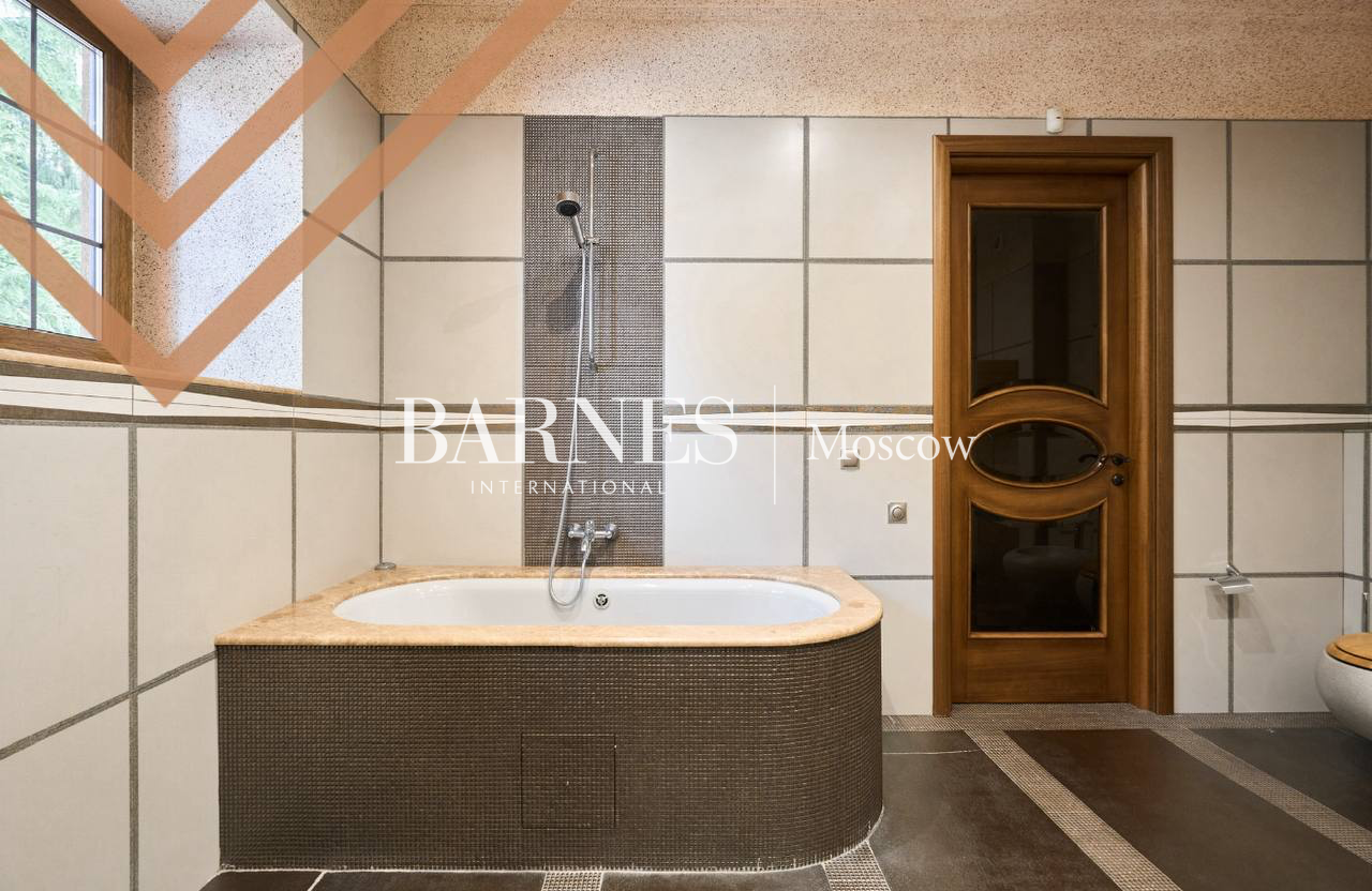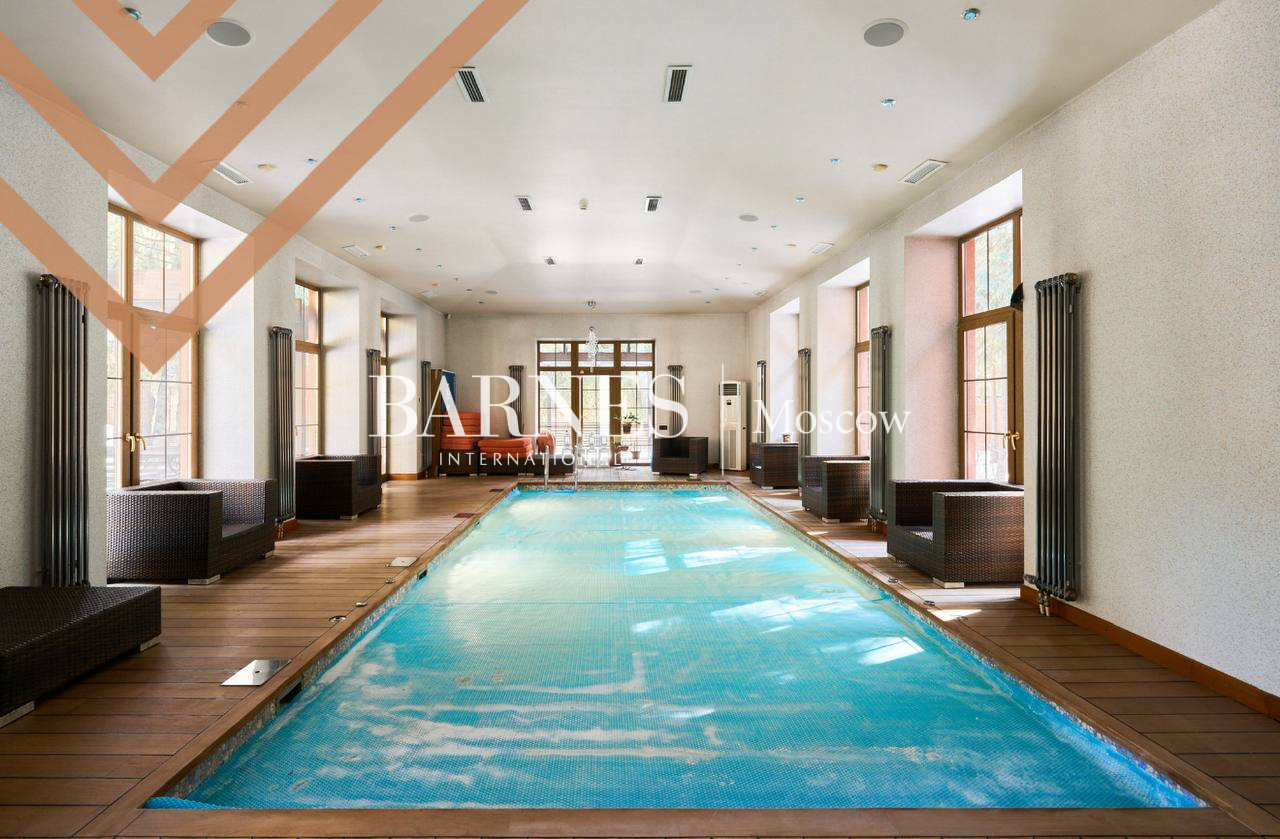 Предлагается к продаже элегантный дом с современным бассейном и отделкой «под ключ» общей площадью 763 м², расположенный на живописном лесном участке площадью 0,5 Га, в окружении вековых хвойных деревьев в охраняемом поселке "Лесной Ручей-2".