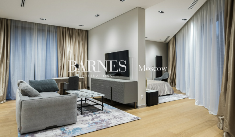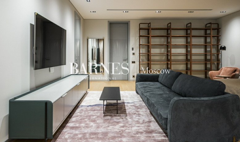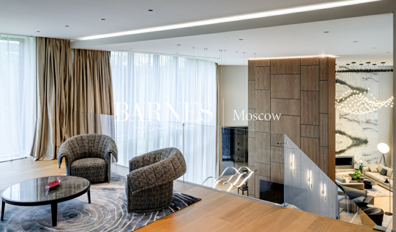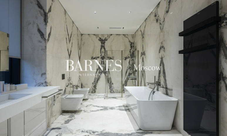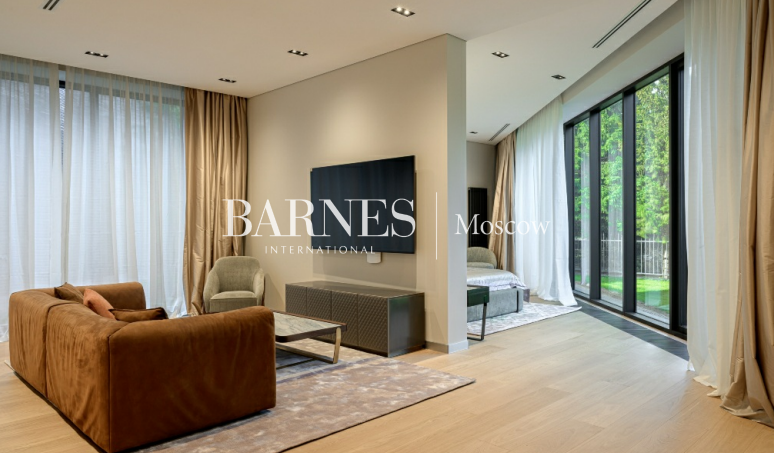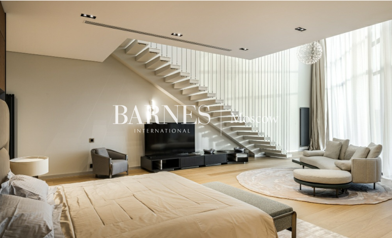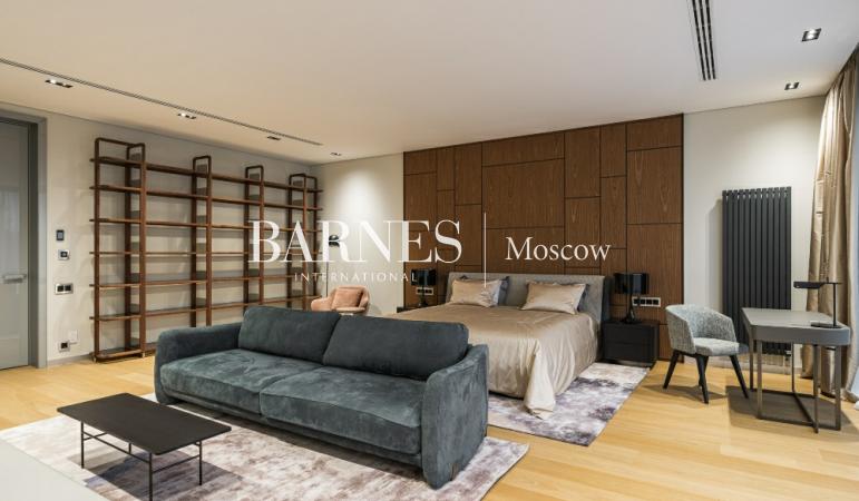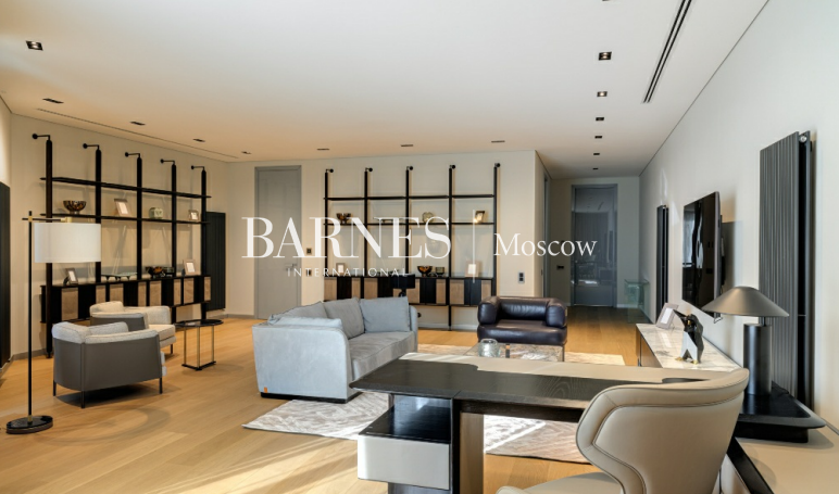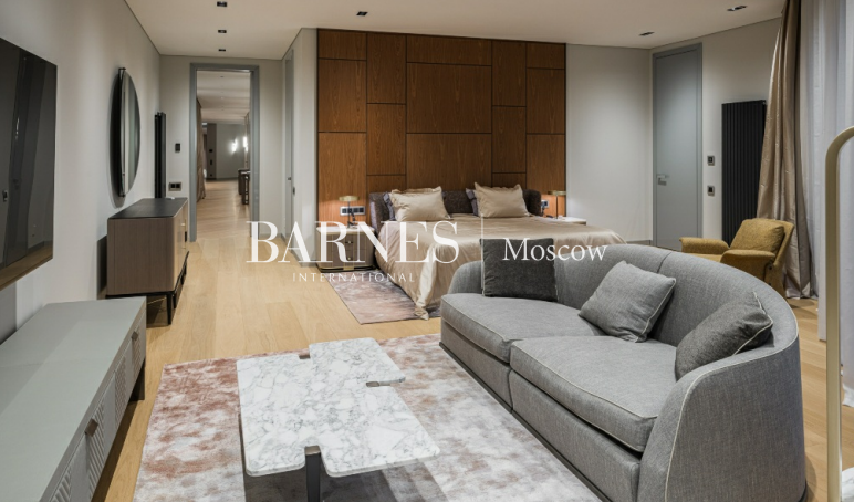 Рабочие пространства: кабинет с библиотекой, парикмахерская, гардеробные.SPA-комплекс: бассейн, сауна, хаммам, душевые, раздевалки Дополнительное: технические помещения, прачечная, продуманная система окон SCHUCCO, двери RIMADESIO, стеклянный лифт. Приватная зона сверху: Две мастер-спальни — одна двусветная с кабинетом и гардеробной (158 м²), вторая с отдельной гостиной и рабочей зоной — и еще 6 спален с собственными санузлами и гардеробными, библиотеки, семейная гостиная. Гибкое пространство: Третий этаж — это зона отдыха, игры, спортзон и спальня для старшего ребёнка или гостей, с постирочной, санузлами и гардеробными. Интерьер — Rugiano, Minotti, Frato, Porada, Aromas del Campo, Cattelan Italia. Цокольный этаж: Отдельный мир — кинотеатр, бильярдная, курительная, две винные комнаты, кухня профессионального уровня, серверная, кладовые, прачечная. Мебель и отделка из натурального мрамора, GRANITI FIANDRE, дубового паркета, создают атмосферу премиума.
