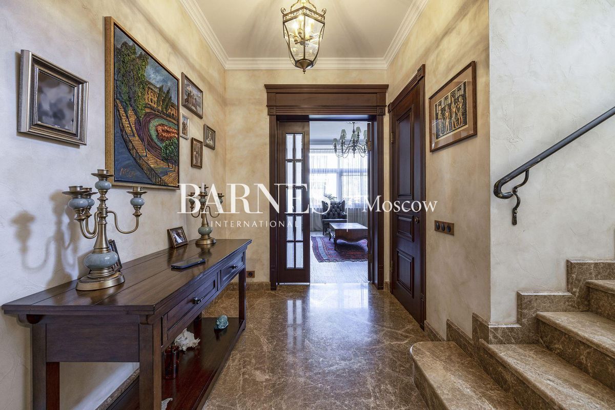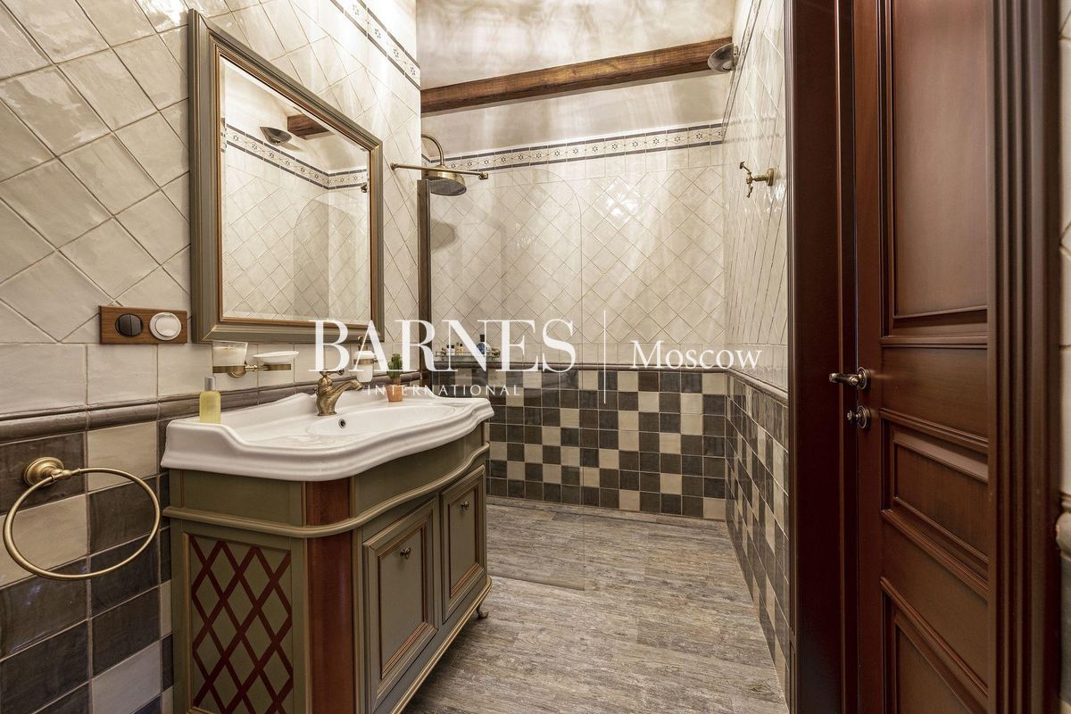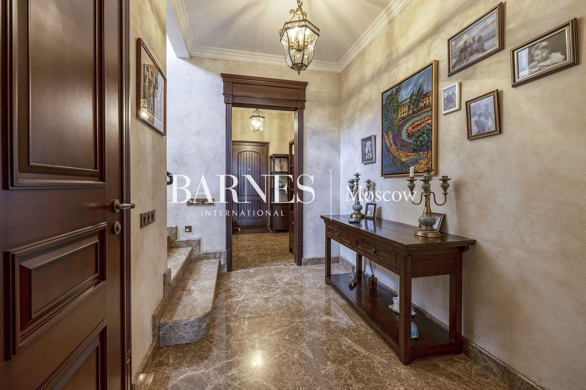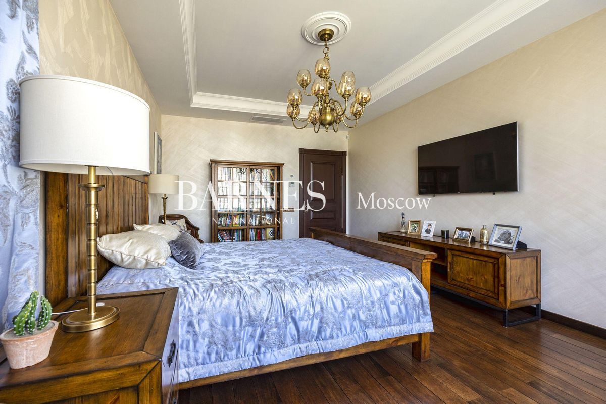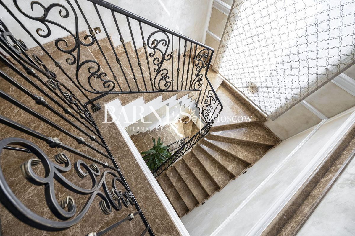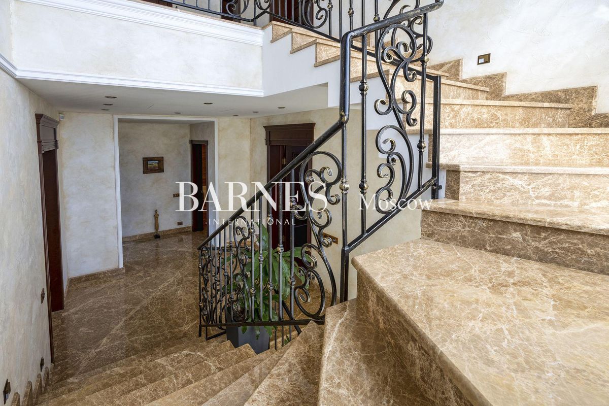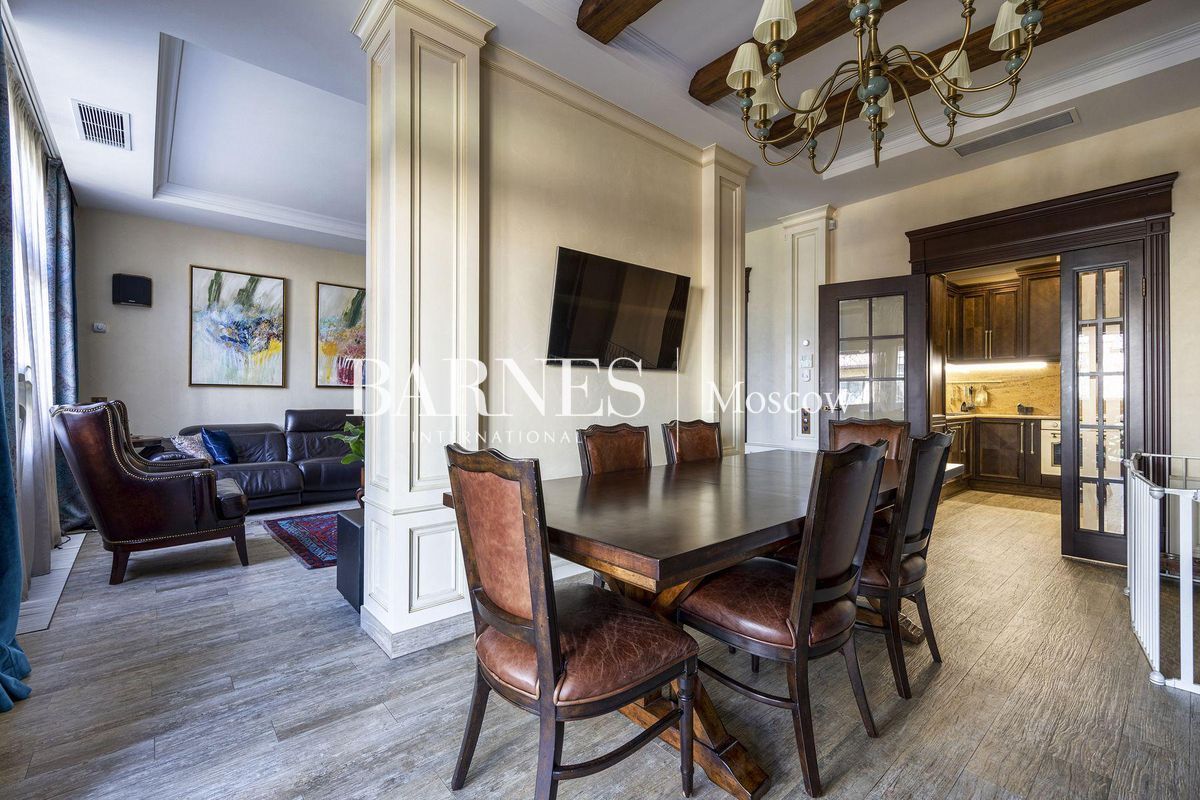 В отделке использованы натуральные породы мрамора и натуральные породы дерева, керамогранит (Италия), травертин.Вся корпусная мебель изготовлена по индивидуальному заказу, сантехника итальянского производства. Бытовая техникапремиального бренда Miele, а также техника европейских производителей (Германия и Италия).Установлена индивидуальная система приточно-вытяжной вентиляции и кондиционирования Daikin. Сделан водянойтеплый пол, шумоизоляция, сигнализация, единый wi-fi. В гостиной установлен домашний кинотеатр.