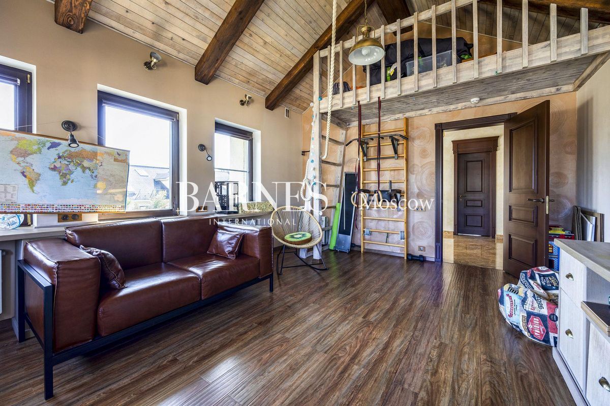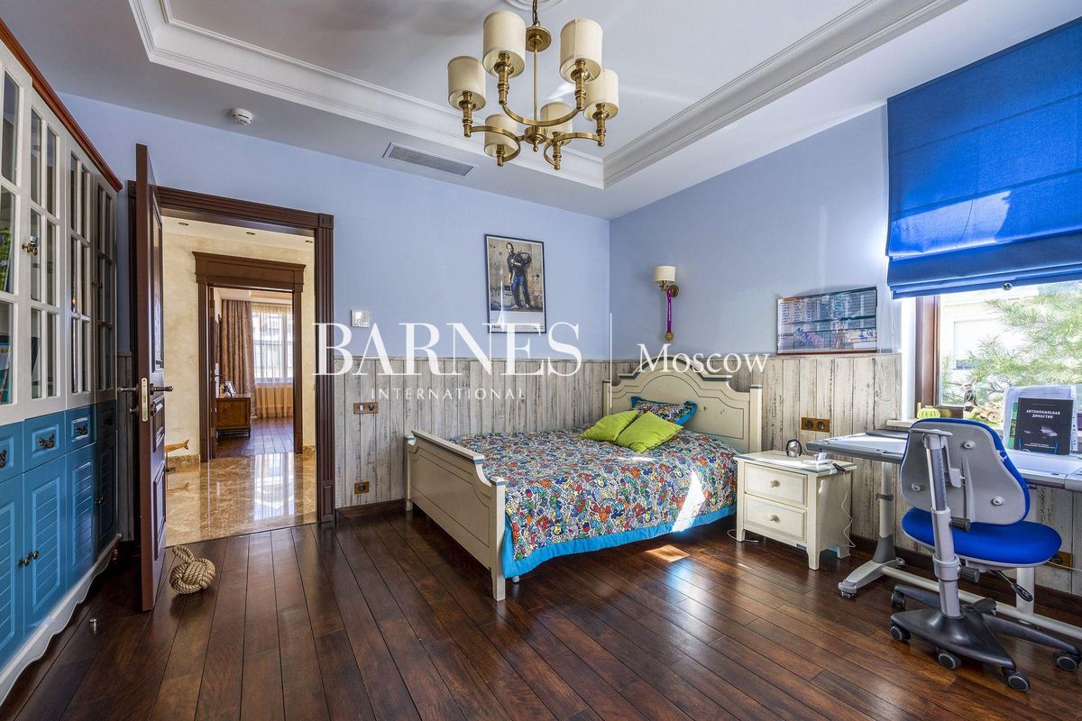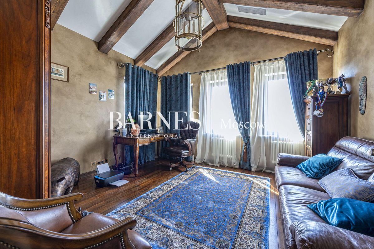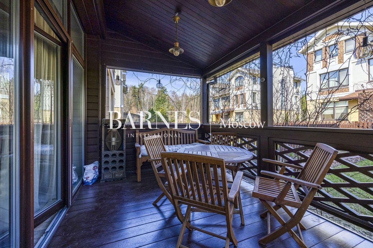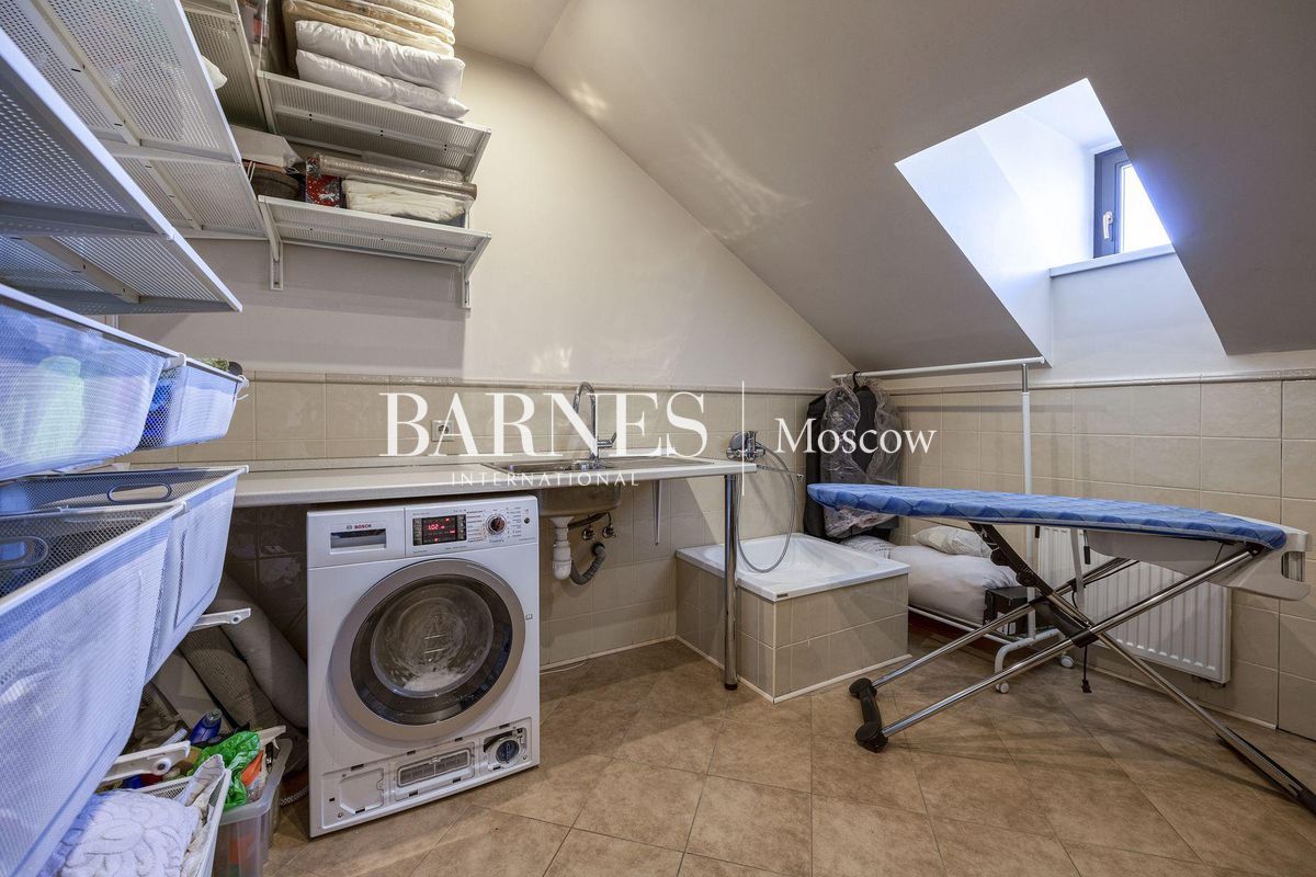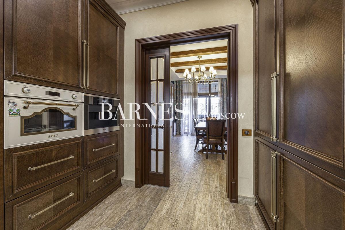 В отделке использованы натуральные породы мрамора и натуральные породы дерева, керамогранит (Италия), травертин.Вся корпусная мебель изготовлена по индивидуальному заказу, сантехника итальянского производства. Бытовая техникапремиального бренда Miele, а также техника европейских производителей (Германия и Италия).Установлена индивидуальная система приточно-вытяжной вентиляции и кондиционирования Daikin. Сделан водянойтеплый пол, шумоизоляция, сигнализация, единый wi-fi. В гостиной установлен домашний кинотеатр.