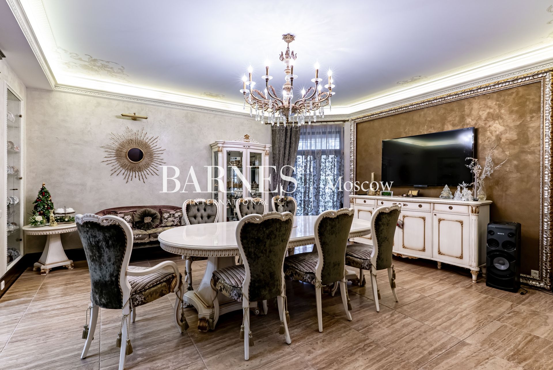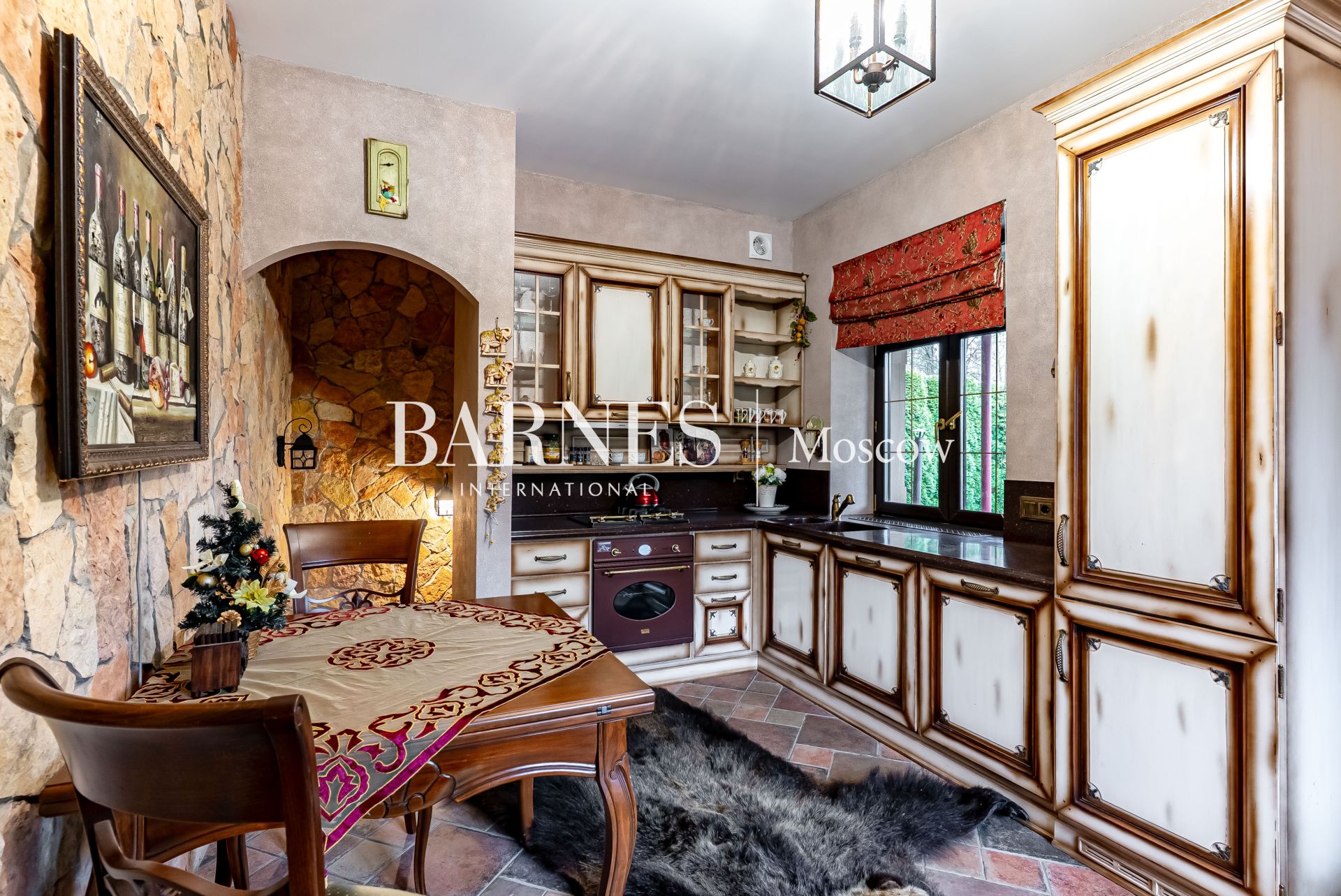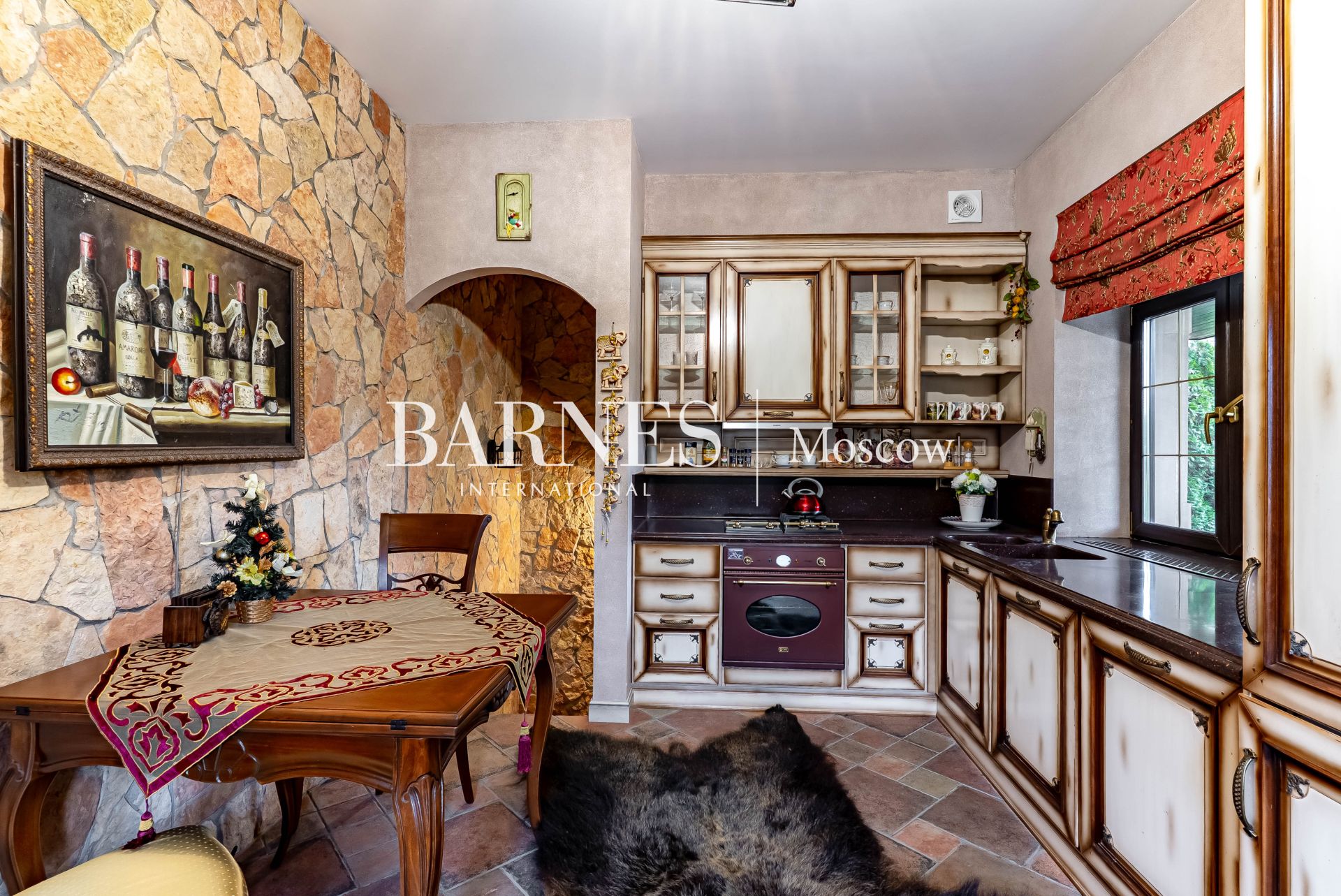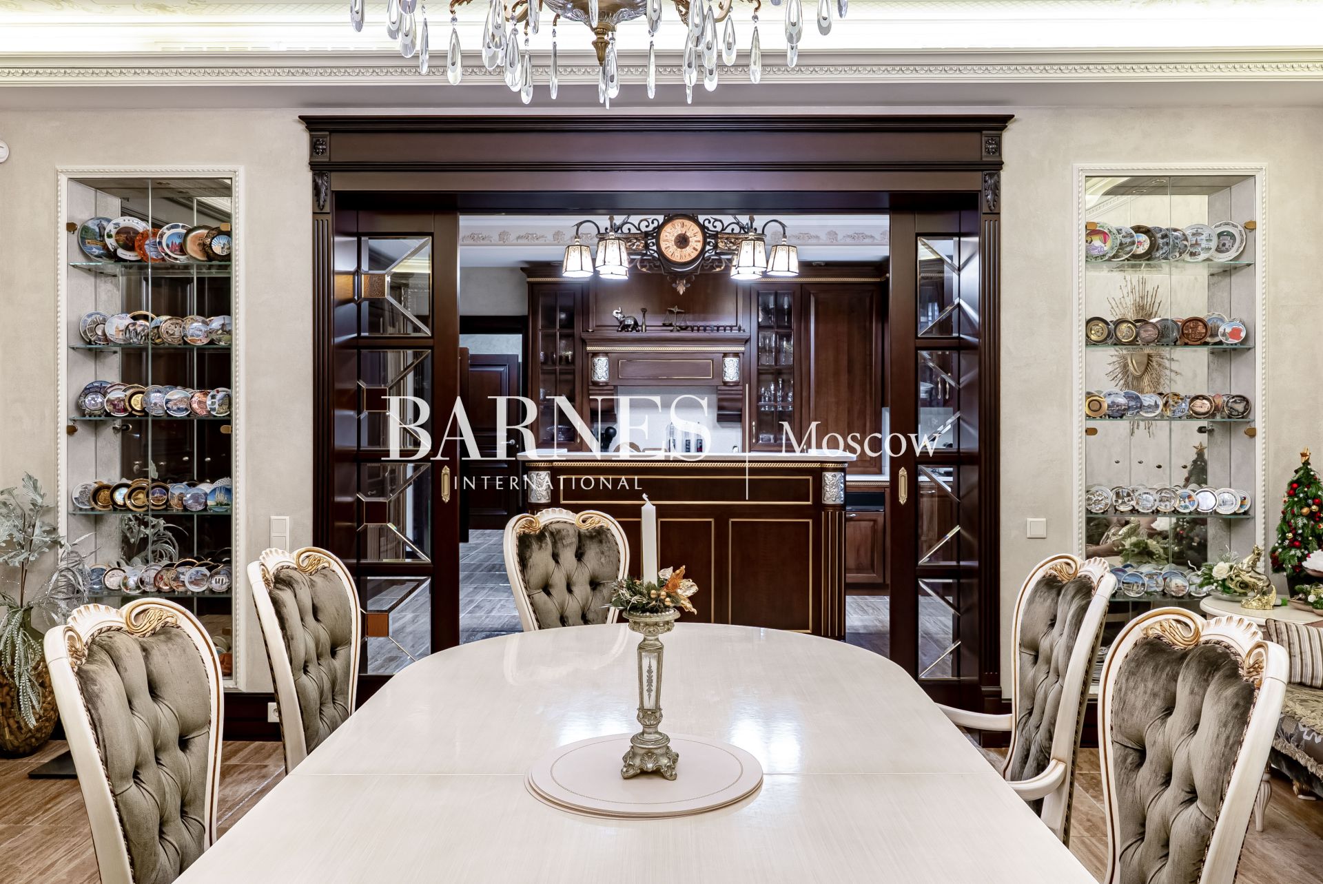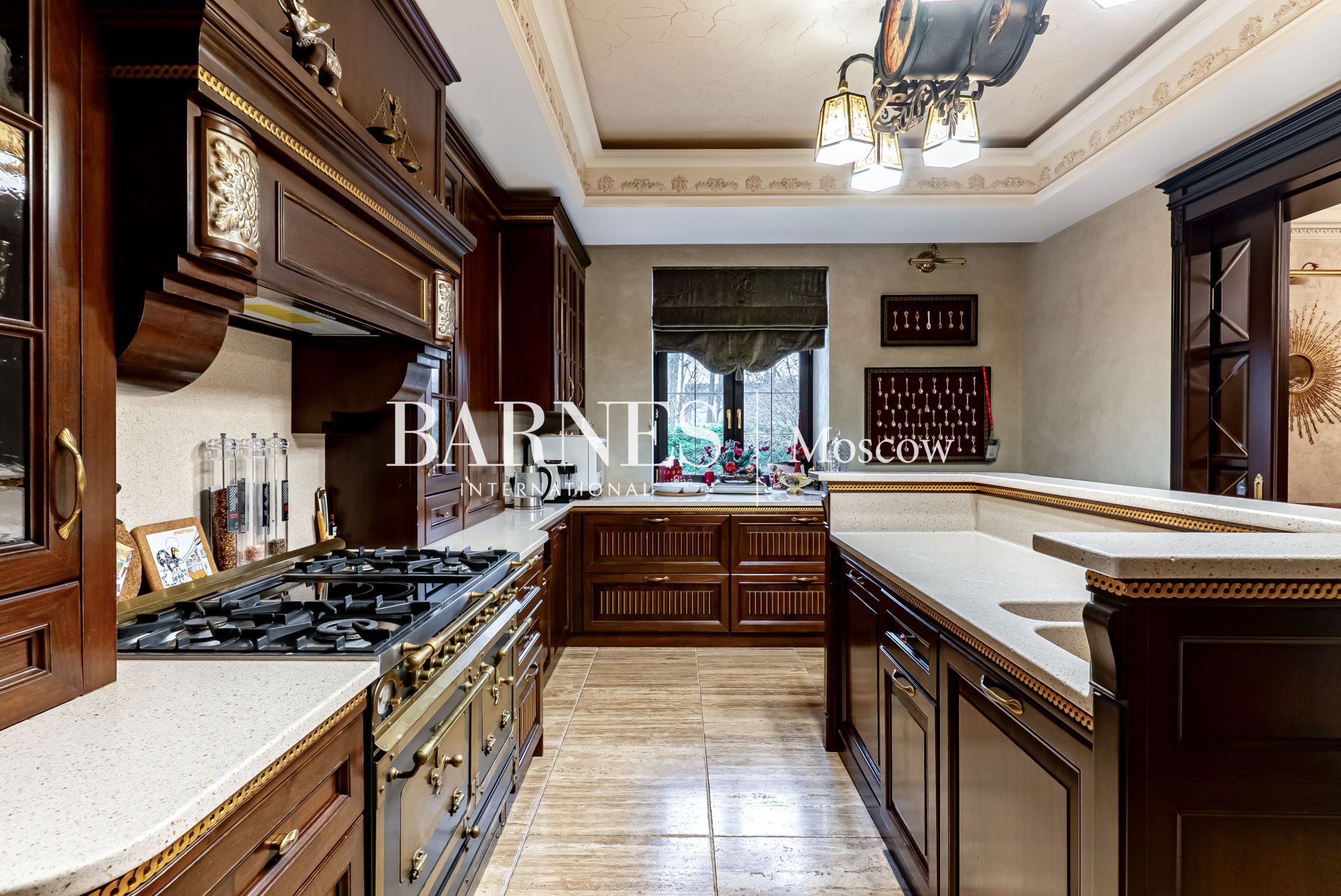 Кухня оборудована мебелью из массива дерева и профессиональной техникой премиум-класса от La Cornue и Miele, что обеспечивает комфорт и максимальную функциональность.